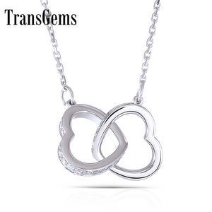 Genuine 14K 585 White Gold Interlocking Heart Shape Lab Grown Moissanite Sweety Love Pendant Necklace For Women