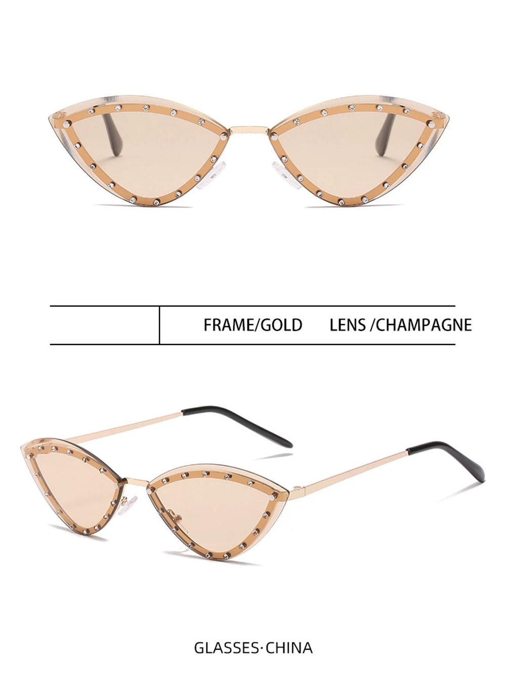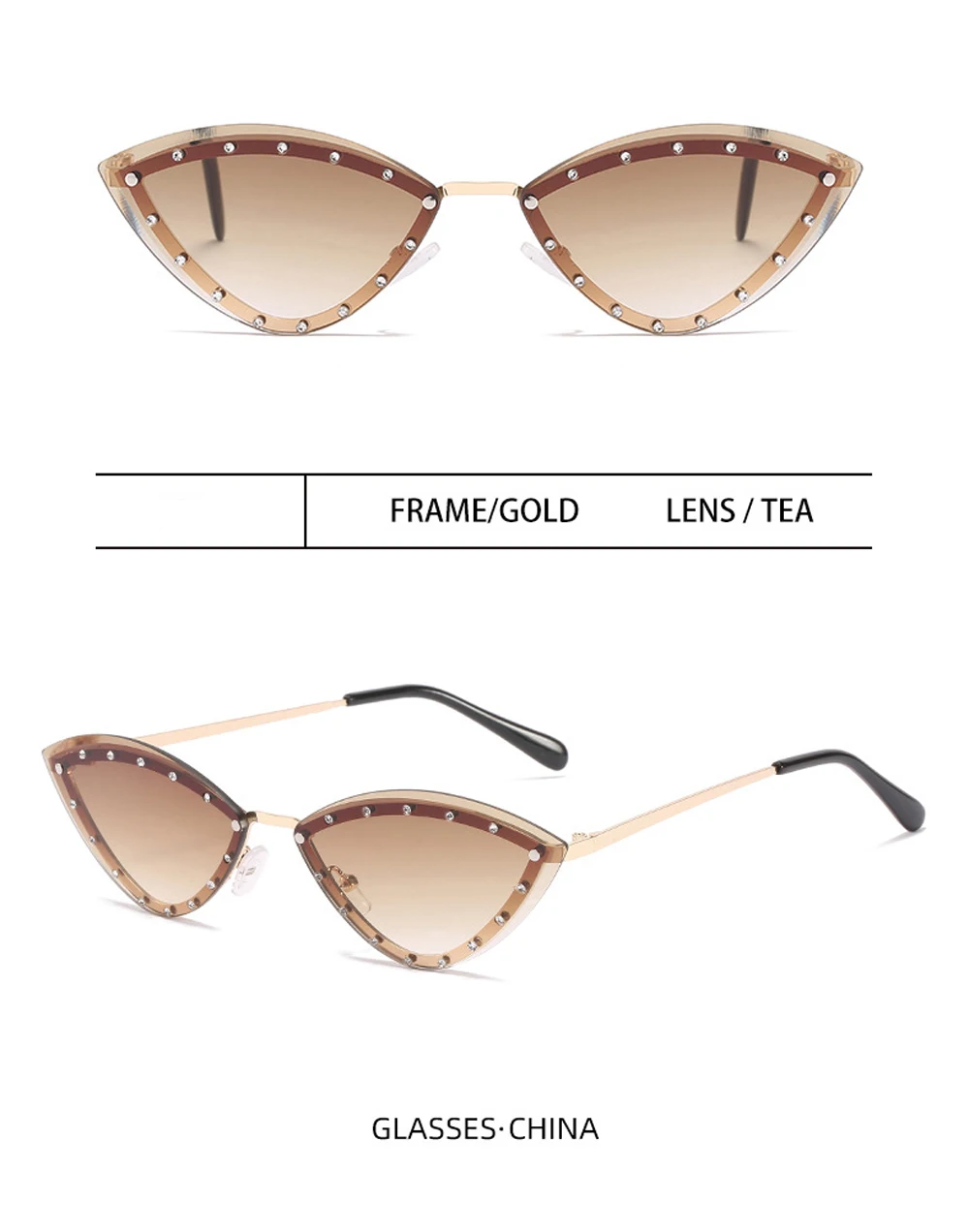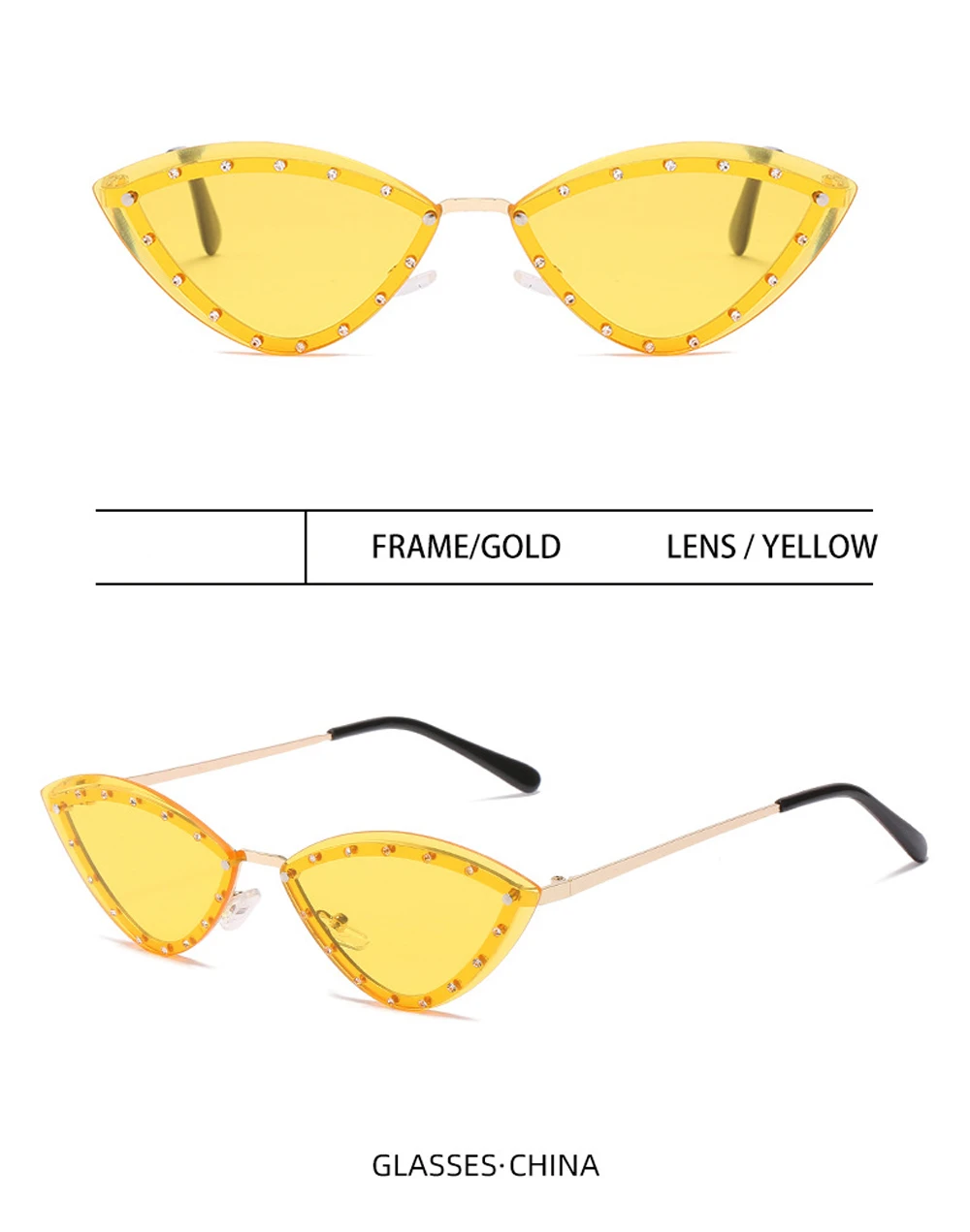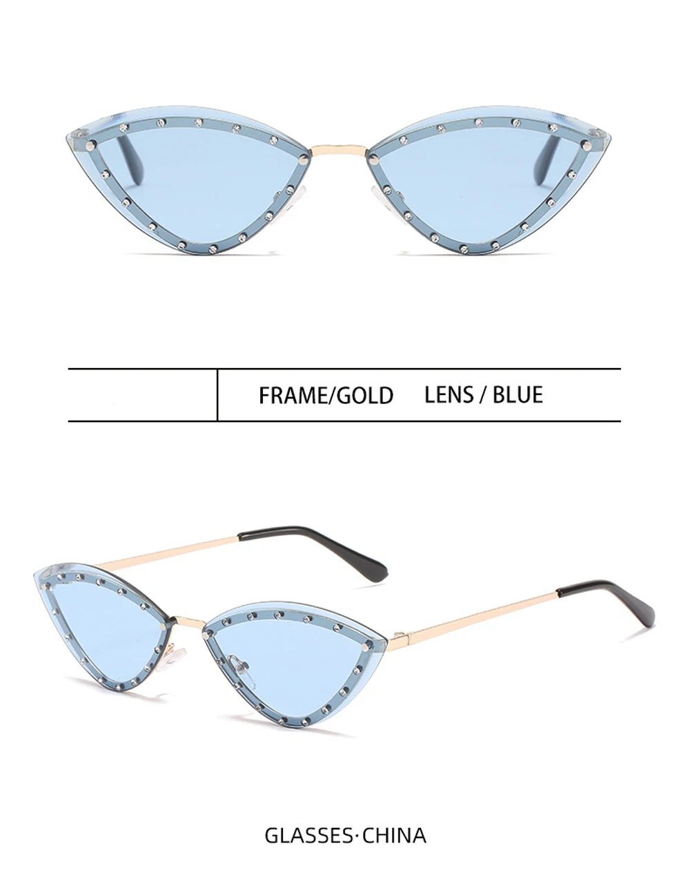 2023 Brand Triangle Cat Eye Sunglasses Alloy Rimless Crystal Shiny Sun Glasses Female Unique Elegant Green Rhinestone Shades