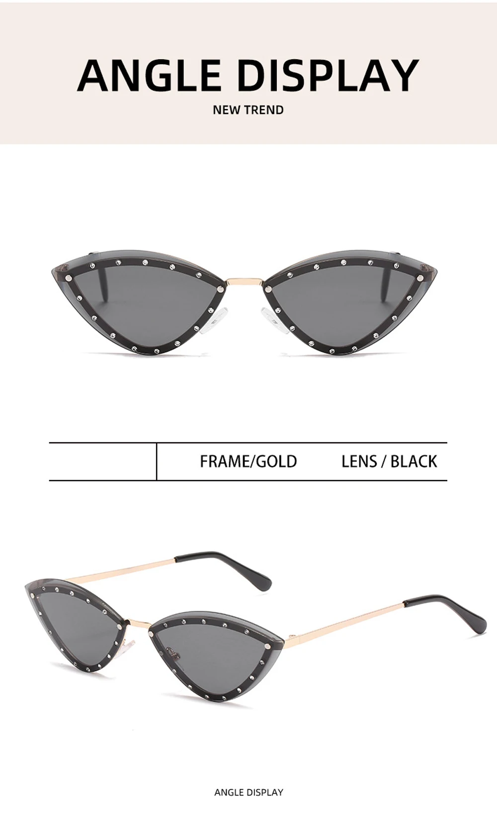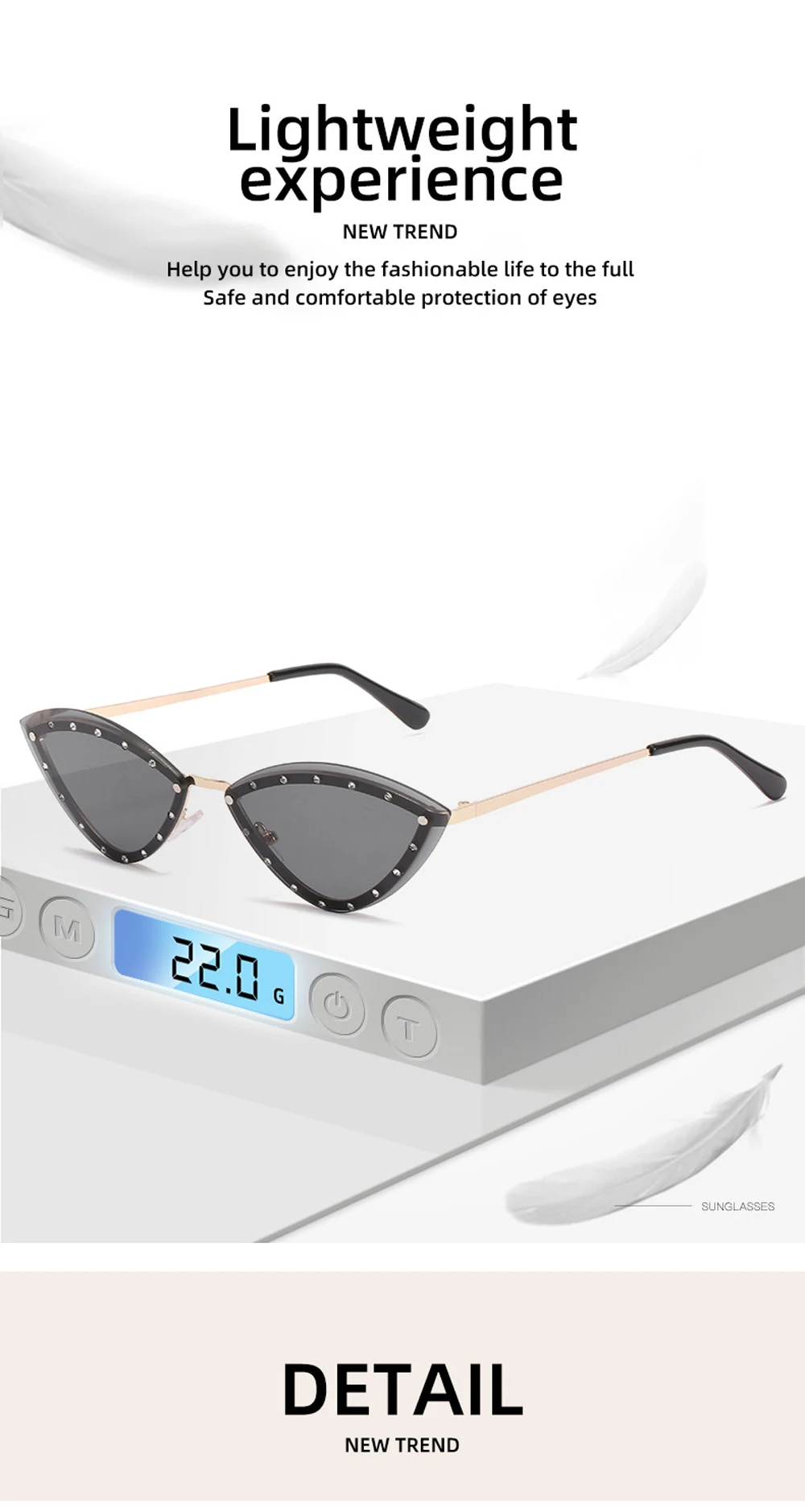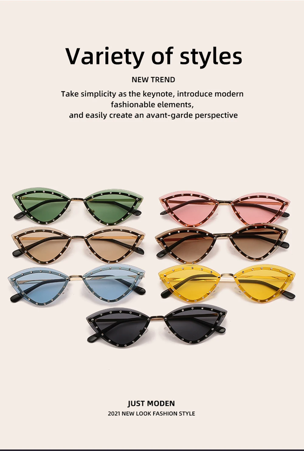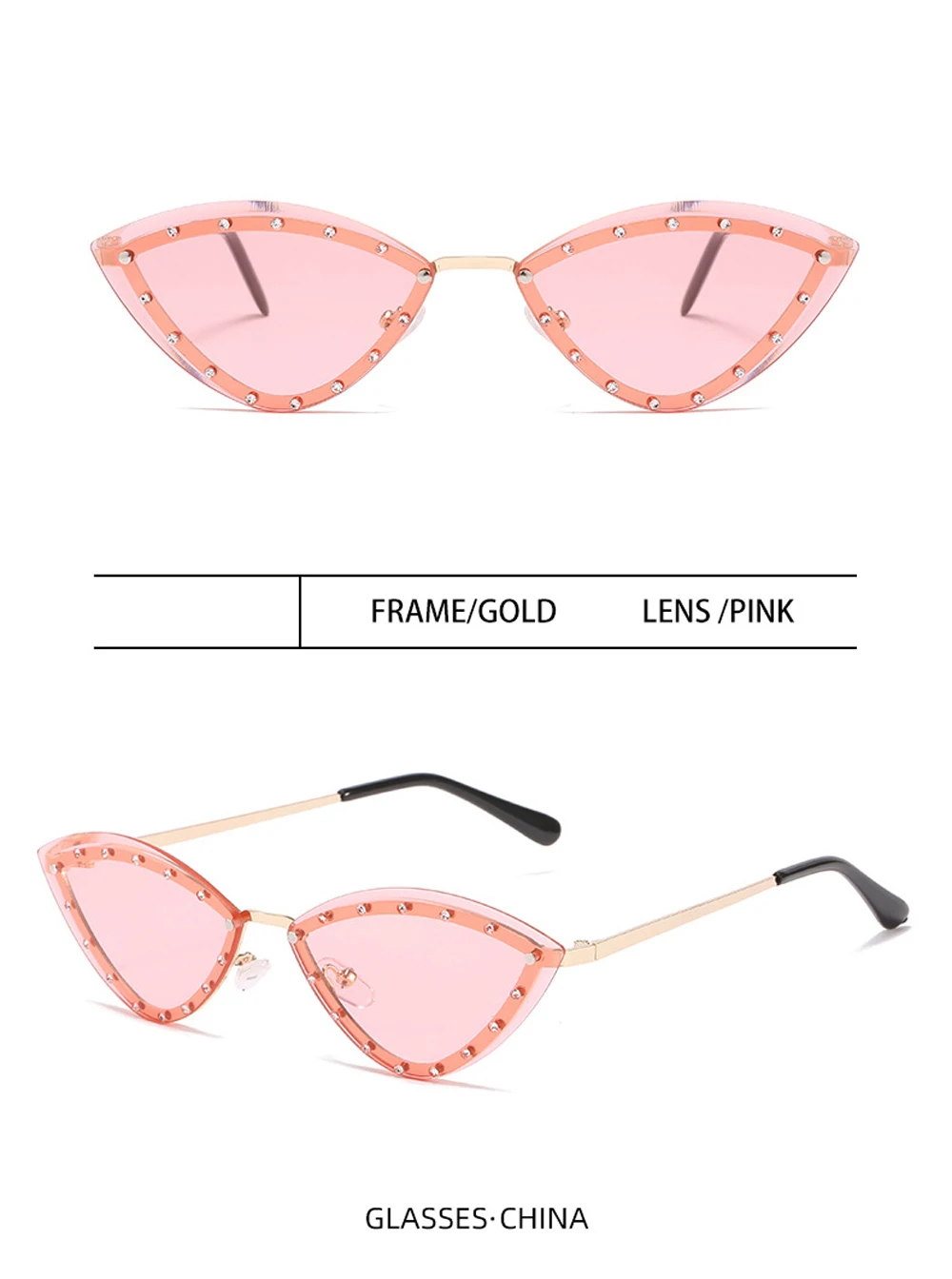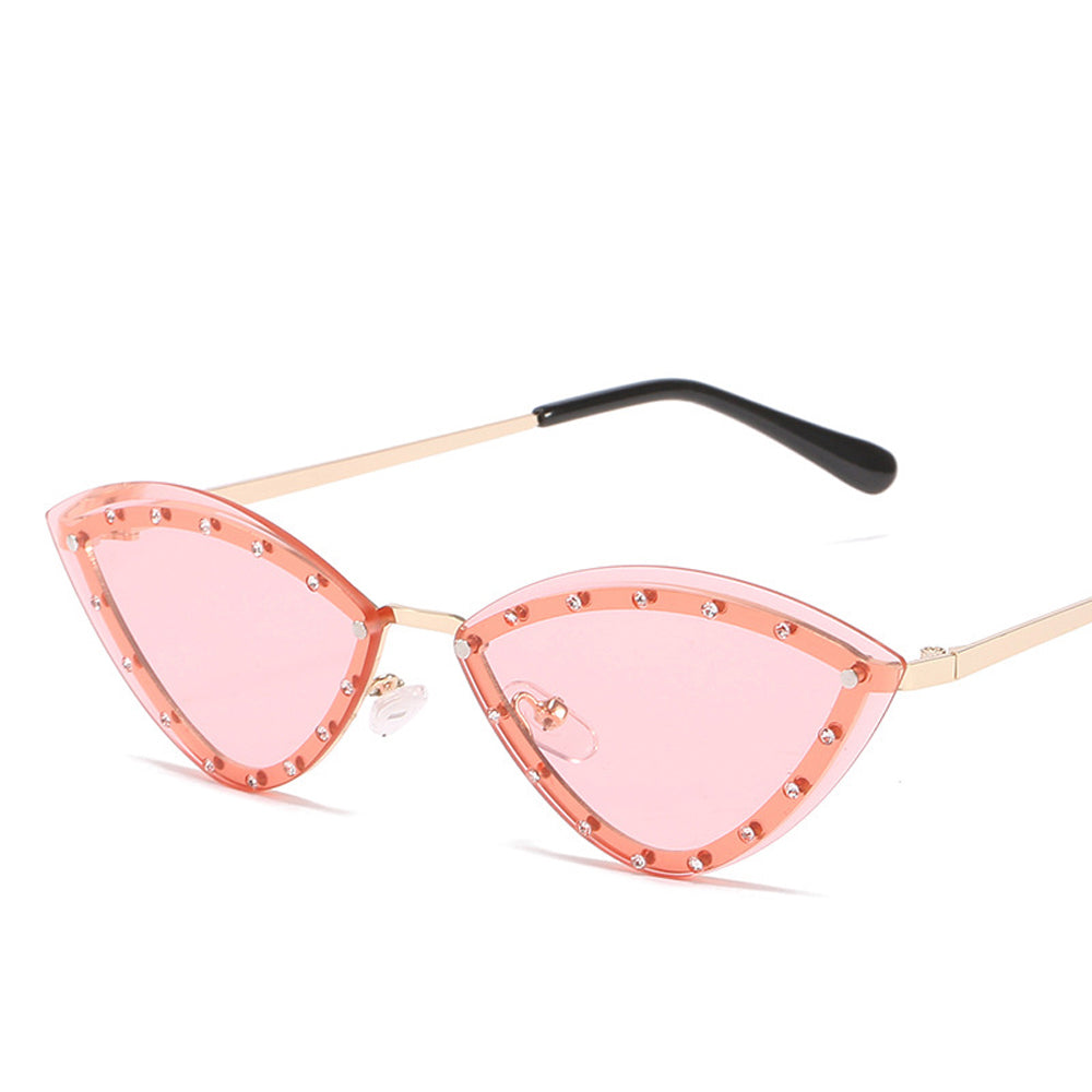 2023 Brand Triangle Cat Eye Sunglasses Alloy Rimless Crystal Shiny Sun Glasses Female Unique Elegant Green Rhinestone Shades