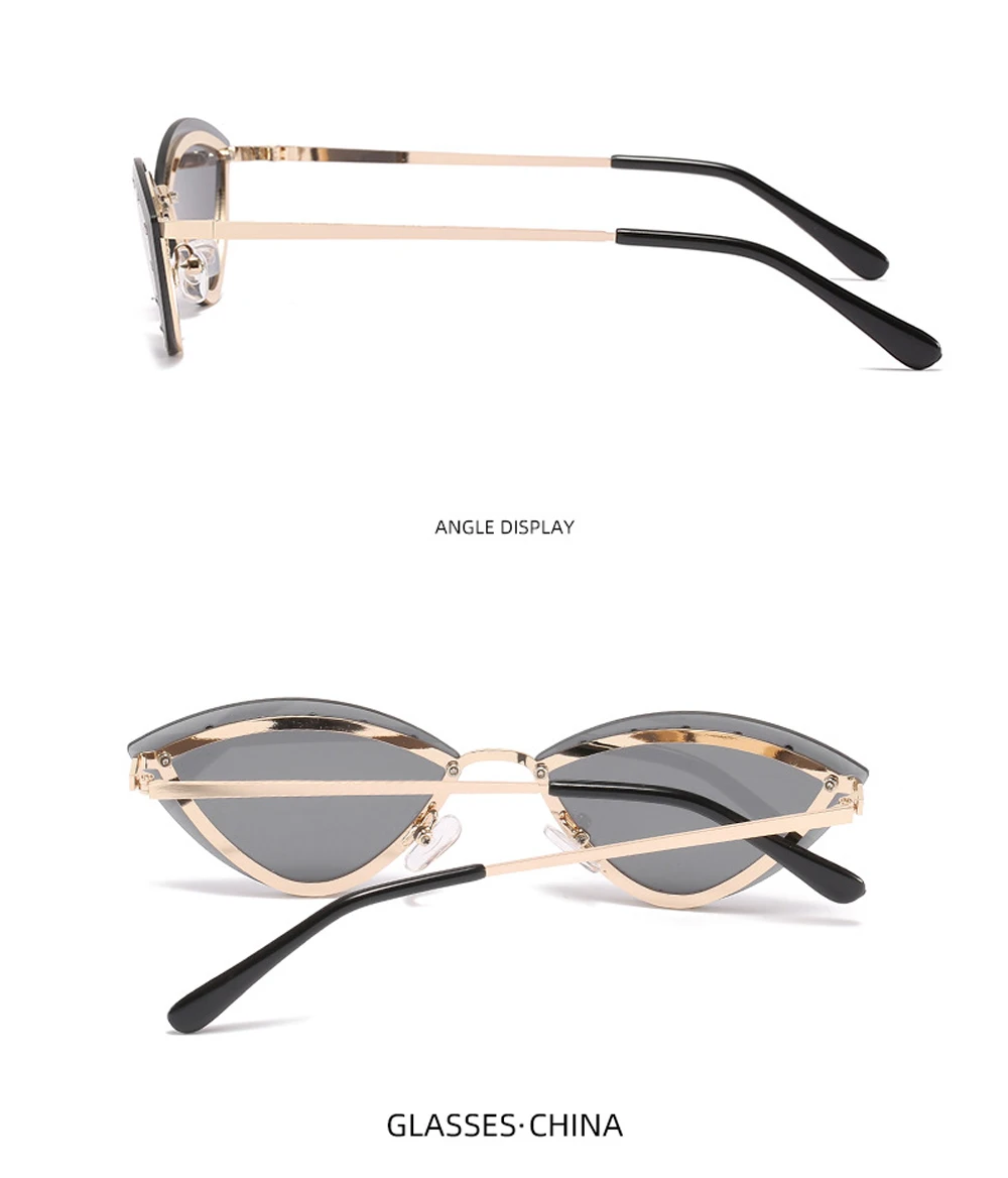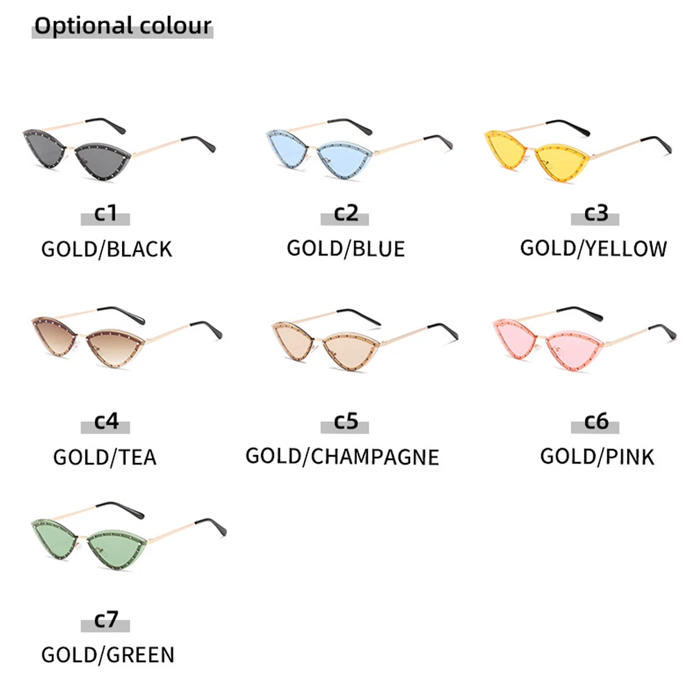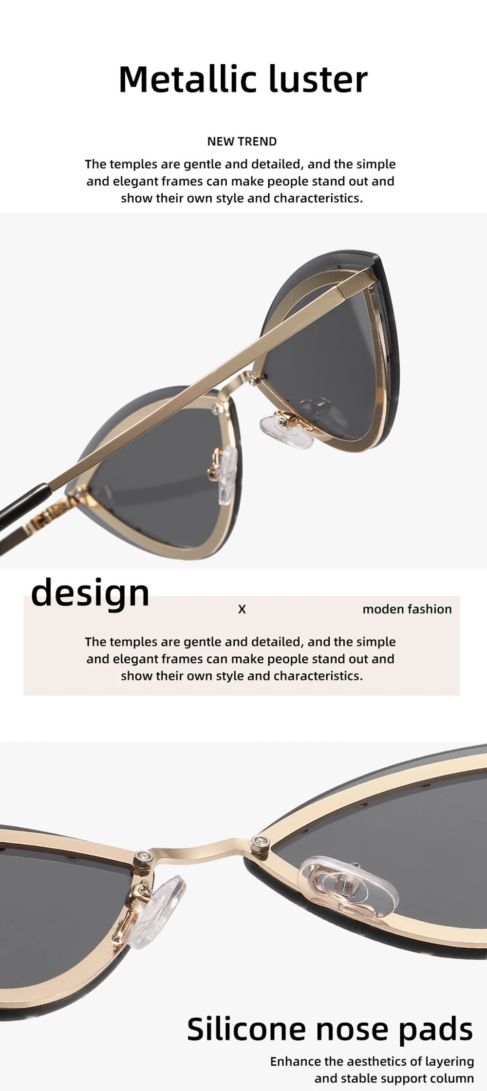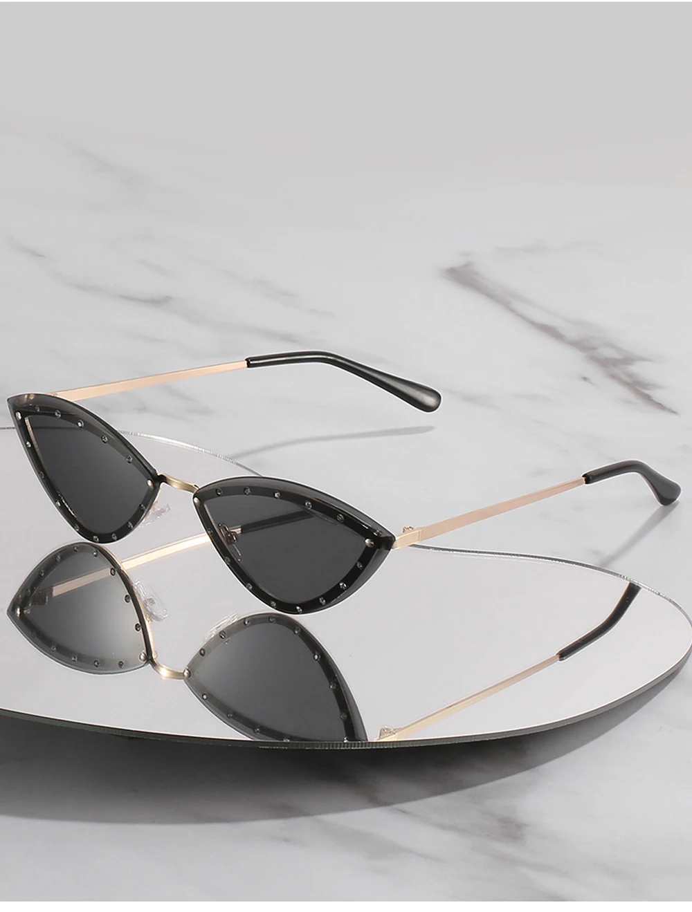 2023 Brand Triangle Cat Eye Sunglasses Alloy Rimless Crystal Shiny Sun Glasses Female Unique Elegant Green Rhinestone Shades