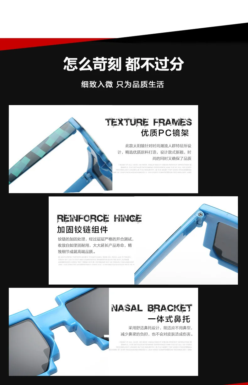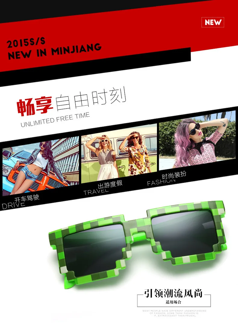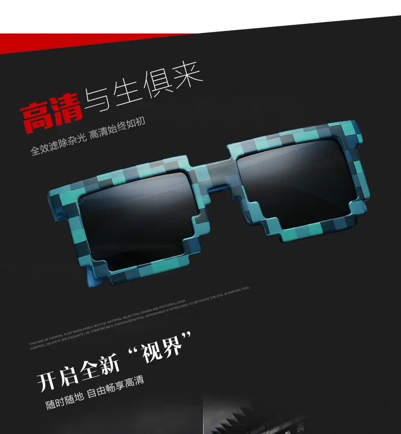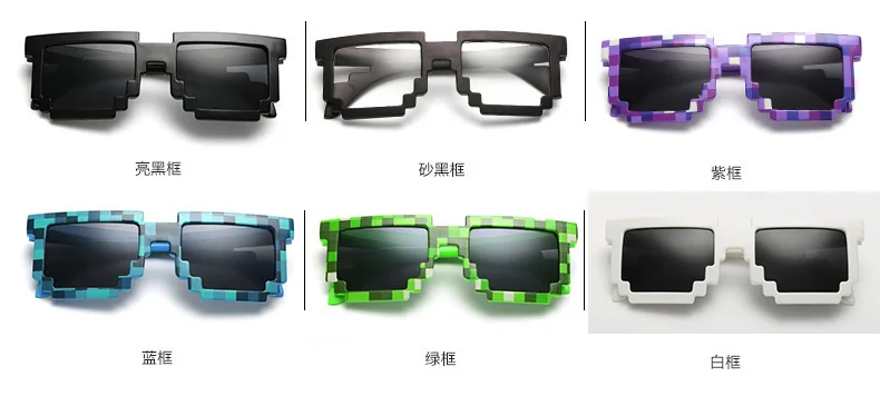 2023 Cosplay Sunglasses Adults Kids Action Game Toy Square Pixel Mosaic Glasses Toys Children Gift Funny Eyewear