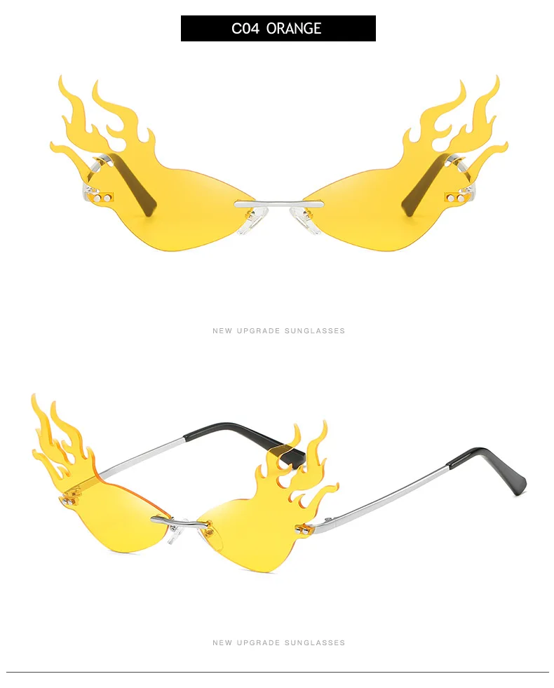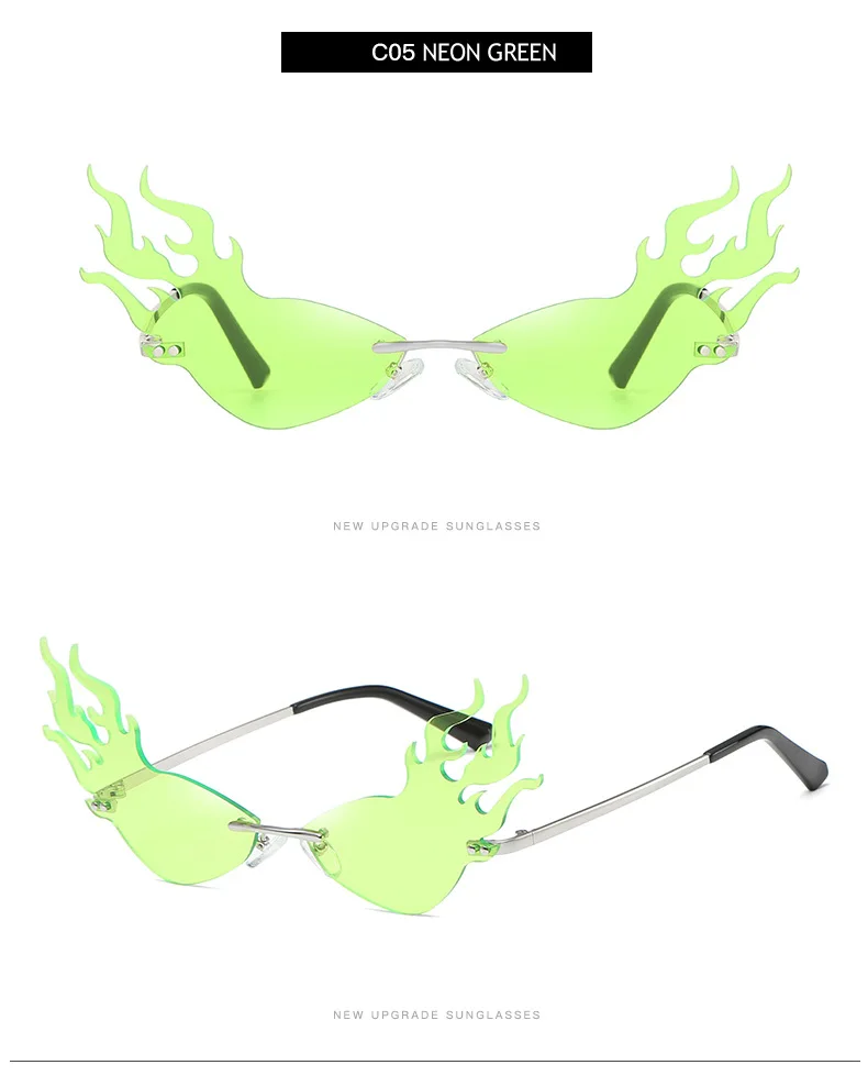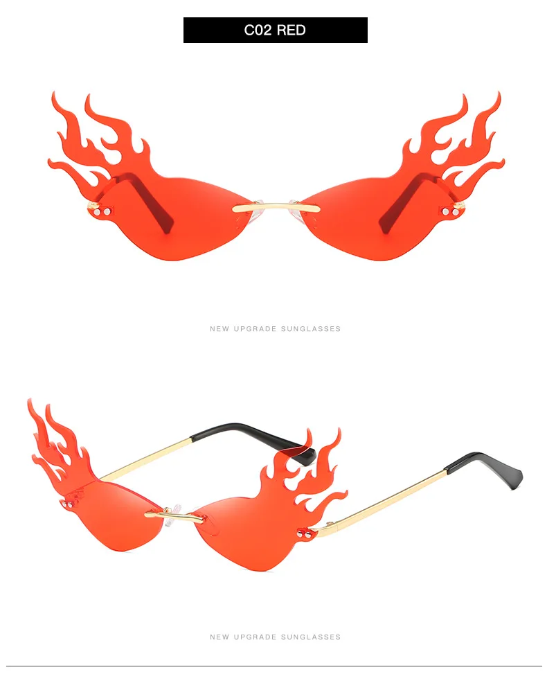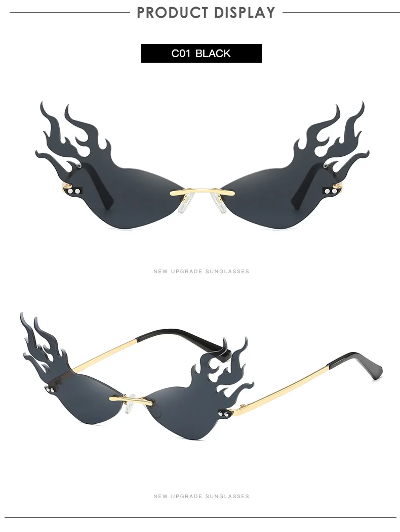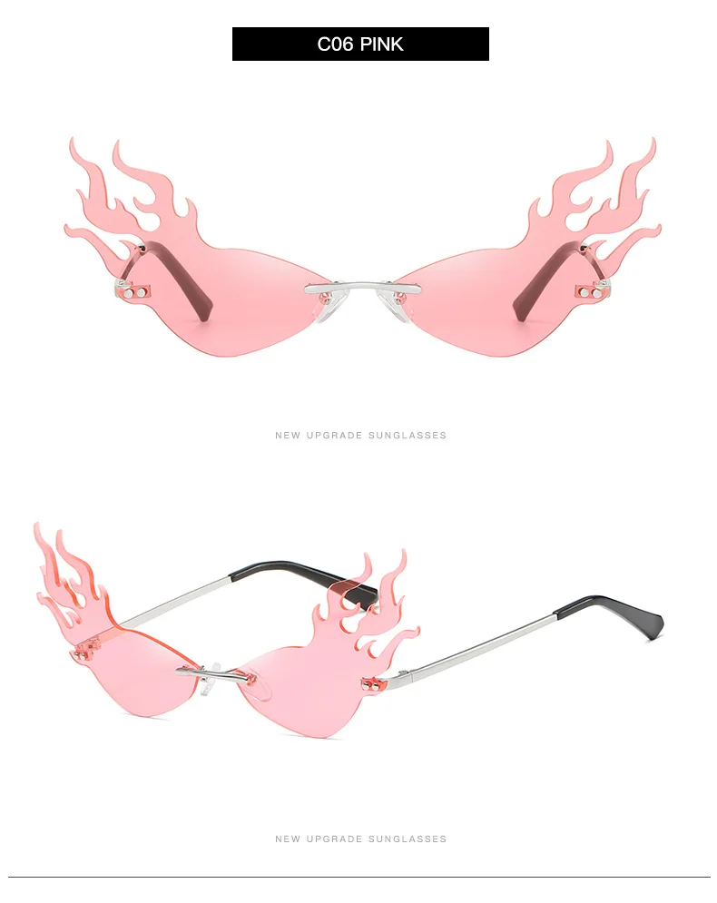 2023 Flame Rimless Sunglasses Women Men Cat Eye Sun Glasses Eyewear  Trending Punk Party Sunglasses UV400 Oculos