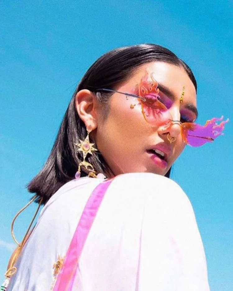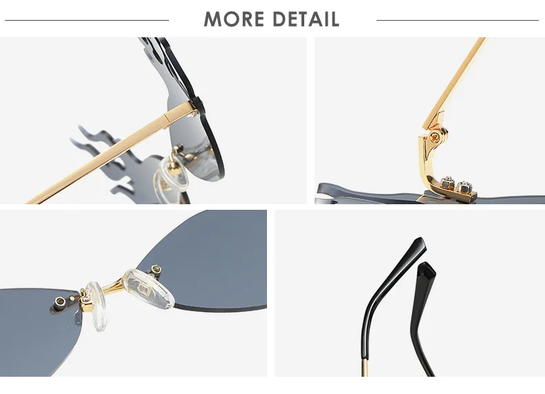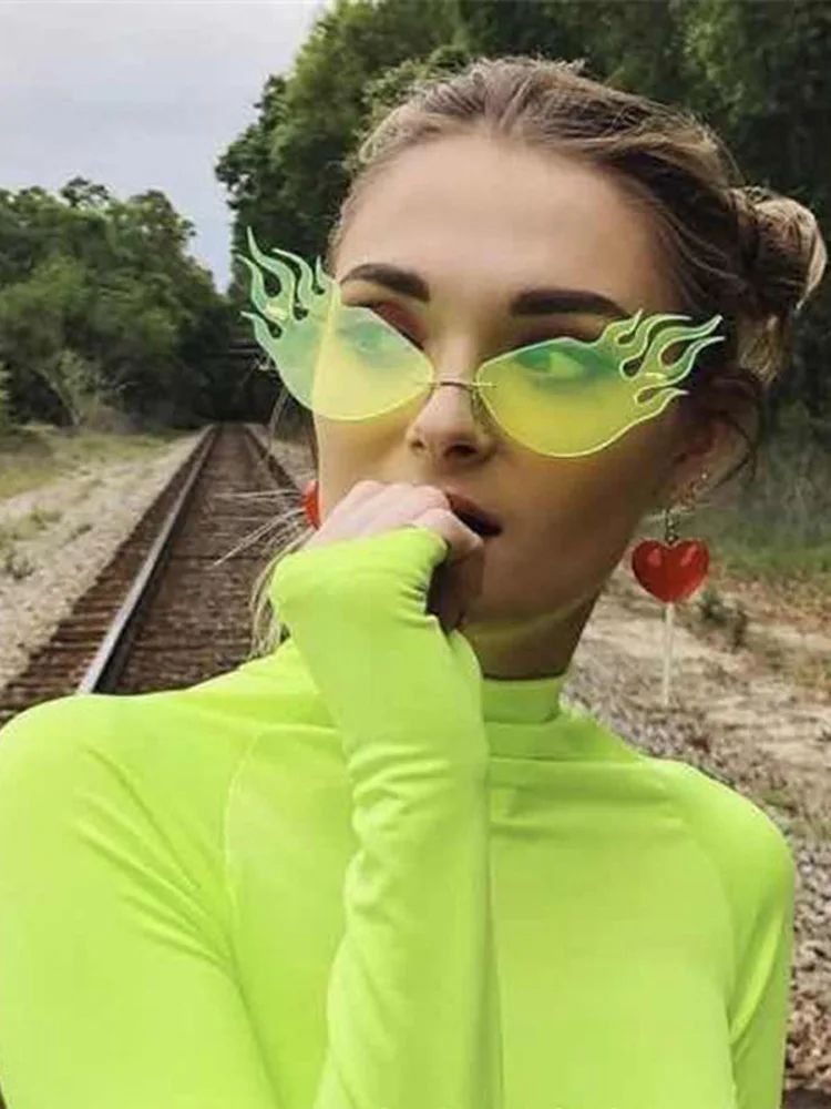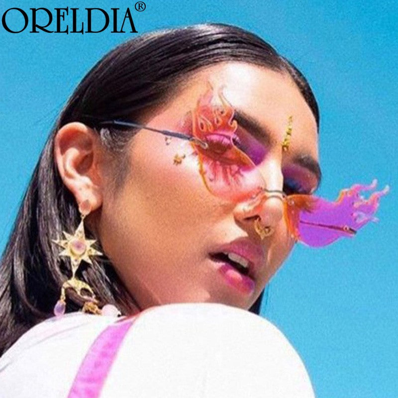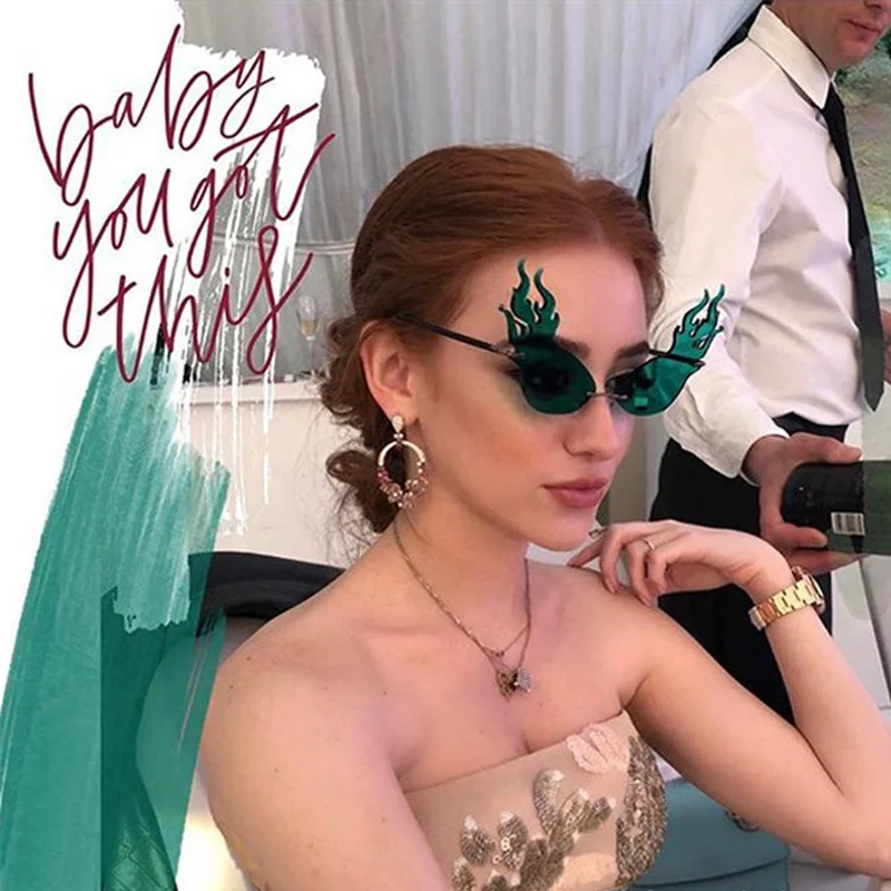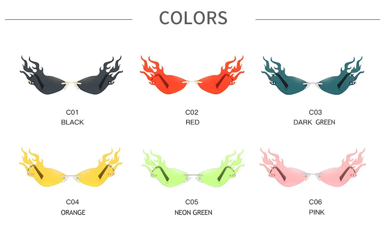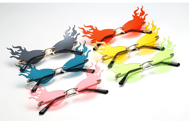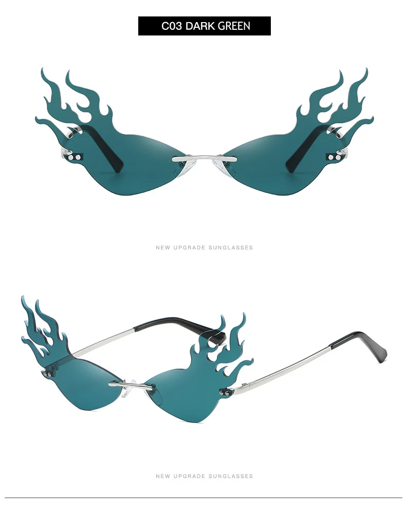 2023 Flame Rimless Sunglasses Women Men Cat Eye Sun Glasses Eyewear  Trending Punk Party Sunglasses UV400 Oculos