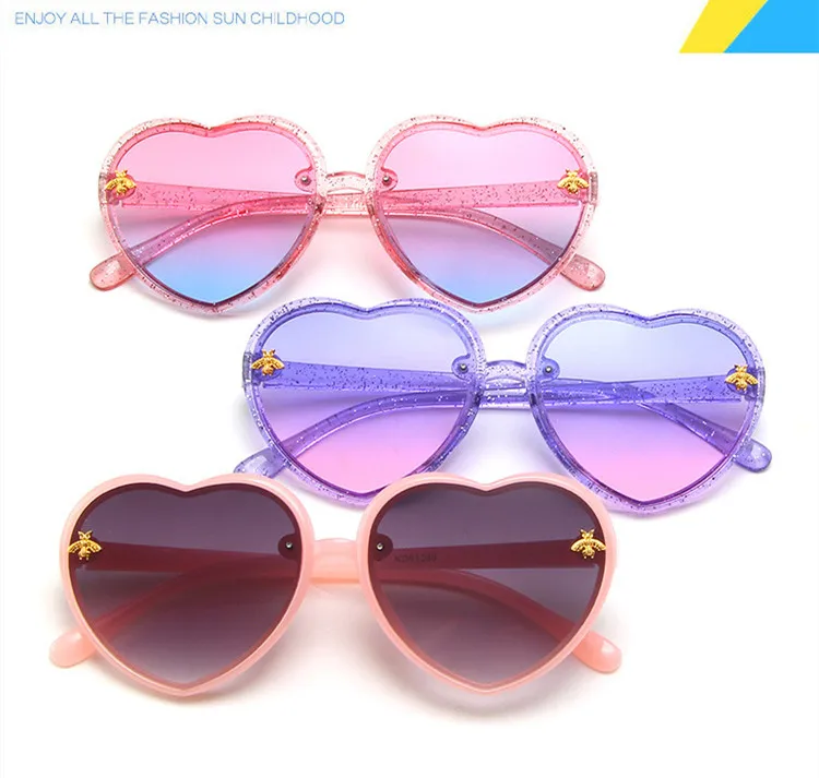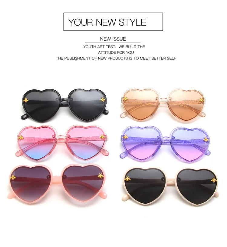 2023 Glitter Heart Sunglasses Children's Cartoon Bee Sunglasses Girls Cute Vintage Glasses Love Eyewear Trend Gafas De Sol Mujer