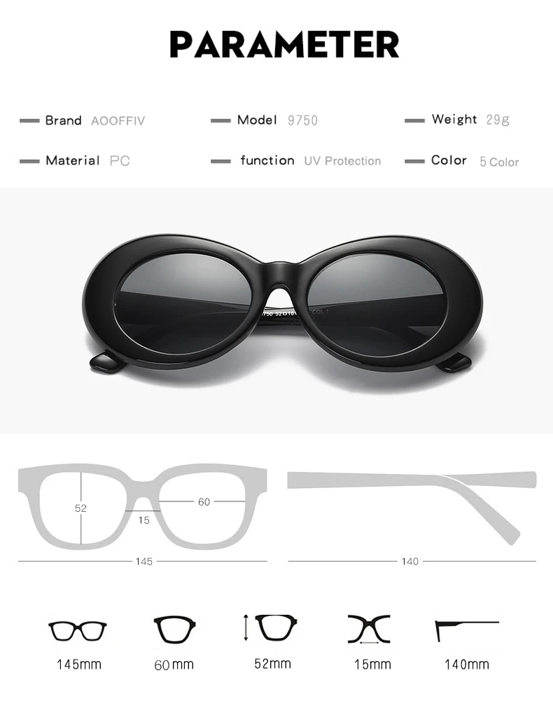 2023 goggle Kurt Cobain glasses oval sunglasses ladies trendy Vintage retro sunglasses Women's white black eyewear UV