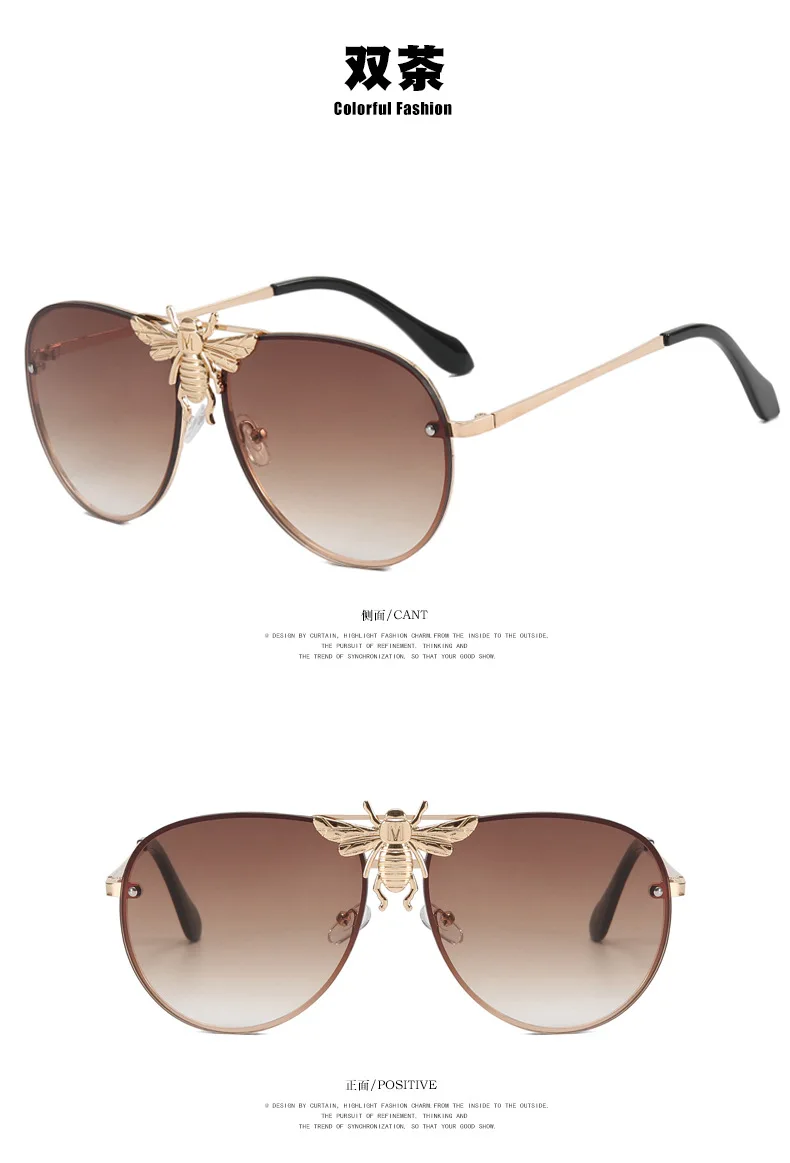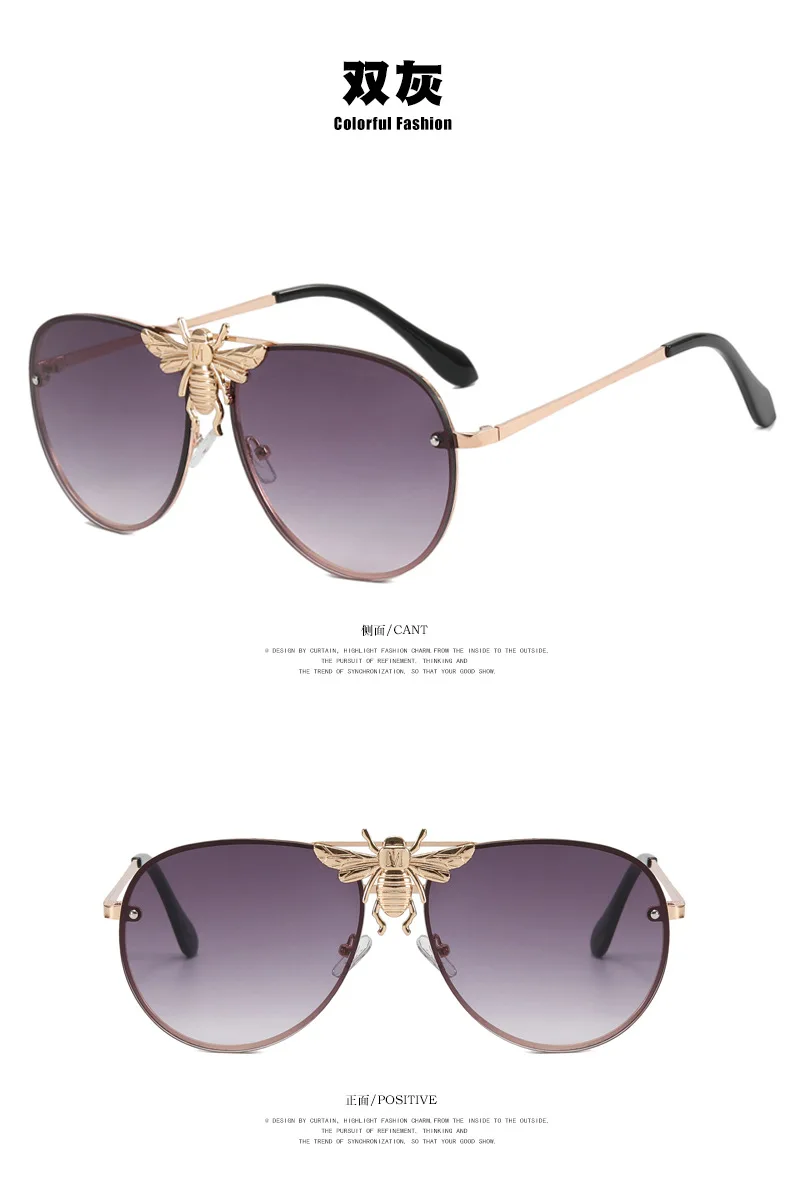 2023 Modern Oversized Sunglasses For Women Men  Designer Sun Glasses Bee Decoration Trengding Shades UV400