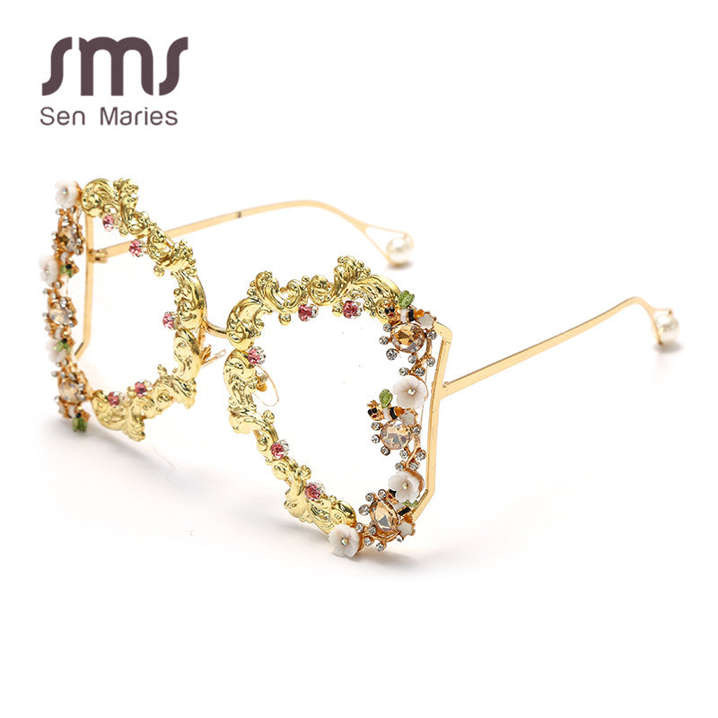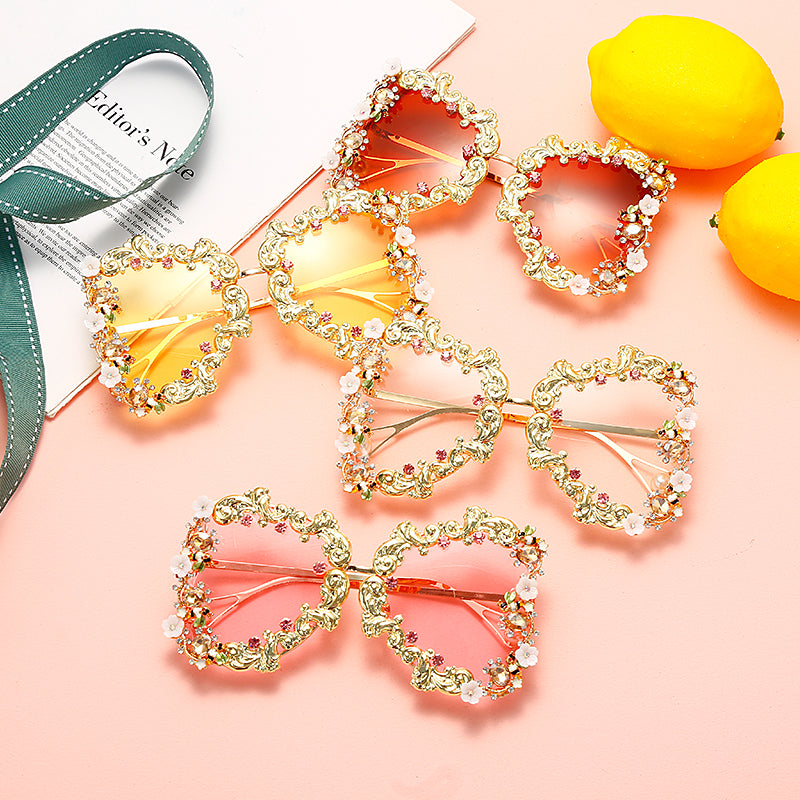 2023 Oversized Punk Sunglasses Women Metal Flower Sunglasses Men Baroque Pearl Sun Glasses UV400 Oculos Feminino