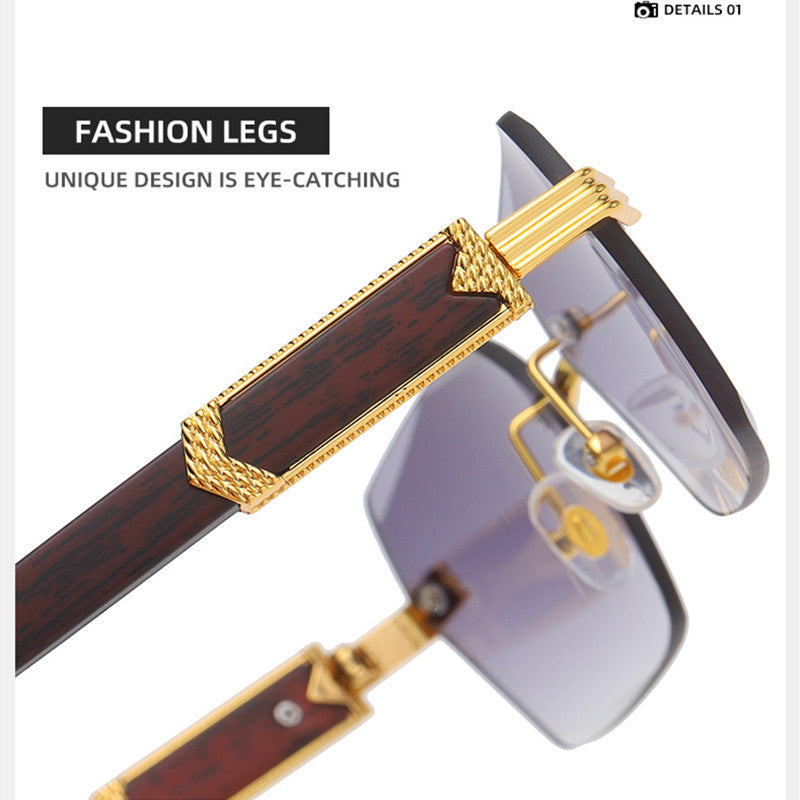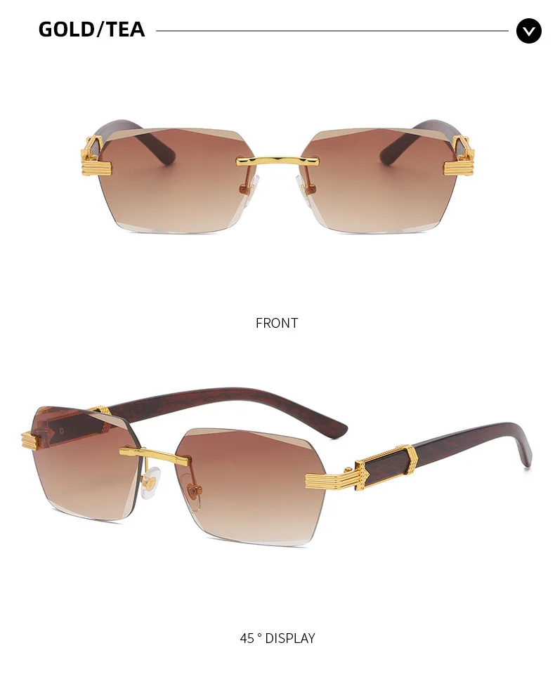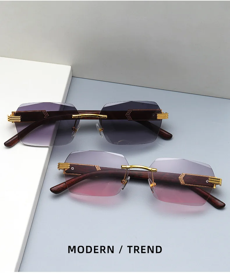 2023 Rimless Side Cut Square Sunglasses Women  Pink Glasses Imitation Wood Lentes De Sol Mujer UV400 Shades