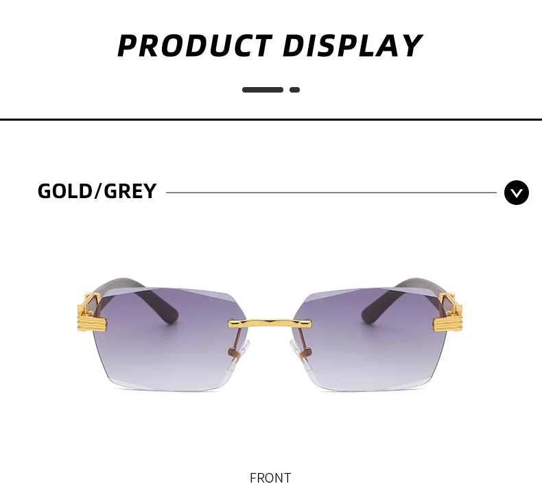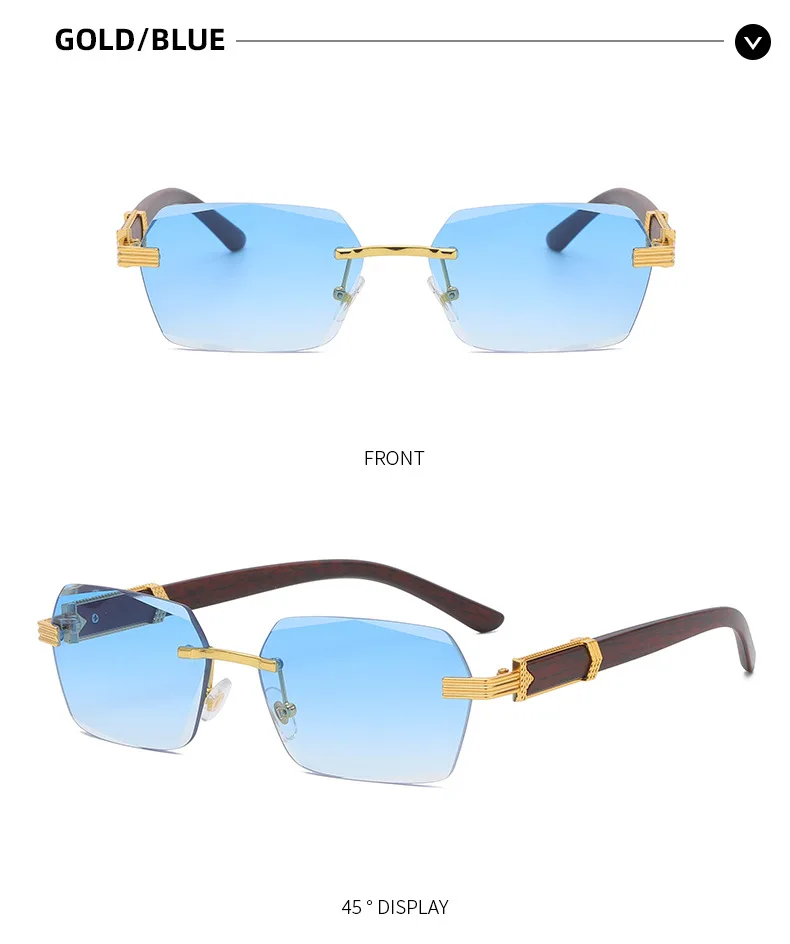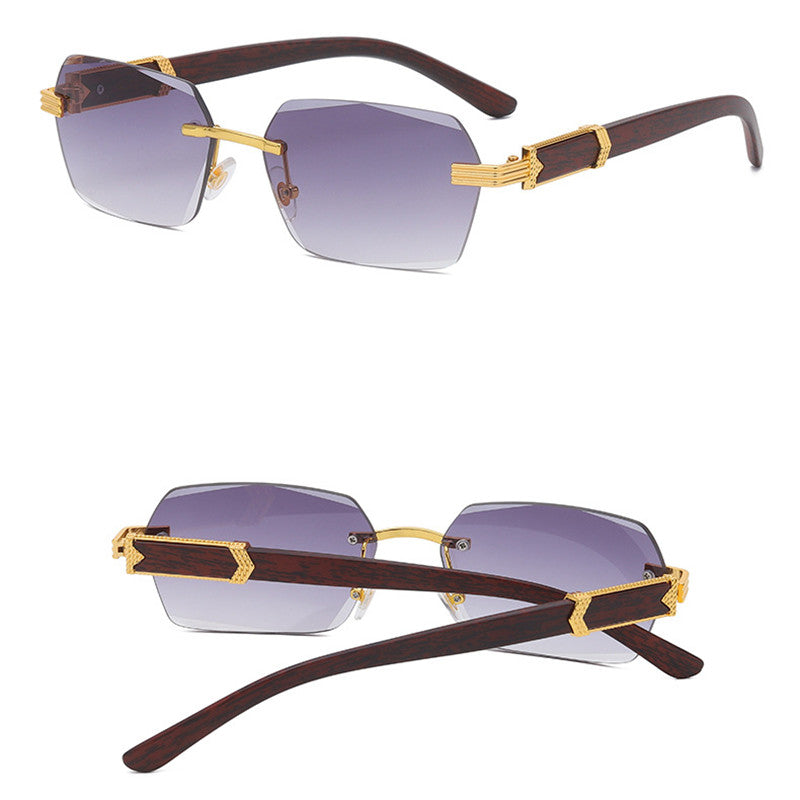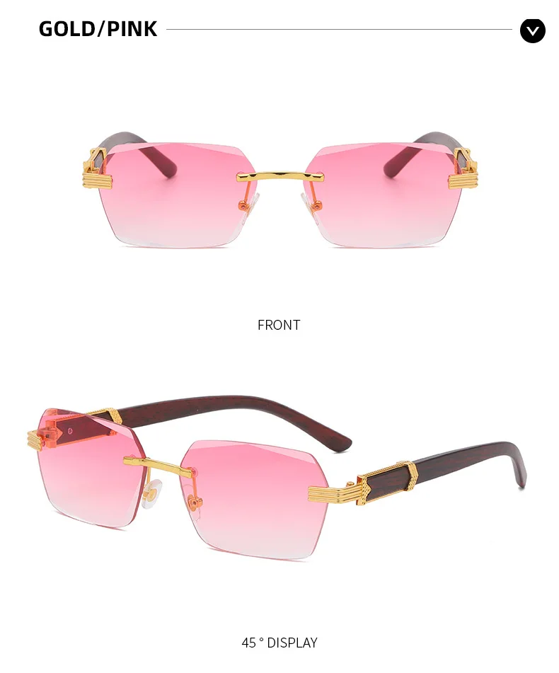 2023 Rimless Side Cut Square Sunglasses Women Pink Glasses Imitation Wood Lentes De Sol Mujer UV400 Shades