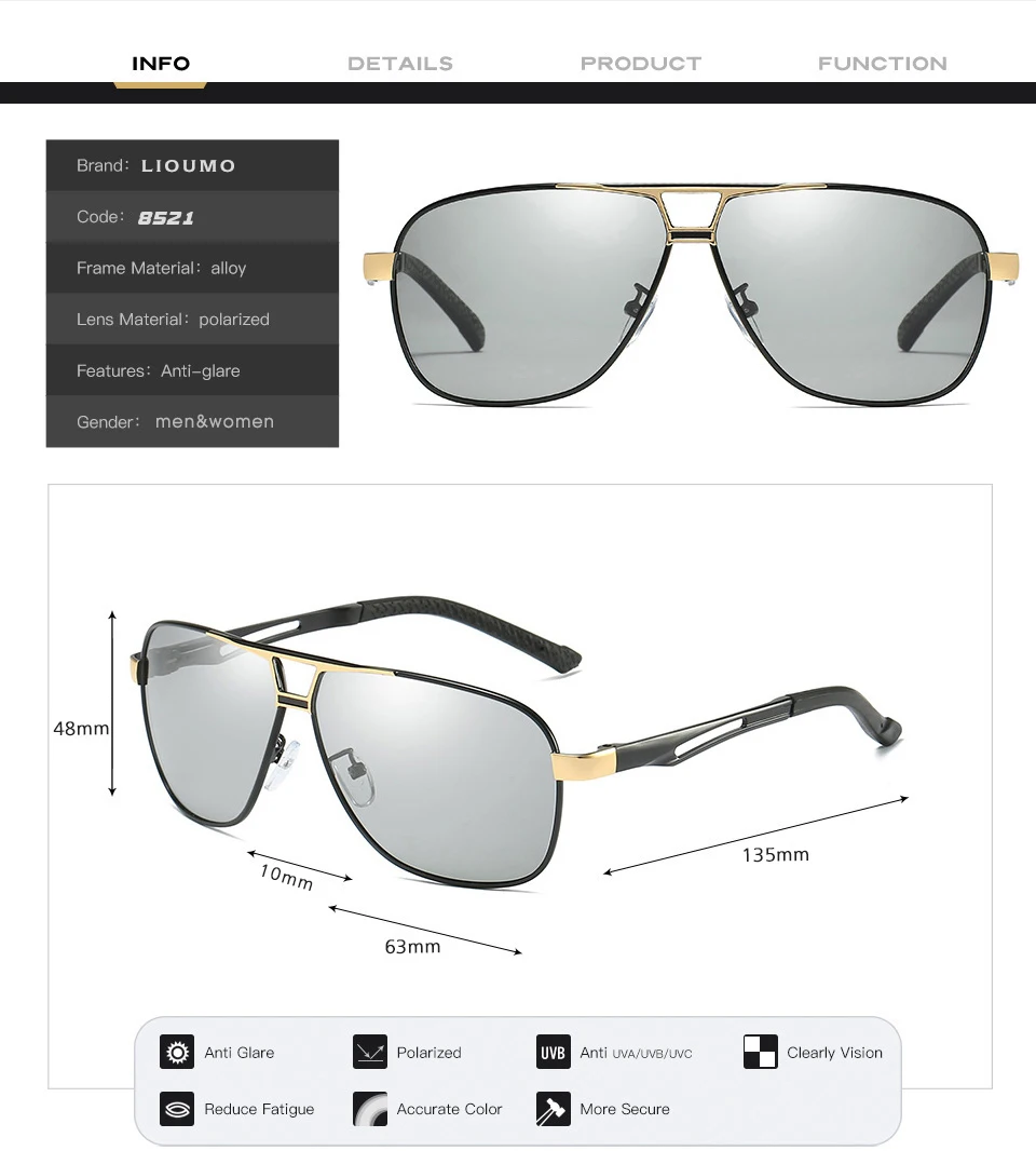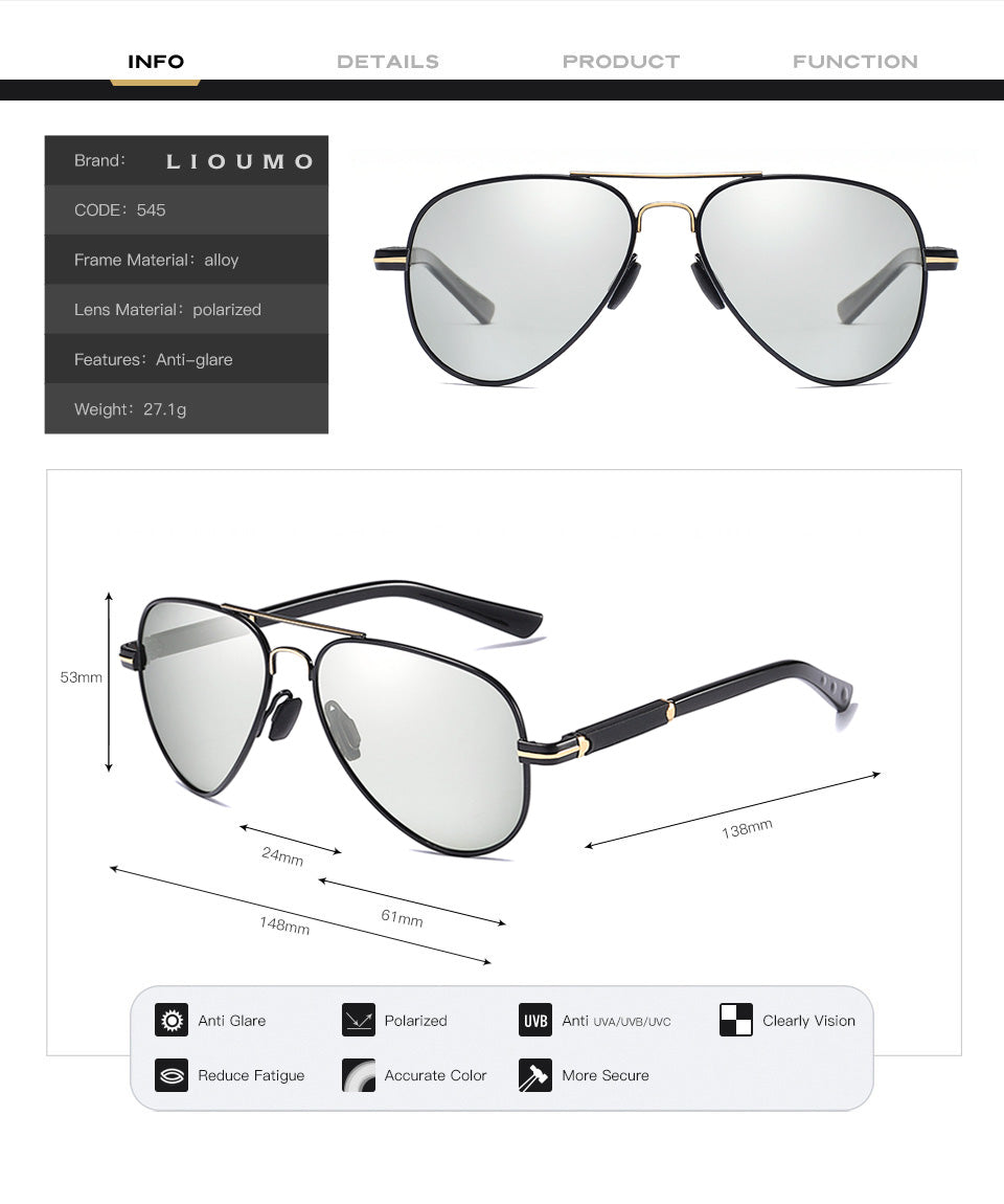 3PCS Combined LIOUMO Brand Polarized Sunglasses For Men Women Photochromic Driving Eyewear Chameleon Anti-Glare Lenses