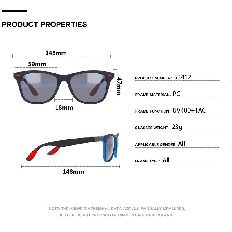 53412 Polarized Sunglasses Men Women Shades UV400 Vintage Glasses