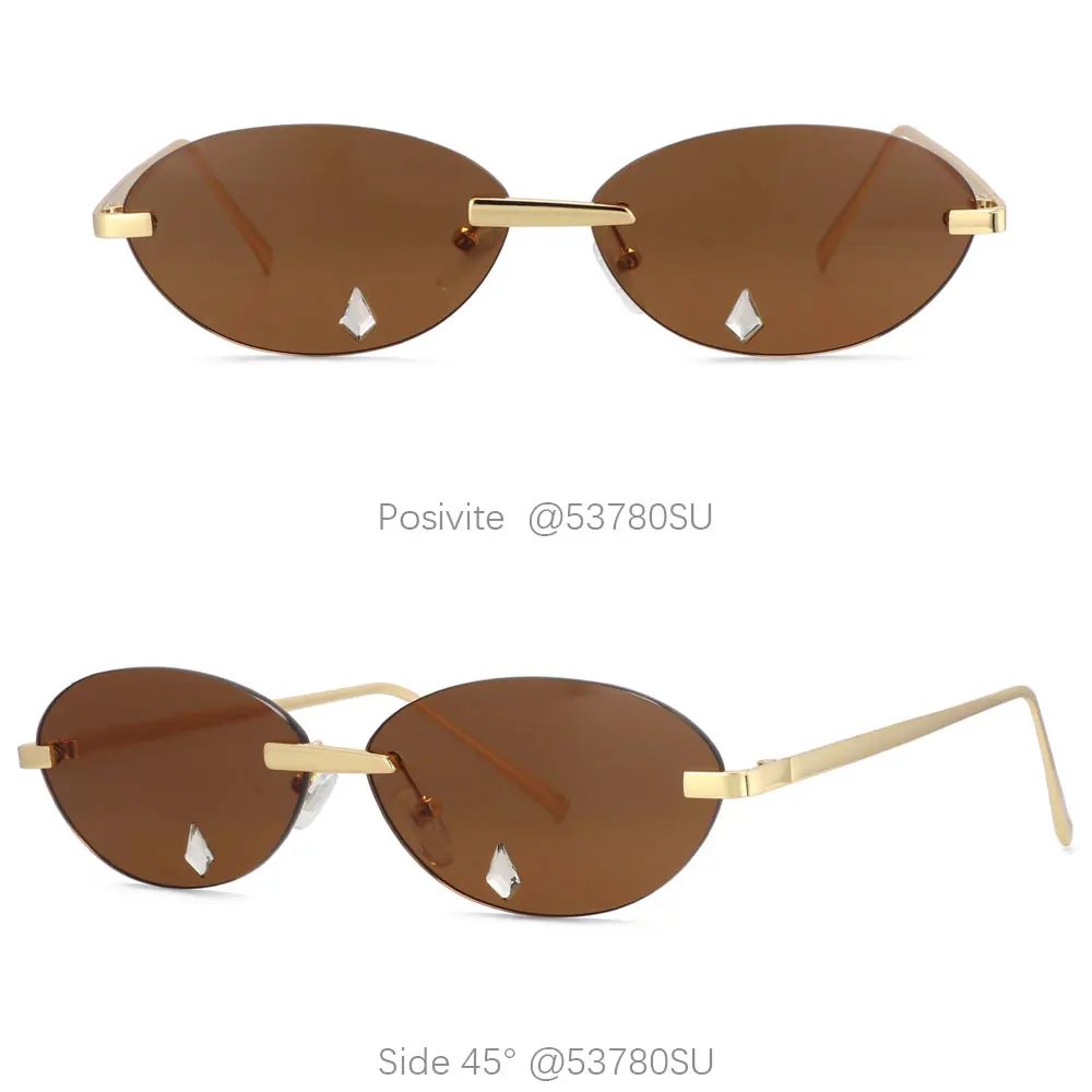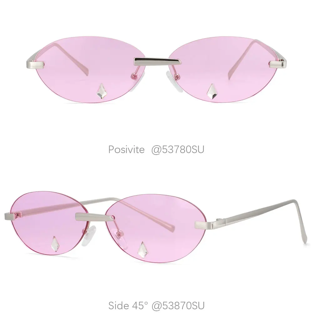 53780 Oval Rimless Sunglasses Diamond Women Shades Uv400 Vintage Glasses