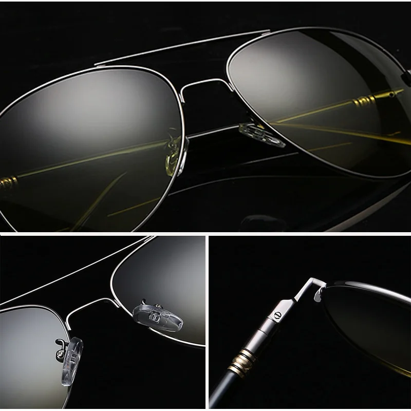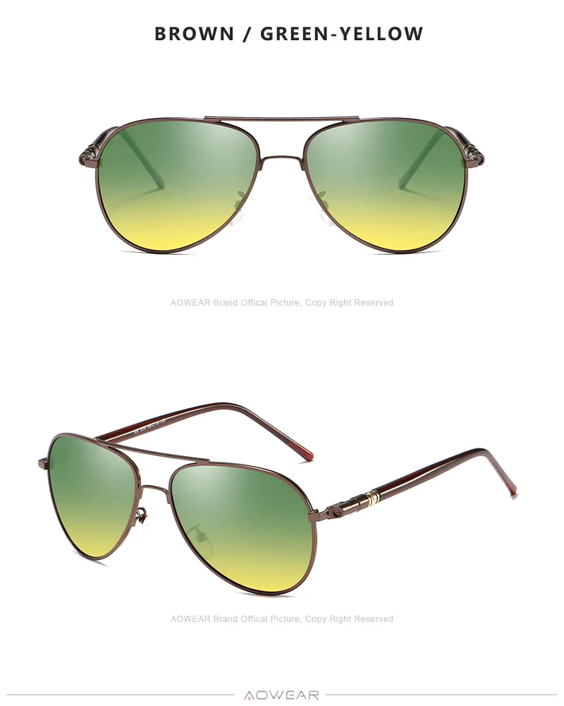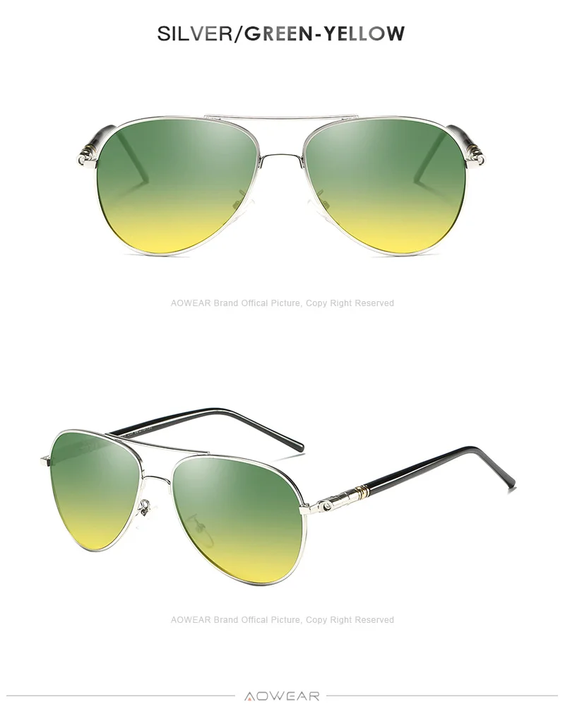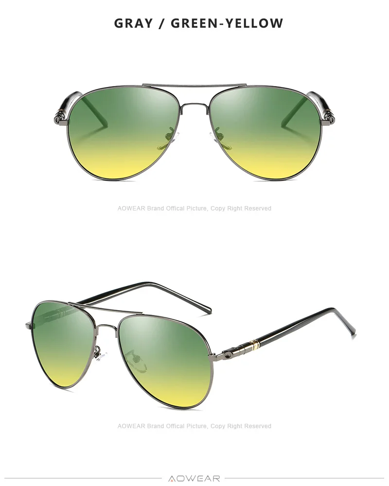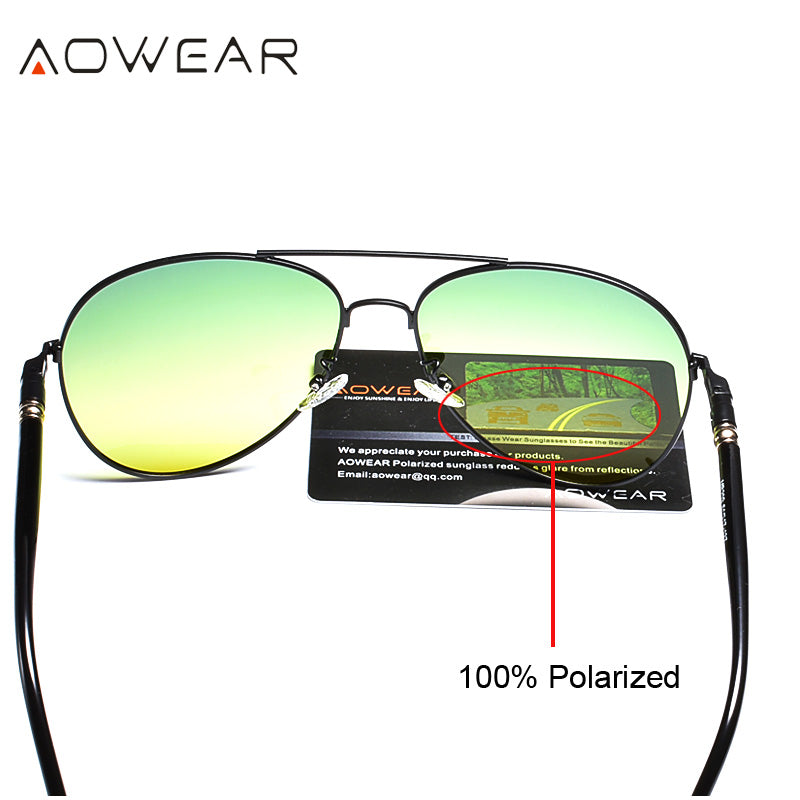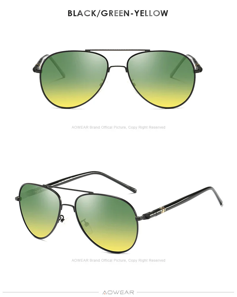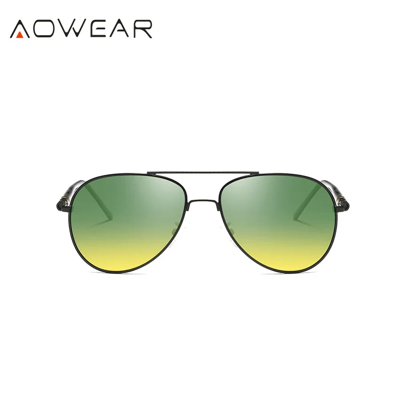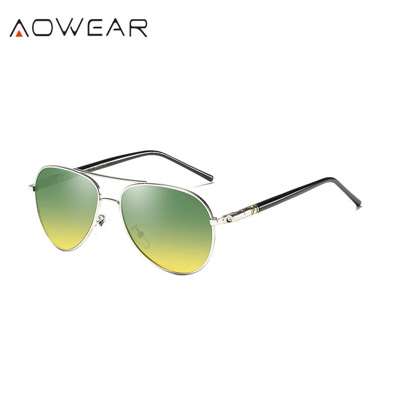 AOWEAR Day and Night Vision Glasses for Driving Goggles Male HD Classic Pilot Yellow Polarized Sunglasses for Men Women Shades
