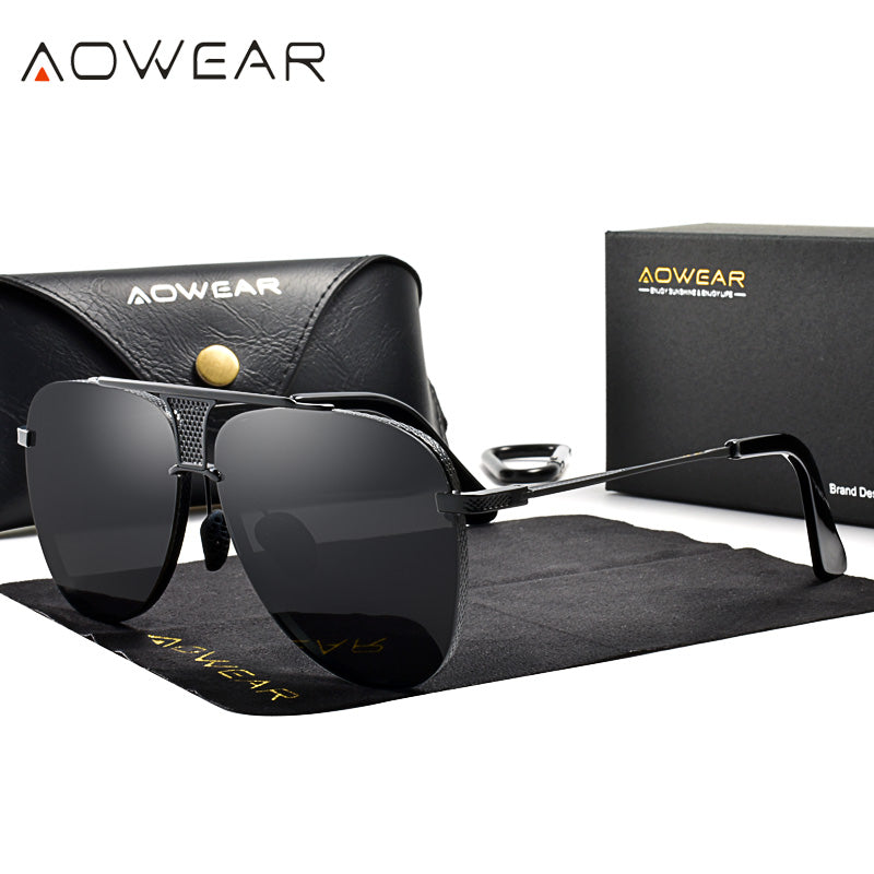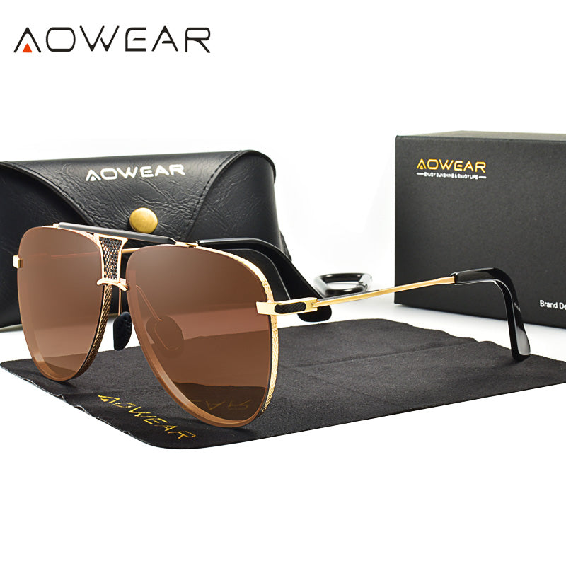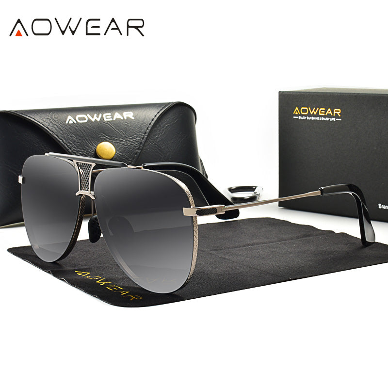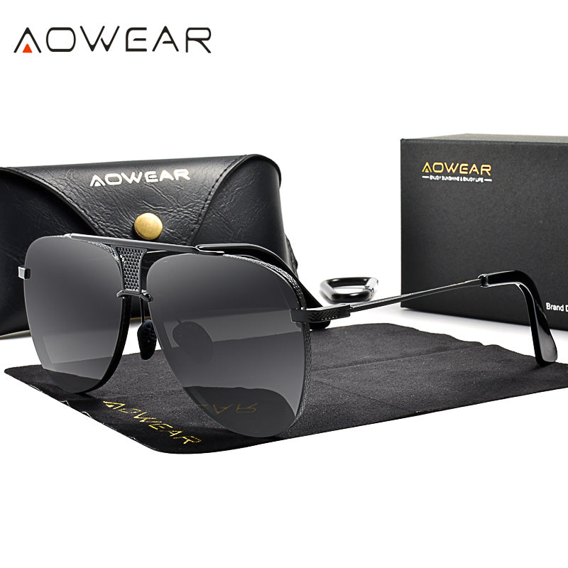 AOWEAR Designer Gradient Sunglasses Men Polarized Retro Oversized Glasses Male Trending Anti-glare Goggles Eyeglasses