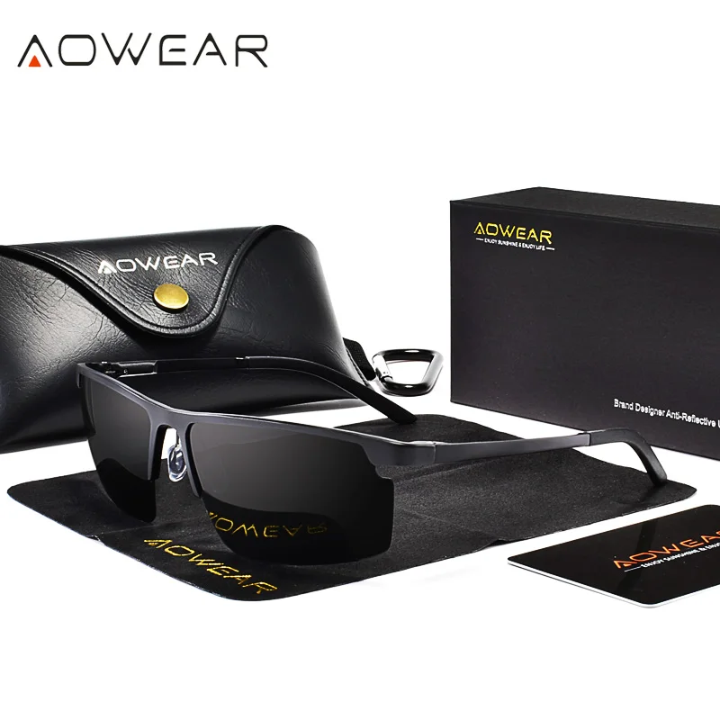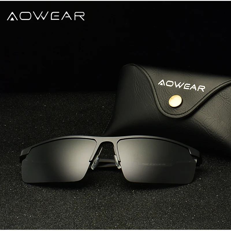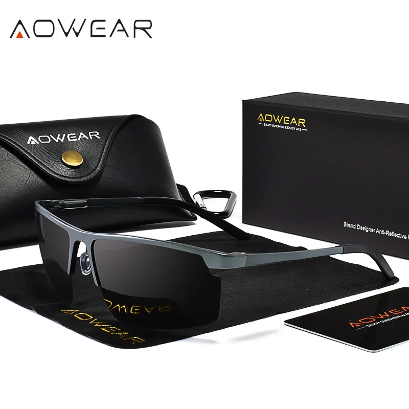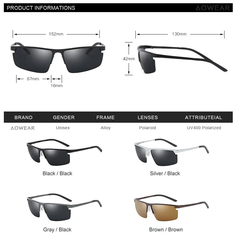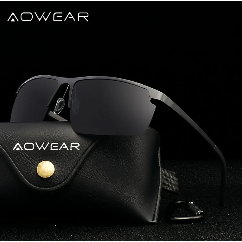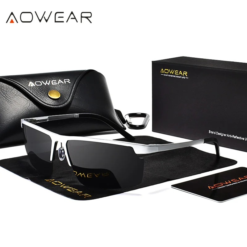 AOWEAR Genuine Aluminum Rimless Sunglasses Men Polarized  Brand Lightweight Outdoor Sports Retro Sun Glasses for Man