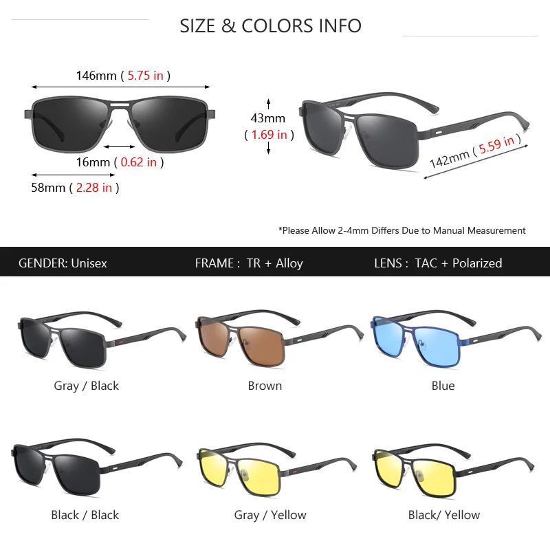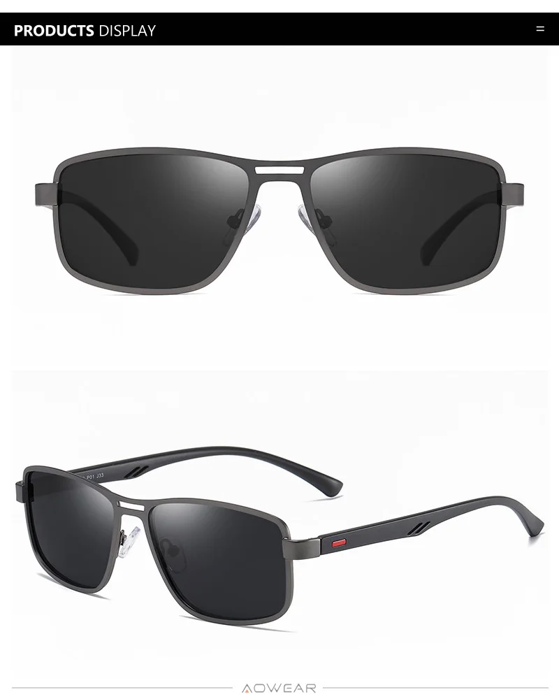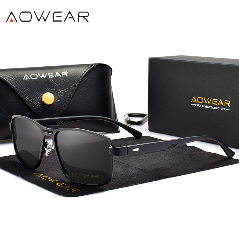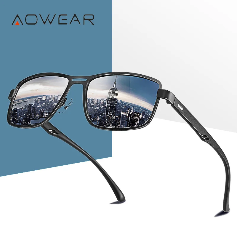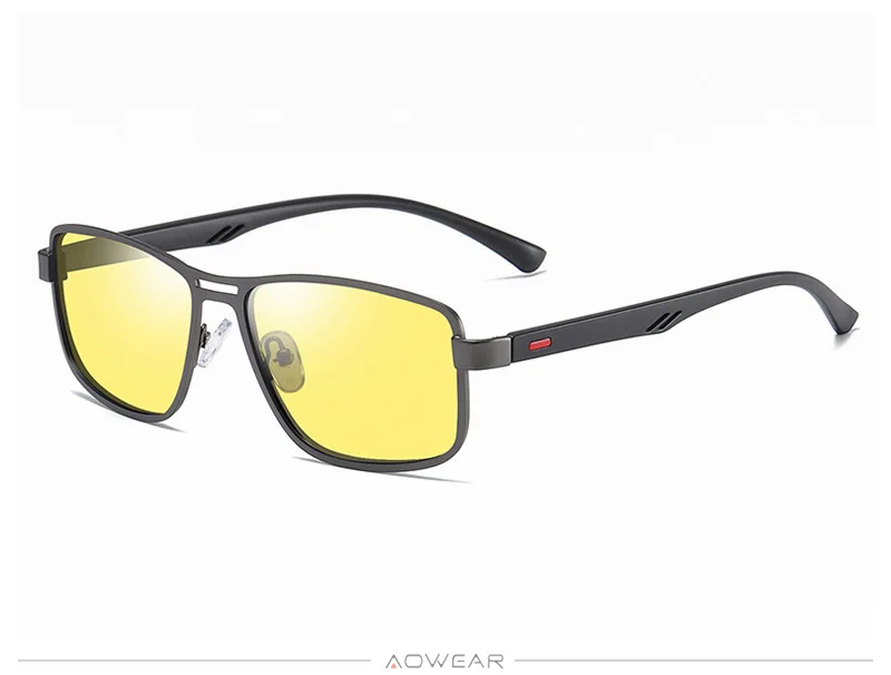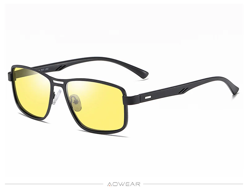 AOWEAR Men's Square Polarized Sunglasses Men Rectangle Car Driver Retro Sun Glasses Night Vision Yellow Glasses for Men / Women