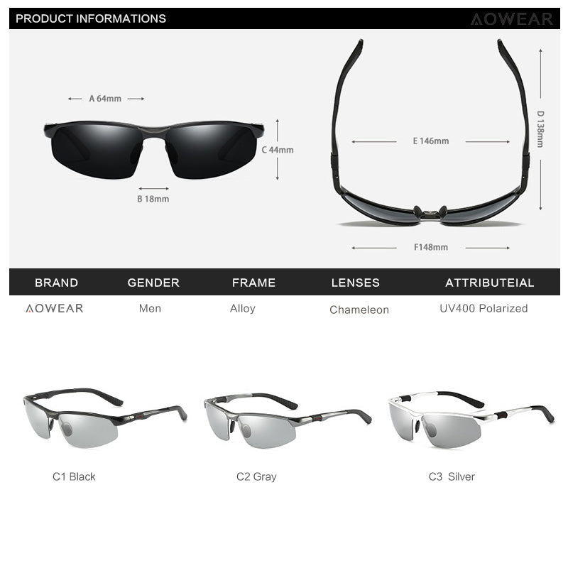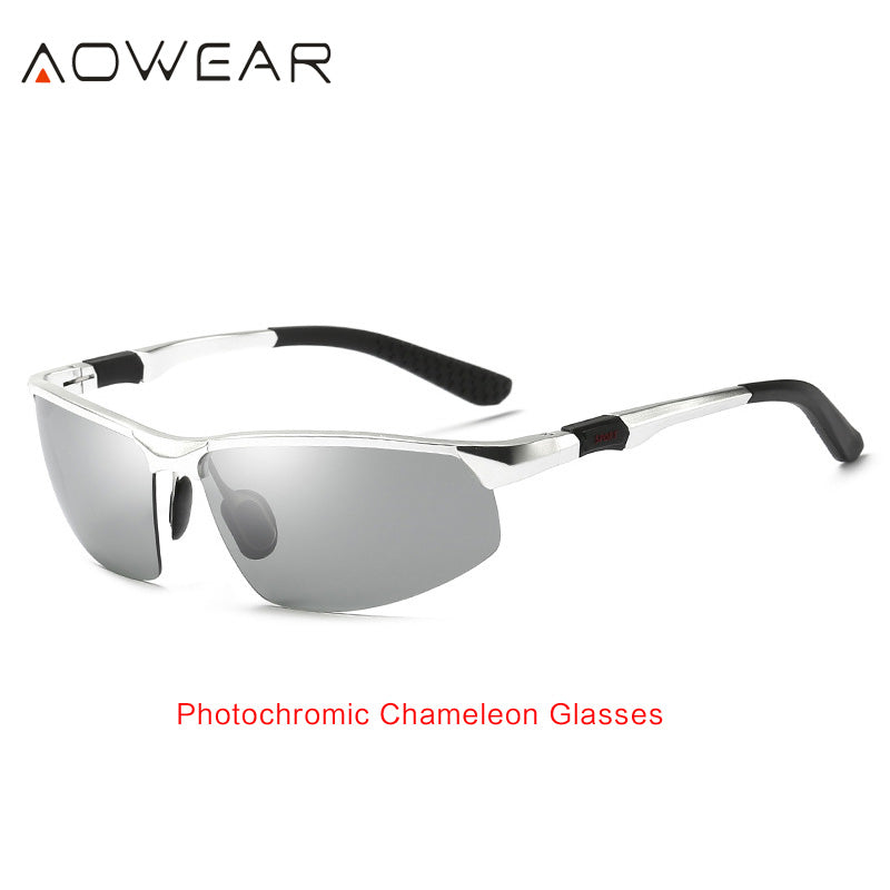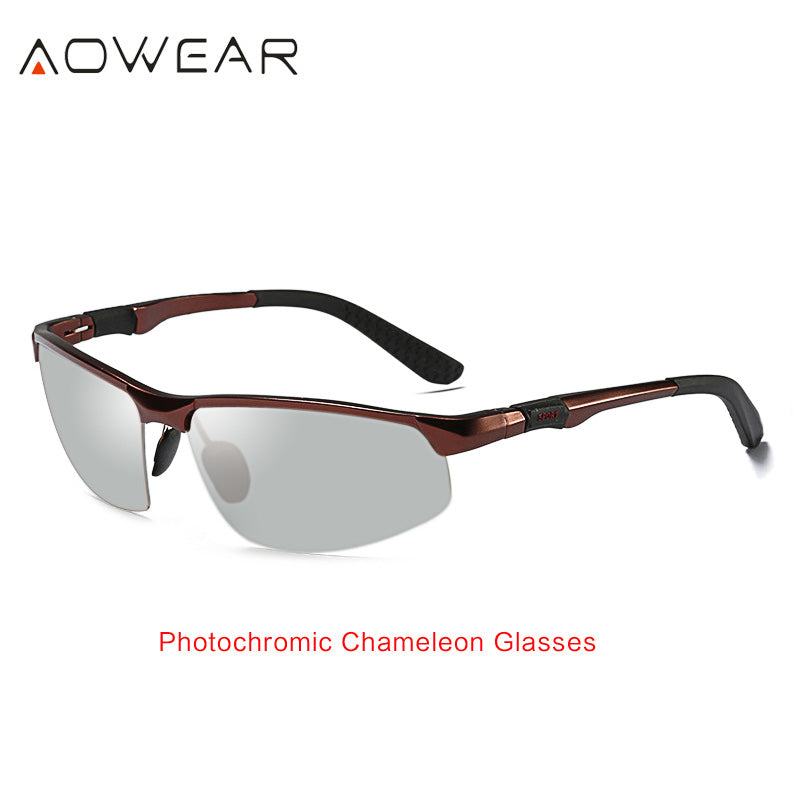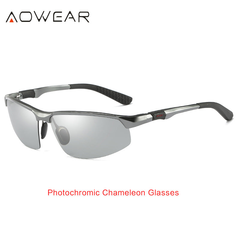 AOWEAR Photochromic Sunglasses Men Polarized Day Night Driving Glasses  Aluminium Rimless Chameleon Eyewear Gafas