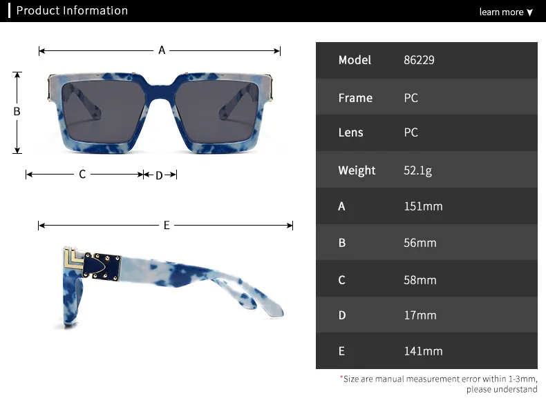 Name : Brand Designer Square Ladies Blue Sky Shades Luxury Fashion Sun Glasses