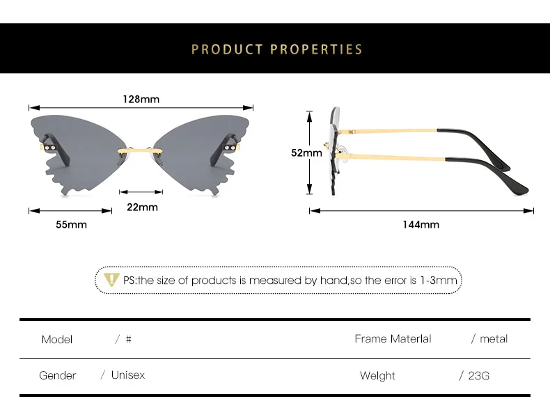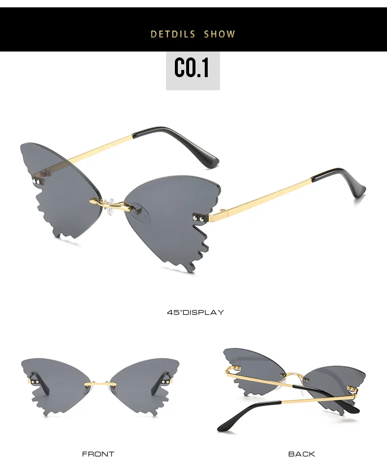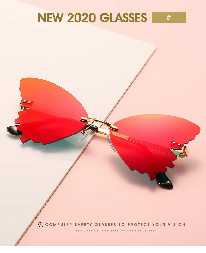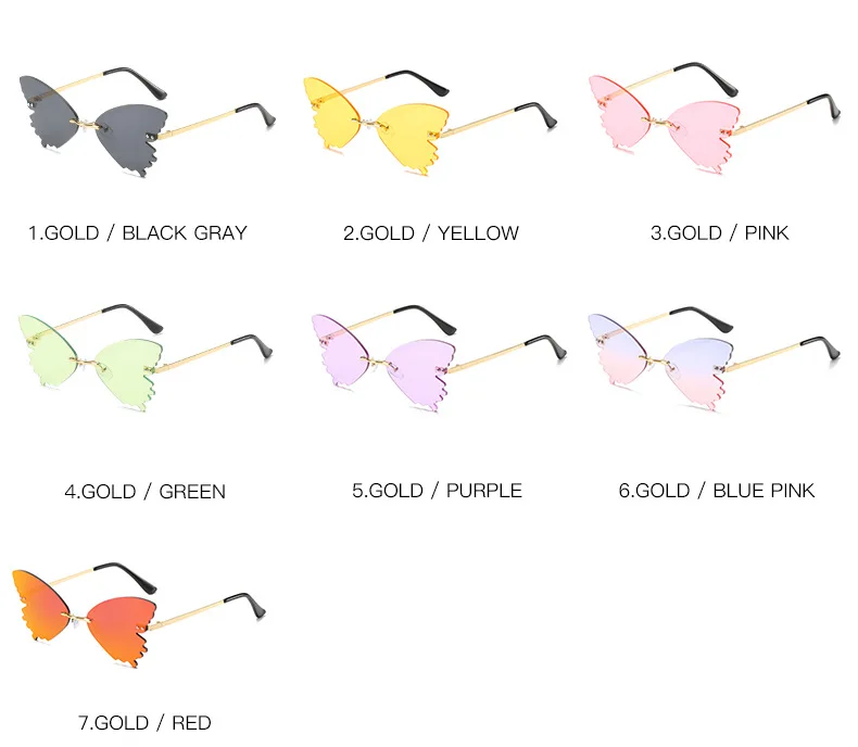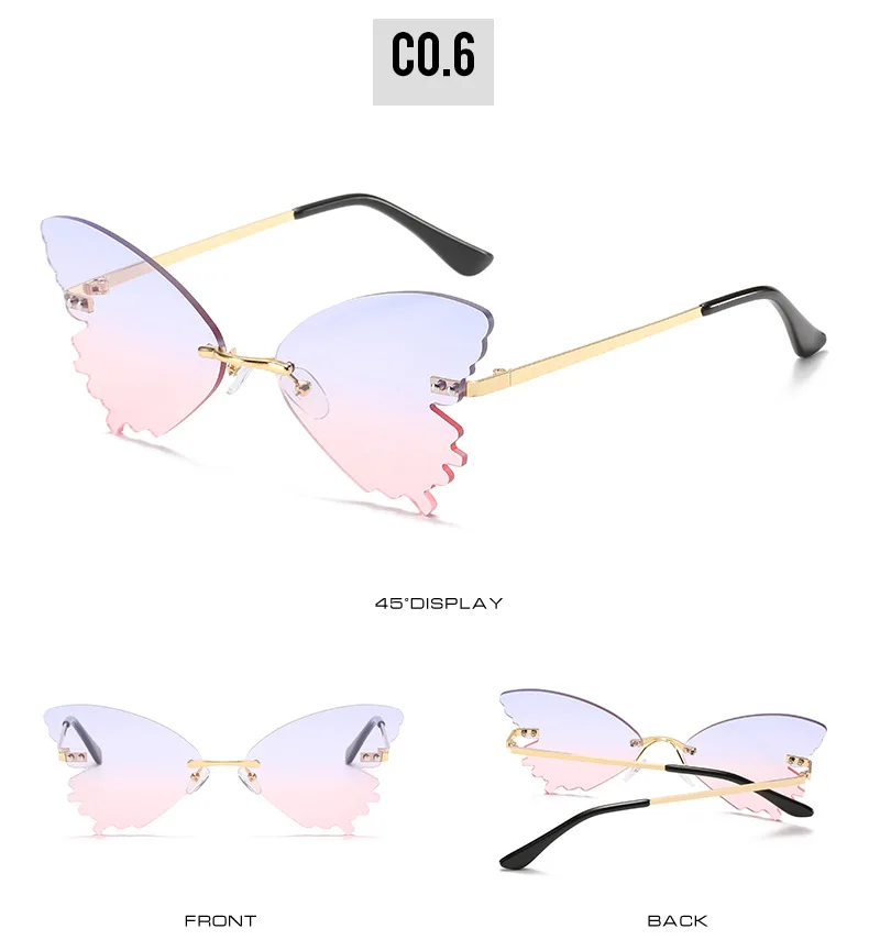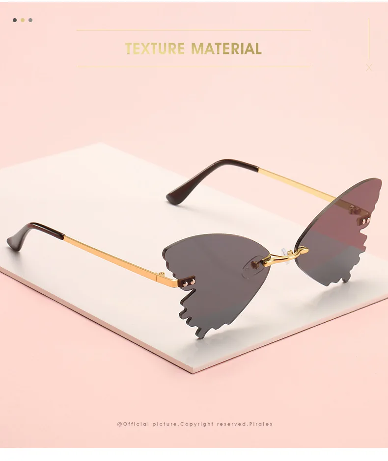 Butterfly Sunglasses women 2023 Rimless Men Women Shades UV400 Metal Glasses oculos masculino Okulary Gafas de sol mujer