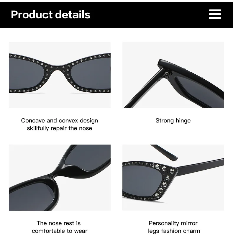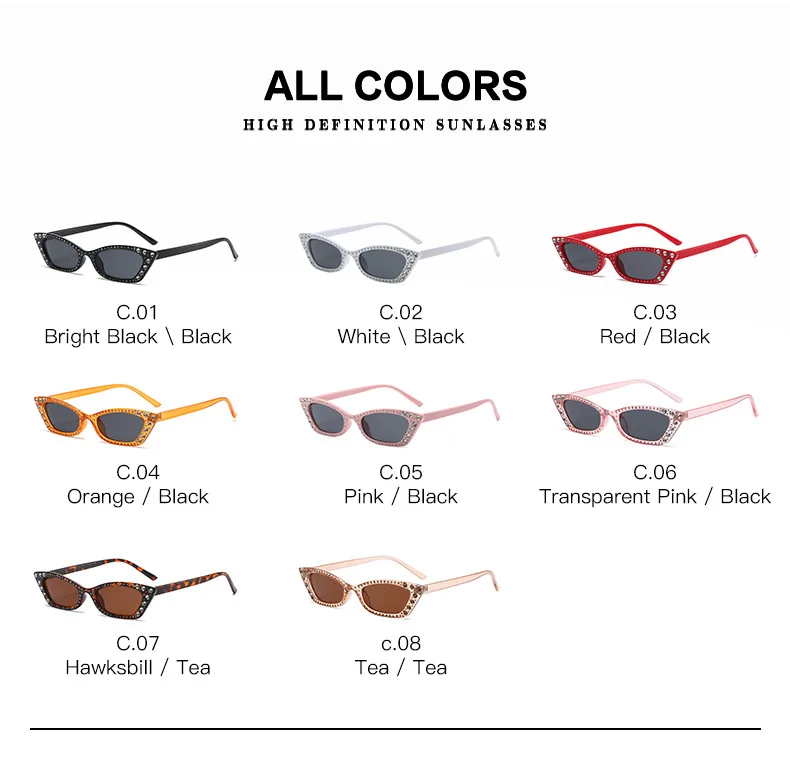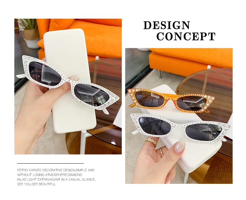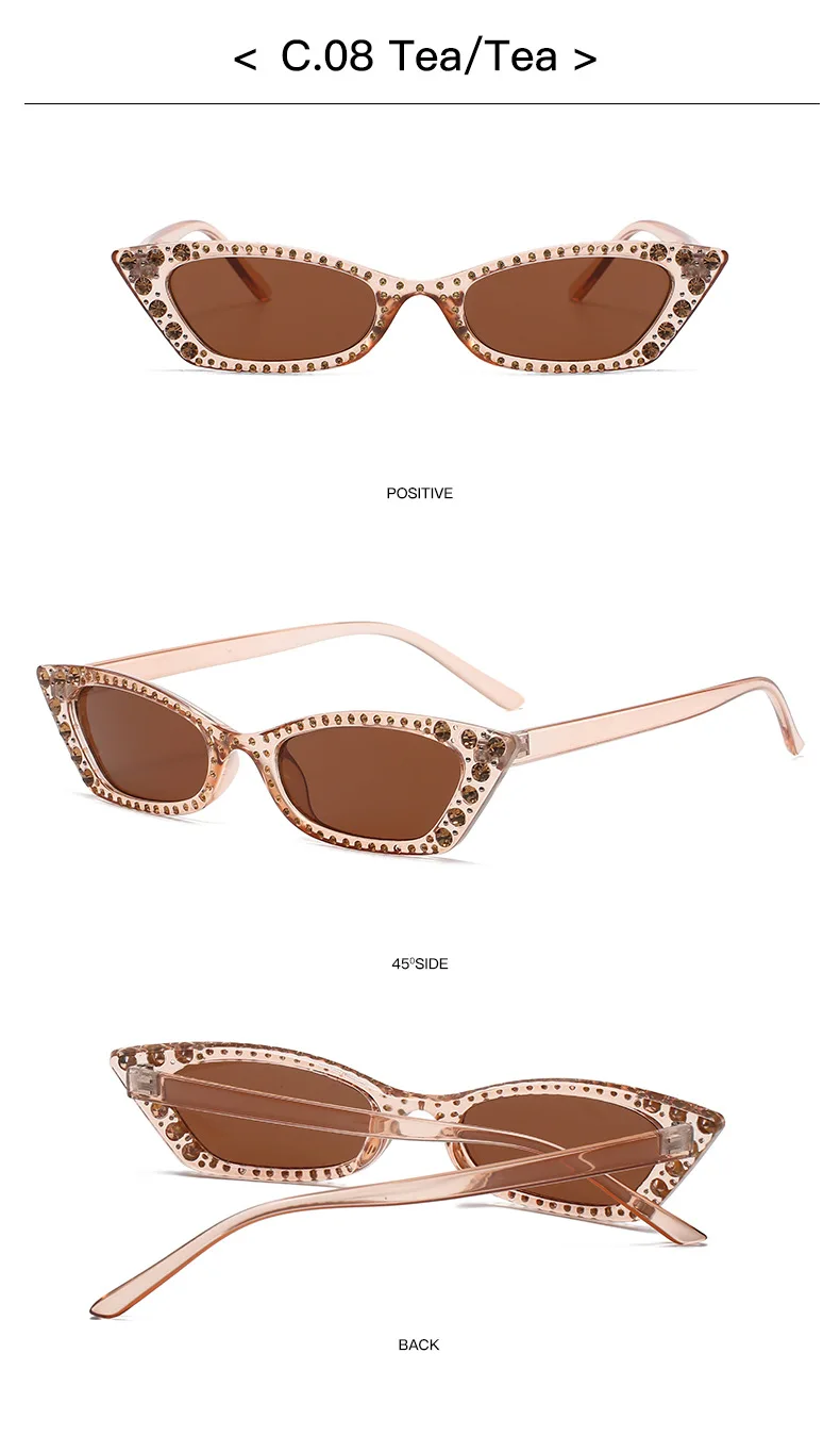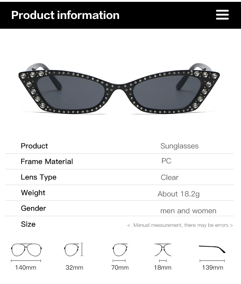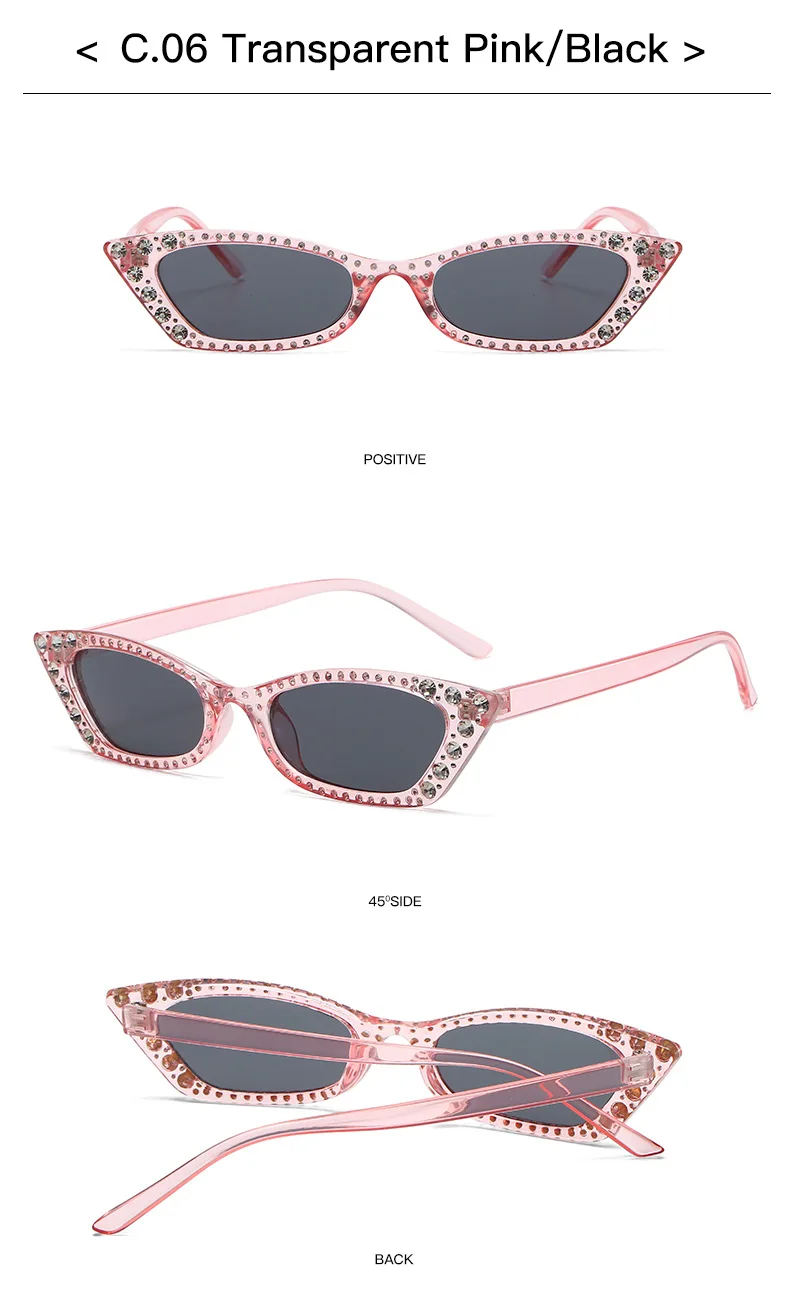 Cat Eye Diamond Sunglasses Women Men Punk Transparent Sun Glasses Lady  Brand Designer Rhinestone Eyeglasses UV400