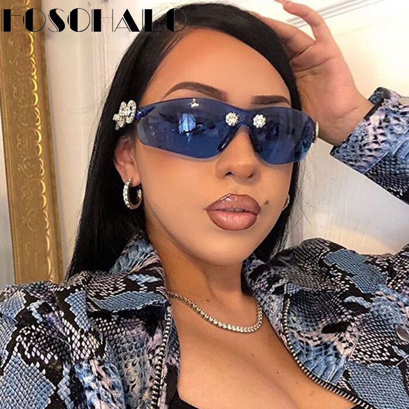 Diamond Rimless Sunglasses Women Men 2023 Rhinestone Sunglasses Shield Goggle Eyeglasses Shades  Brand Designer Sun Glass