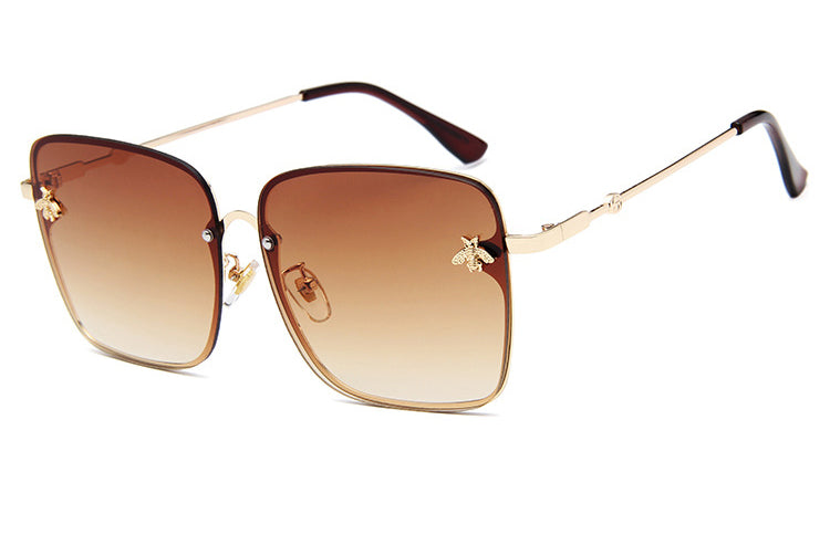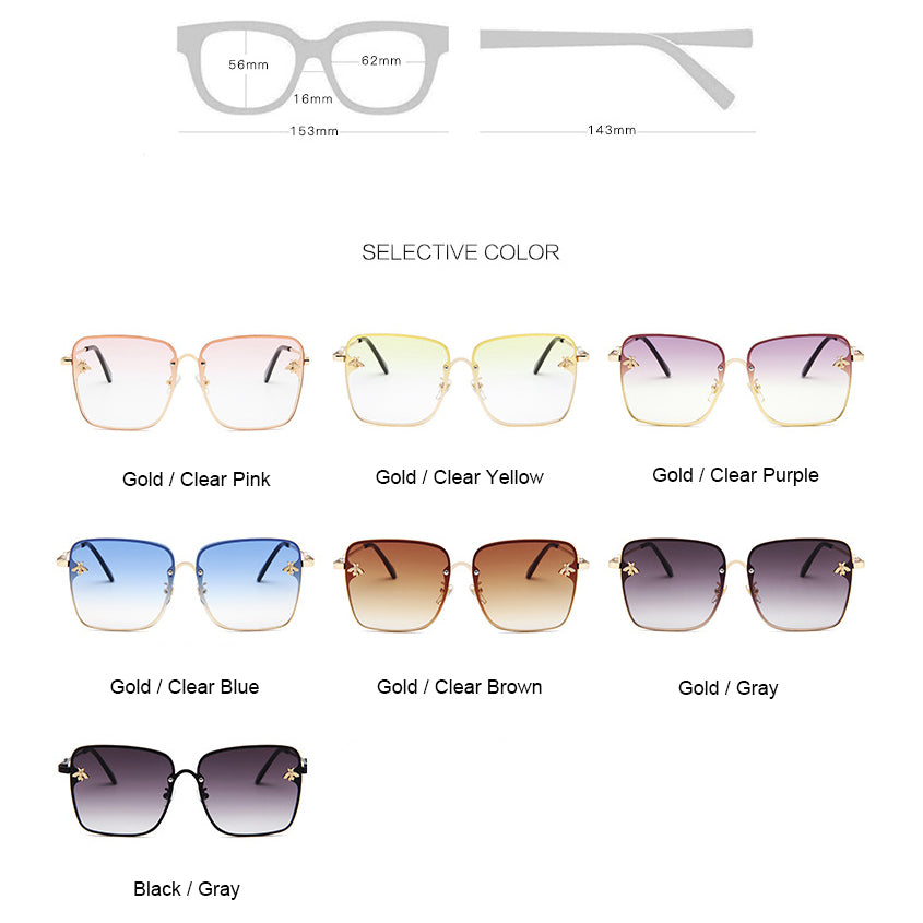 Elegant Lady Oversize Rimless Square Sunglasses Women Small Bee Glasses Gradient Sun Glasses For Female UV400