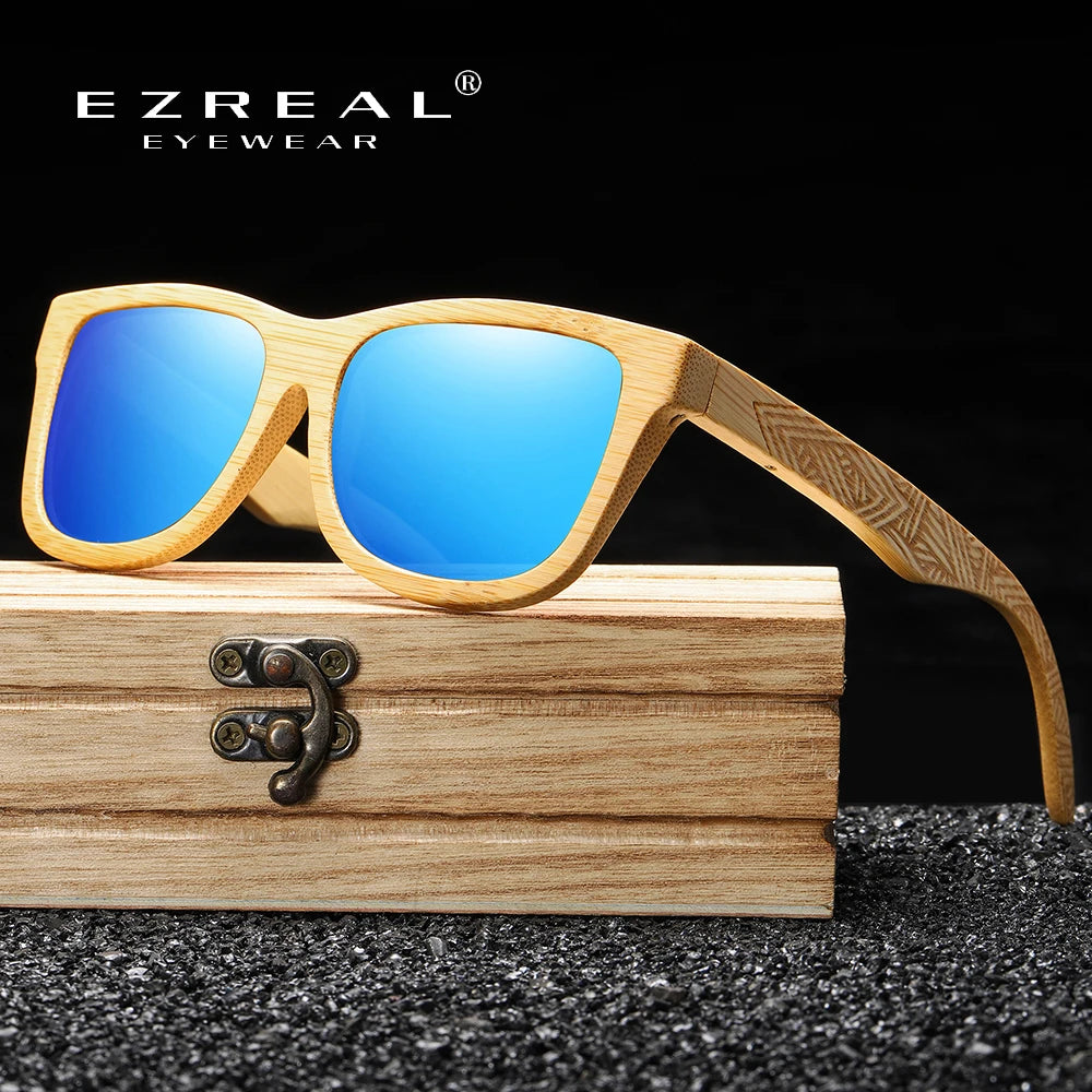 EZREAL Brand Design Handmade Natural Wooden Bamboo Sunglasses Sunglasses Polarized Wooden Oculos de sol masculino