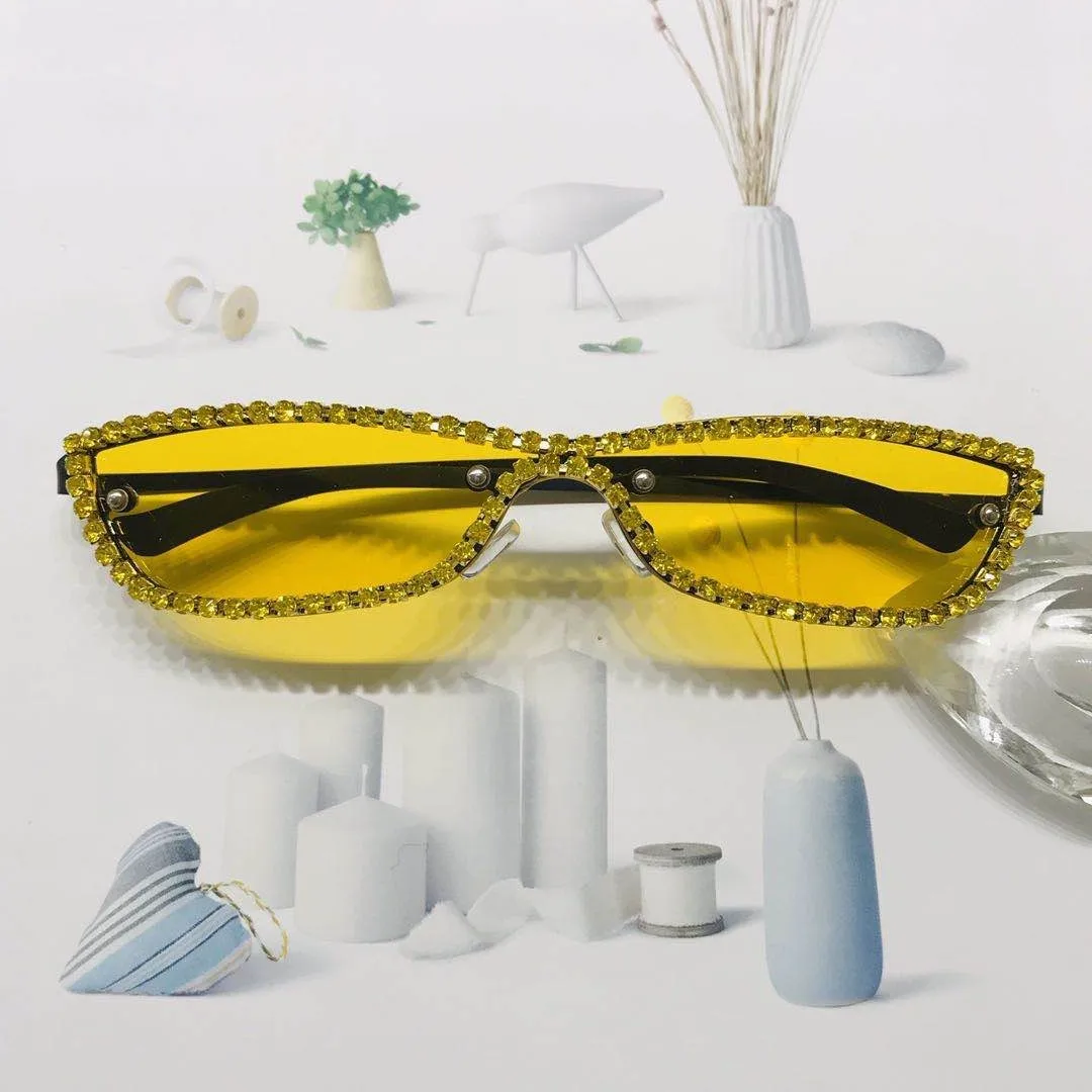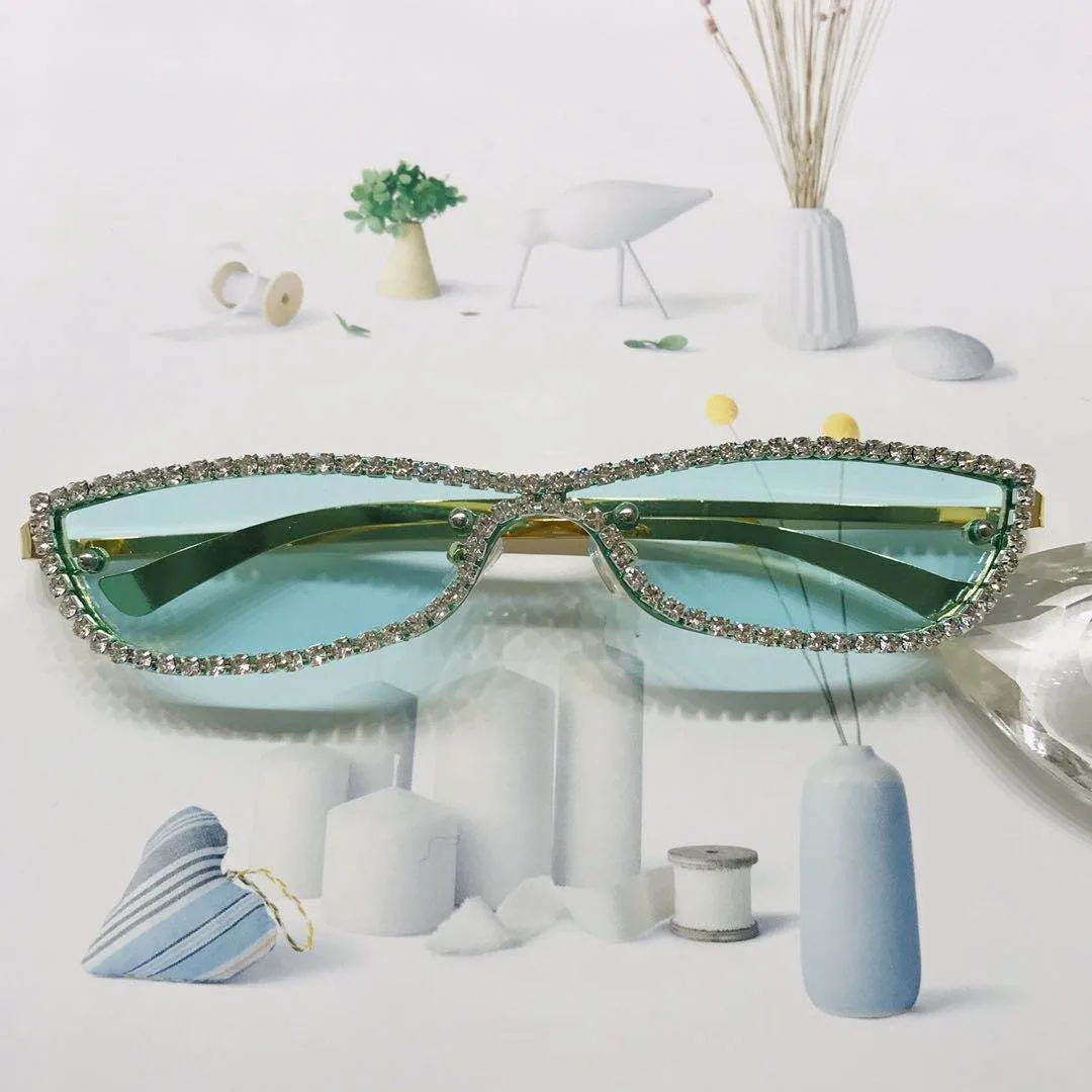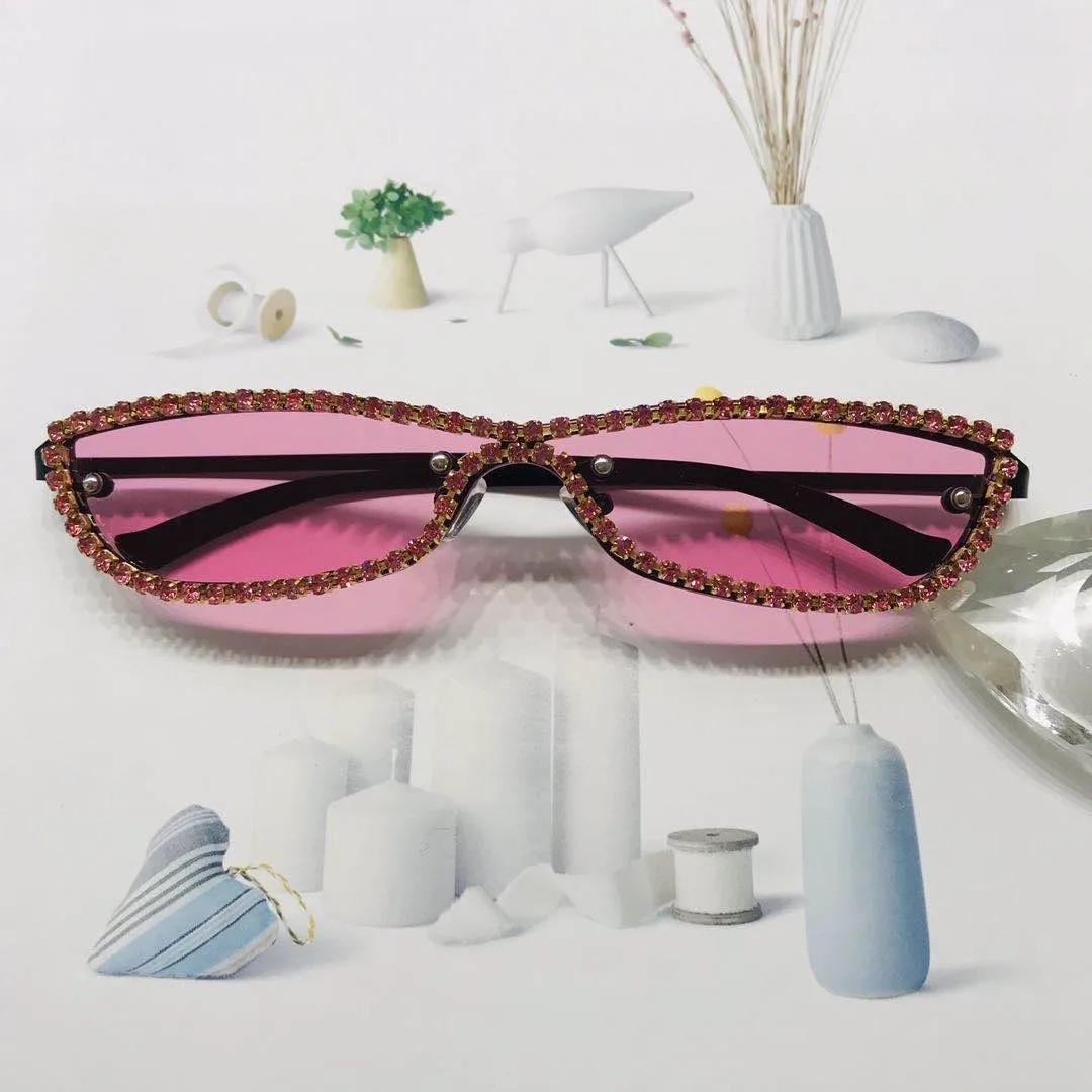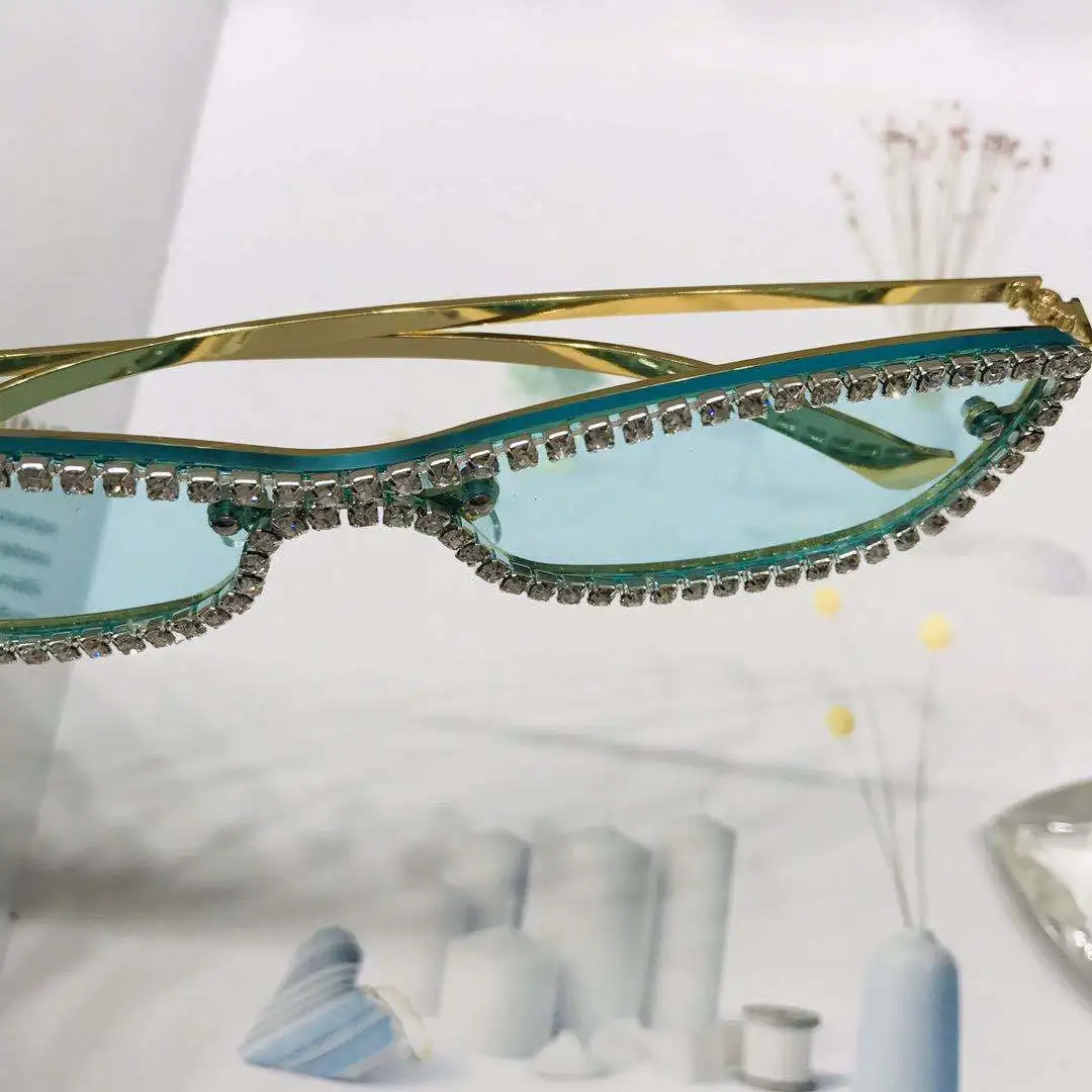 Handmade Crystal sunglasses women 2023 UV4010 Sexy woman Rhinestomne Sunglasses Ladies UV400 eEyewear