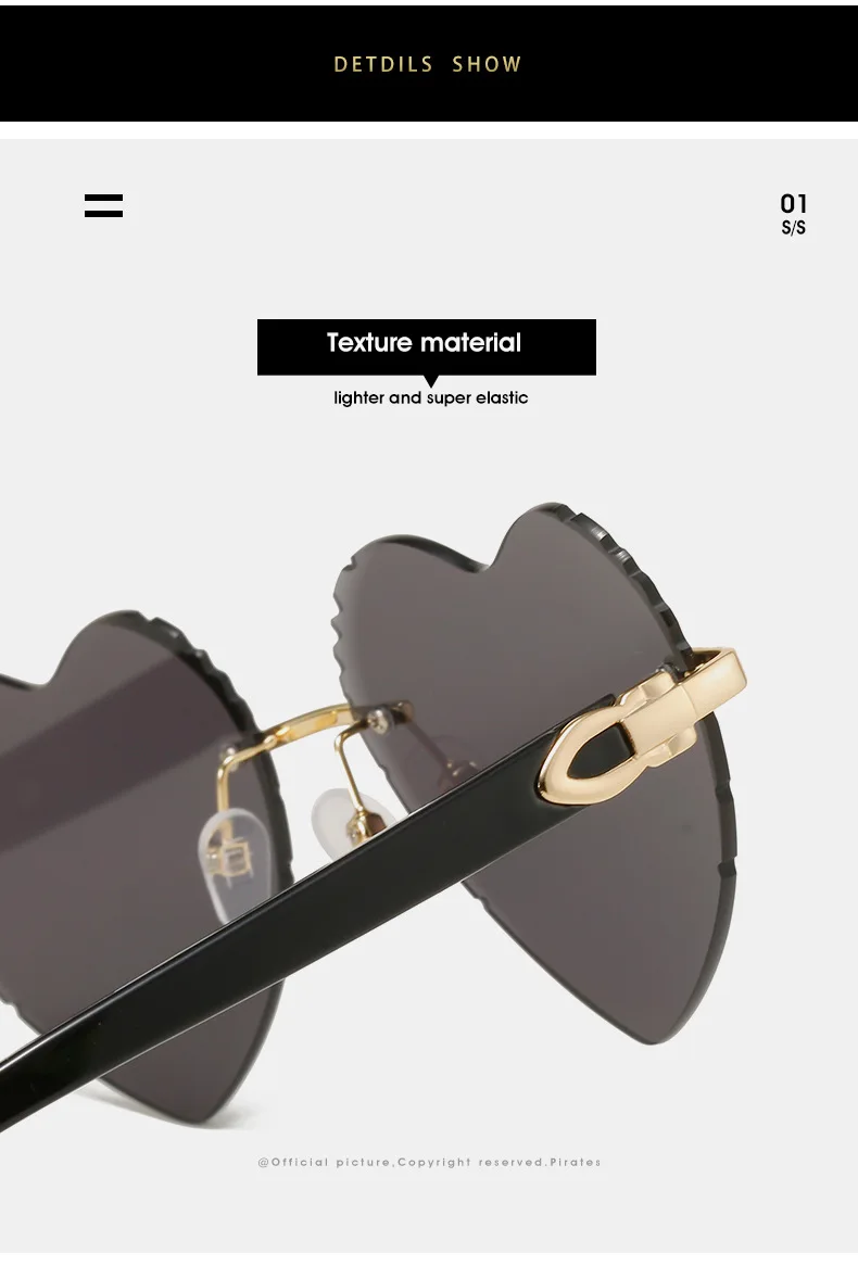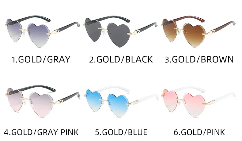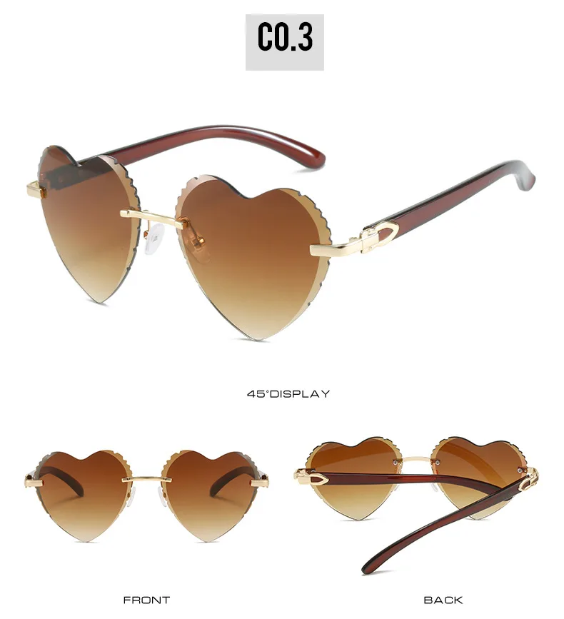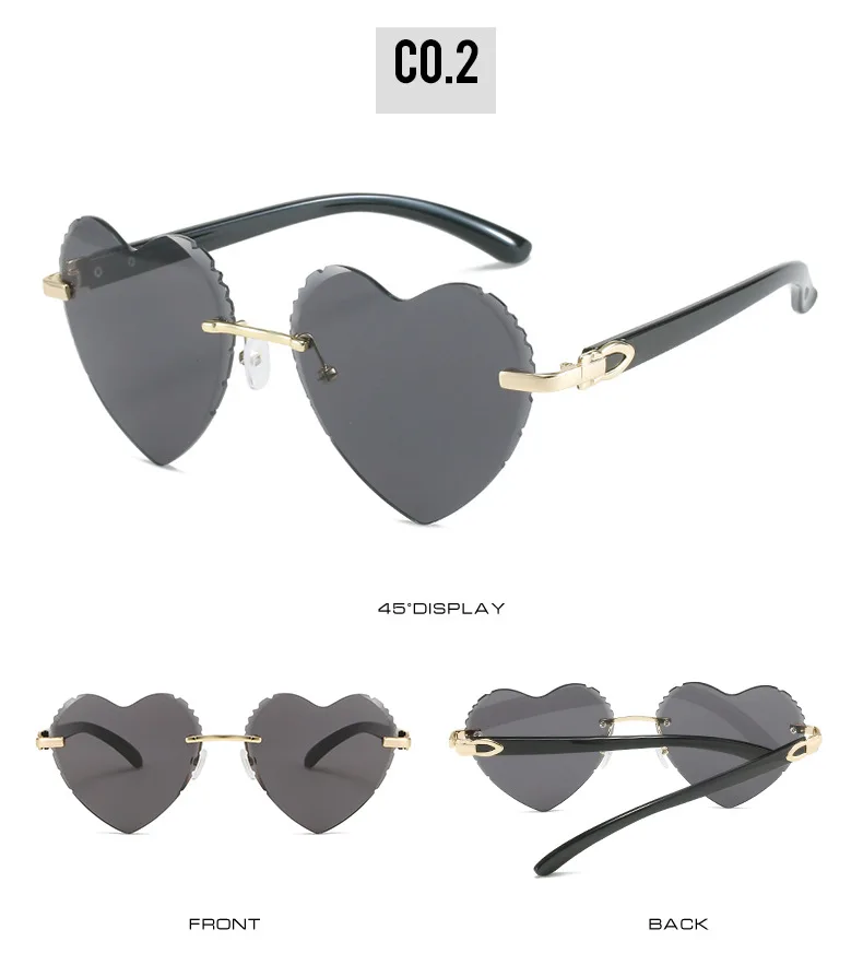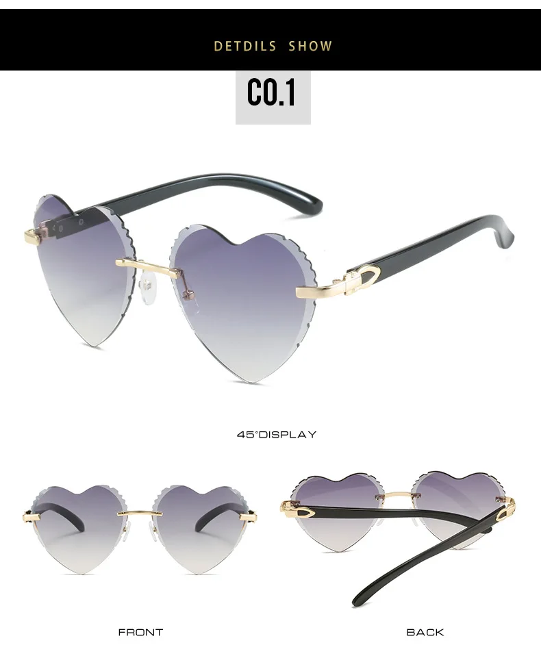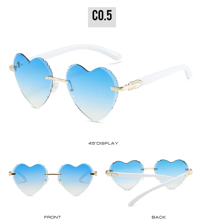 Heart Rimless Sun Glasses For Women Brand Designer Y2k Accessories Gradient Blue Stylish Sunglasses Women 2023