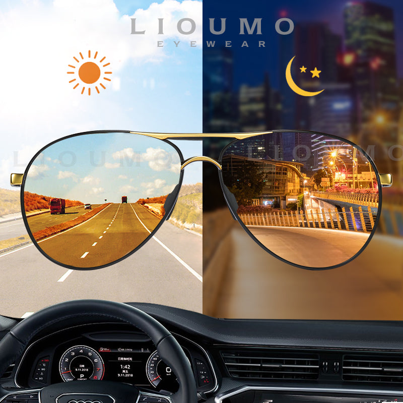 LIOUMO Aviation Sunglasses For Men Women's Glasses Photochromic Polarized Driving Goggle Day Night Vision gafas de sol hombre