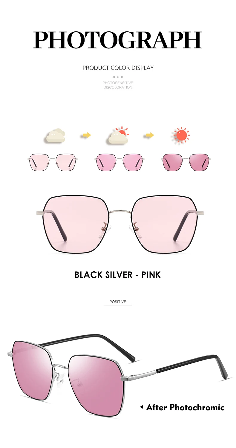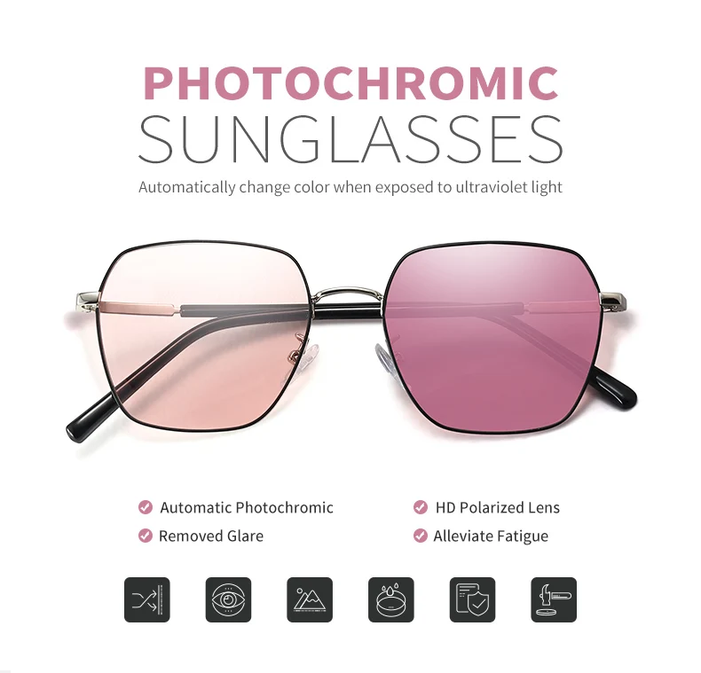 LM 2023 Metal Classic Photochromic Sunglasses Women Men Polarized Chameleon Glasses Male Change Color Sun Glasses UV400 Oculos