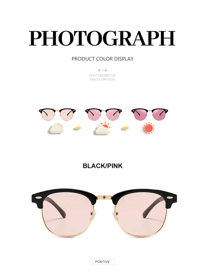 LM 2023 Polarized Photochromic Semi-Rimless Sunglasses Women/Men UV400 Classic Eyewear Candy colors Sun Glasses gafas de sol