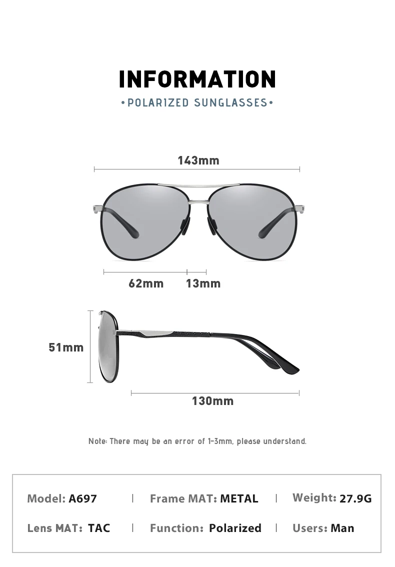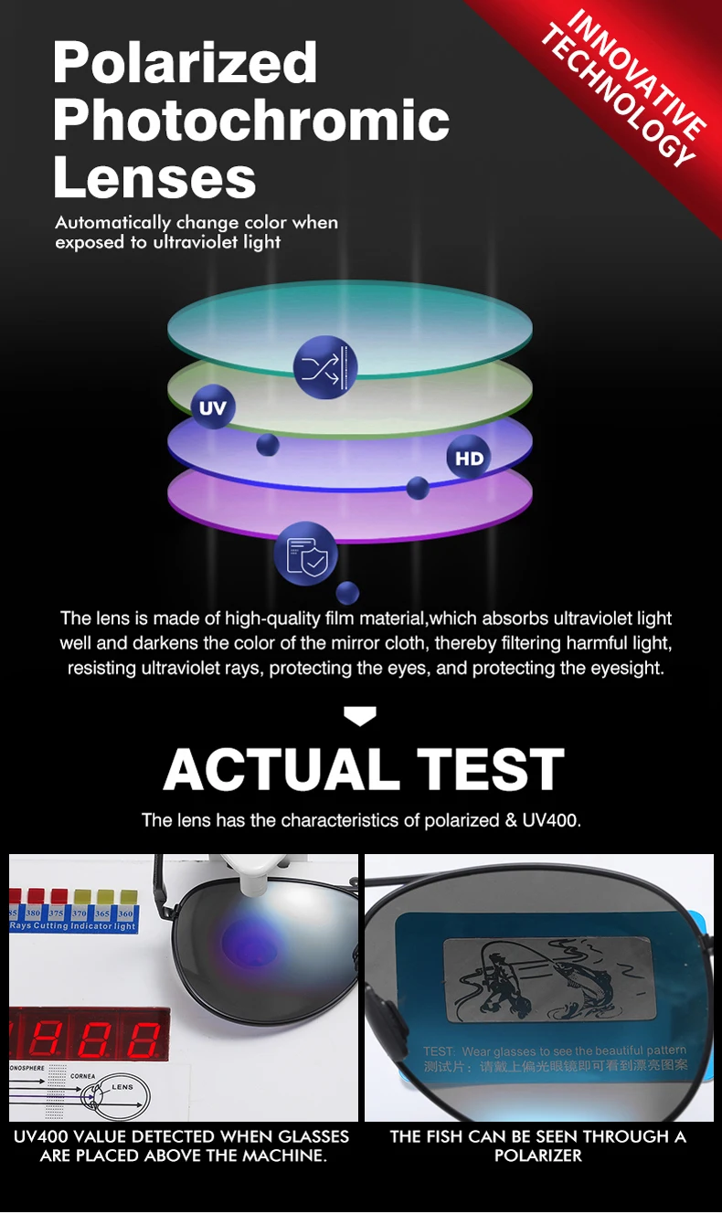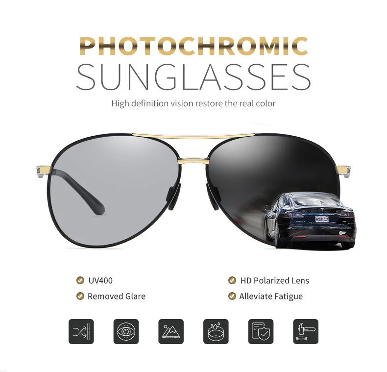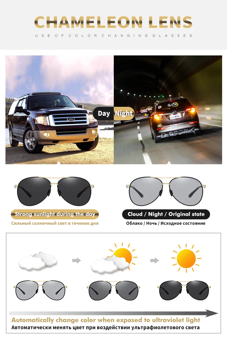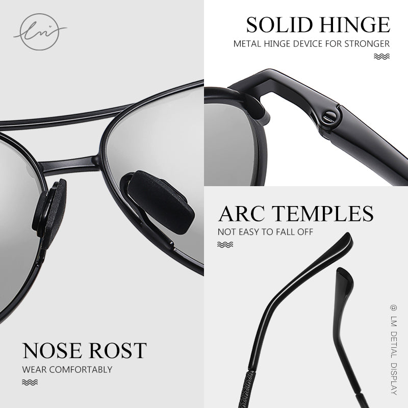 LM Men's Aviation Polarized Photochromic Sunglasses For Men Women Day Night Driving Chameleon Glasses lunettes de soleil homme