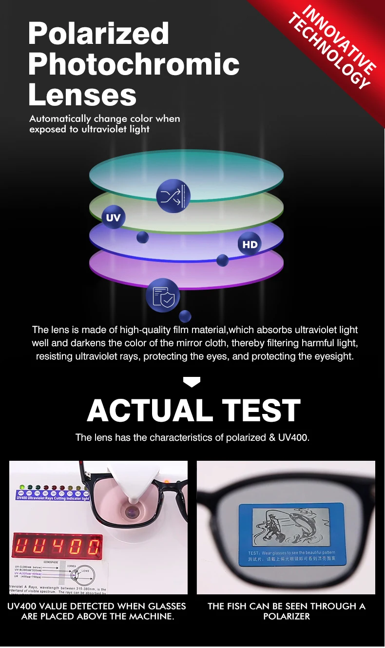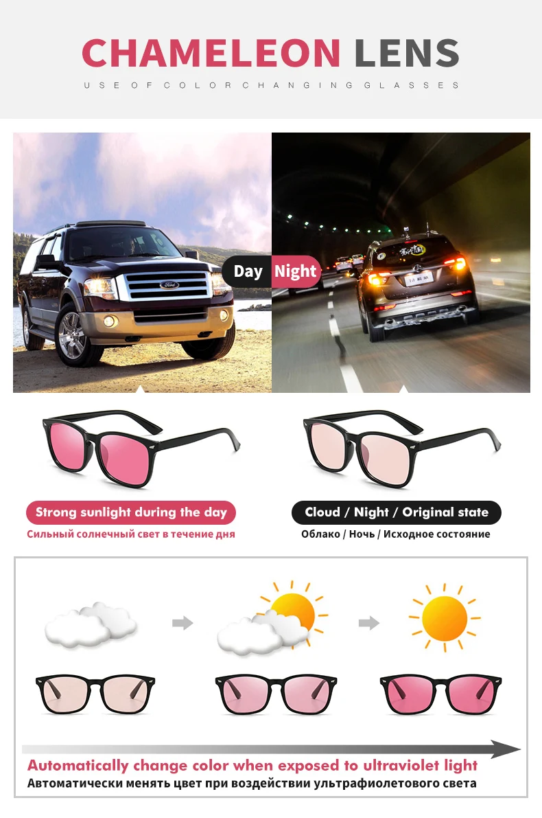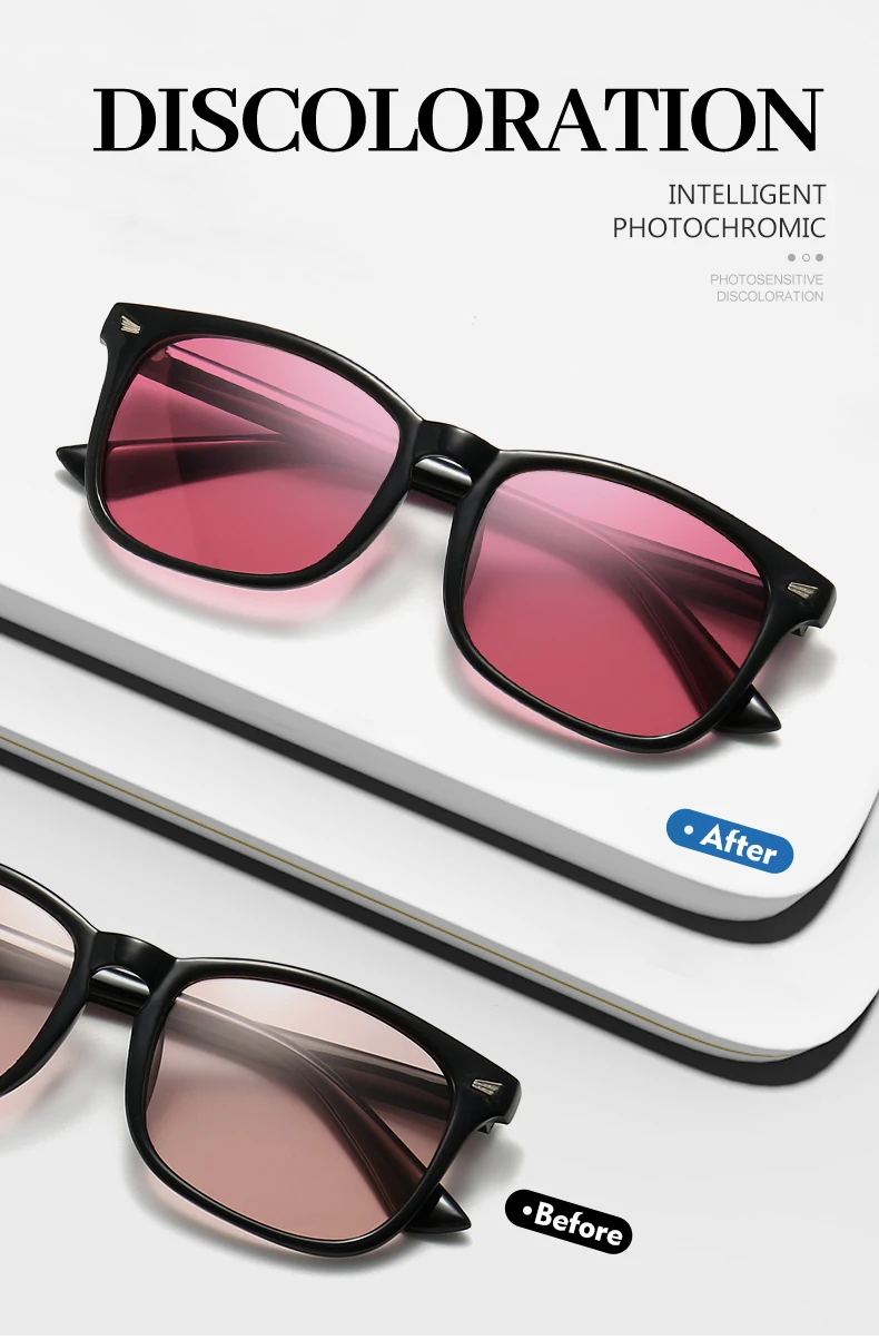 LM Photochromic Sunglasses Women Men Polarized Chameleon Candy Color Lens Classic Square Sun Glasses Trend UV400 Eyewear