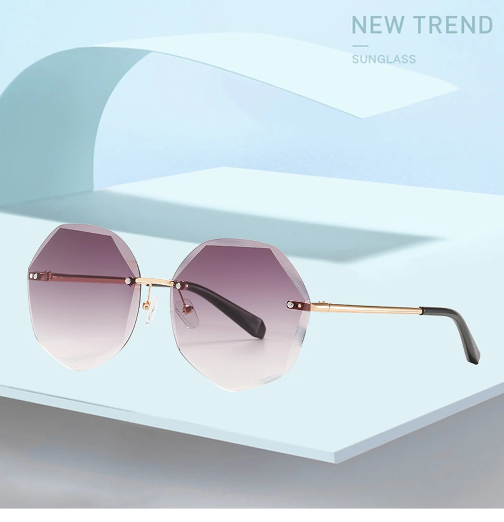 MUSELIFE Rimless Women's Sunglasses Gradient Lenses Sunglasses Lady Vintage Alloy Legs Classic Designer Shades UV400