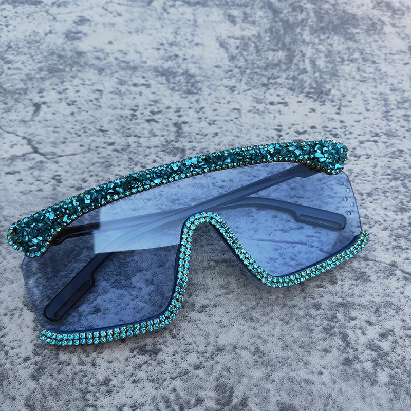 One Pieces Goggle Style Women Sunglasses 2023 Diamond Windproof Sunglasses Men Women Shades Uv400 Vintage Glitter Sun Glasses