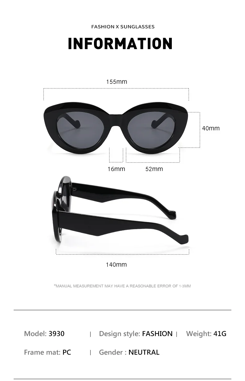 Oval Sunglasses for Women Cat Eye Style UV400 Protection Eyewear Jelly Color Sun Glasses