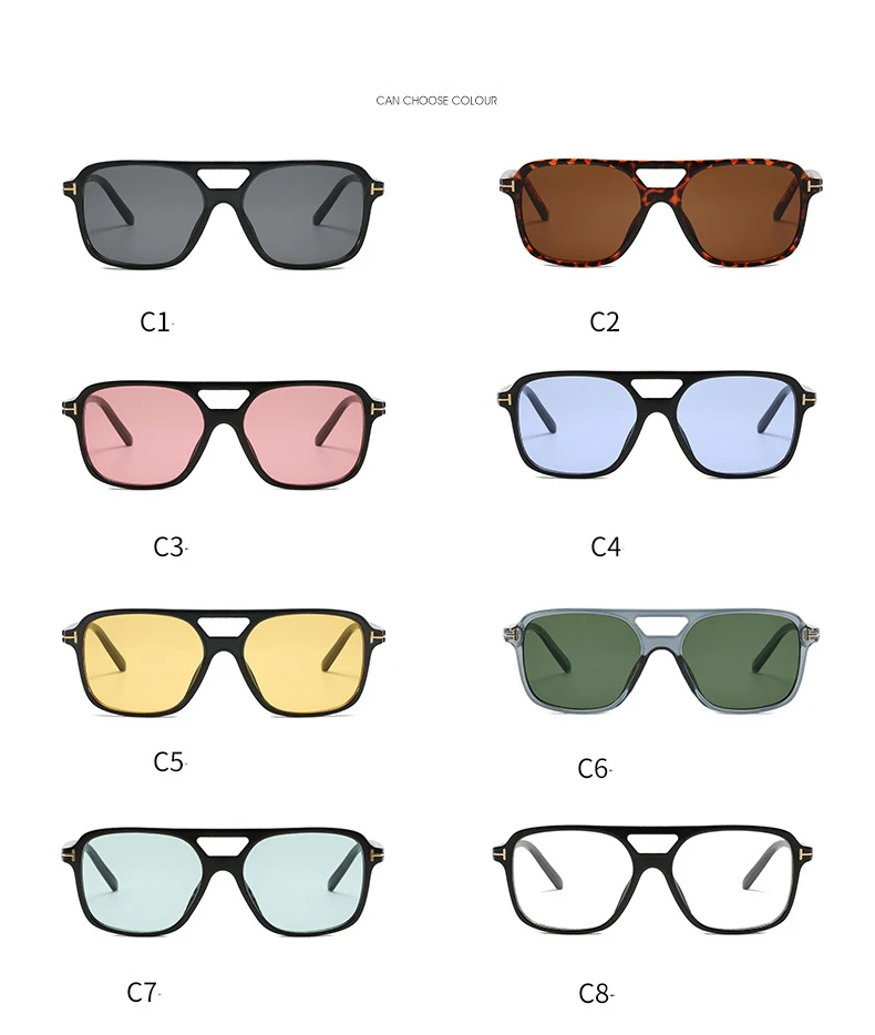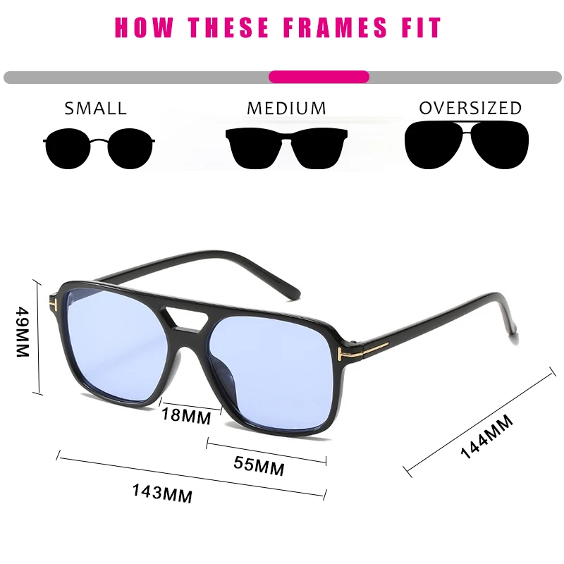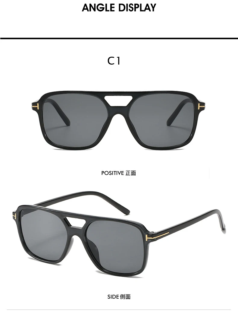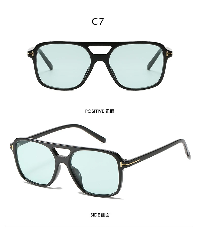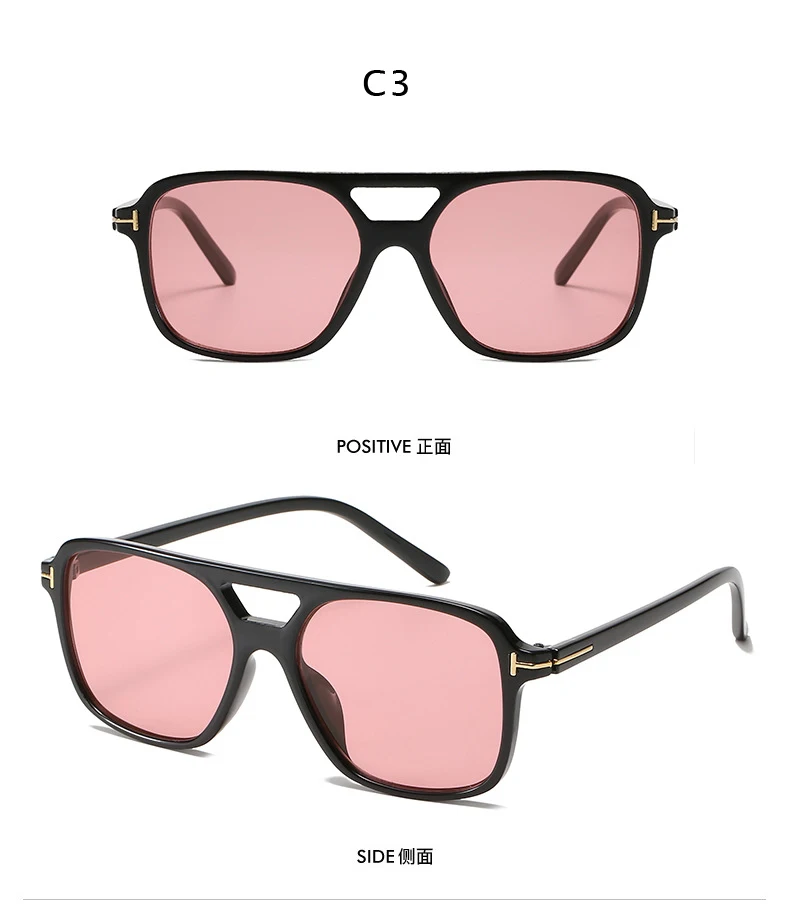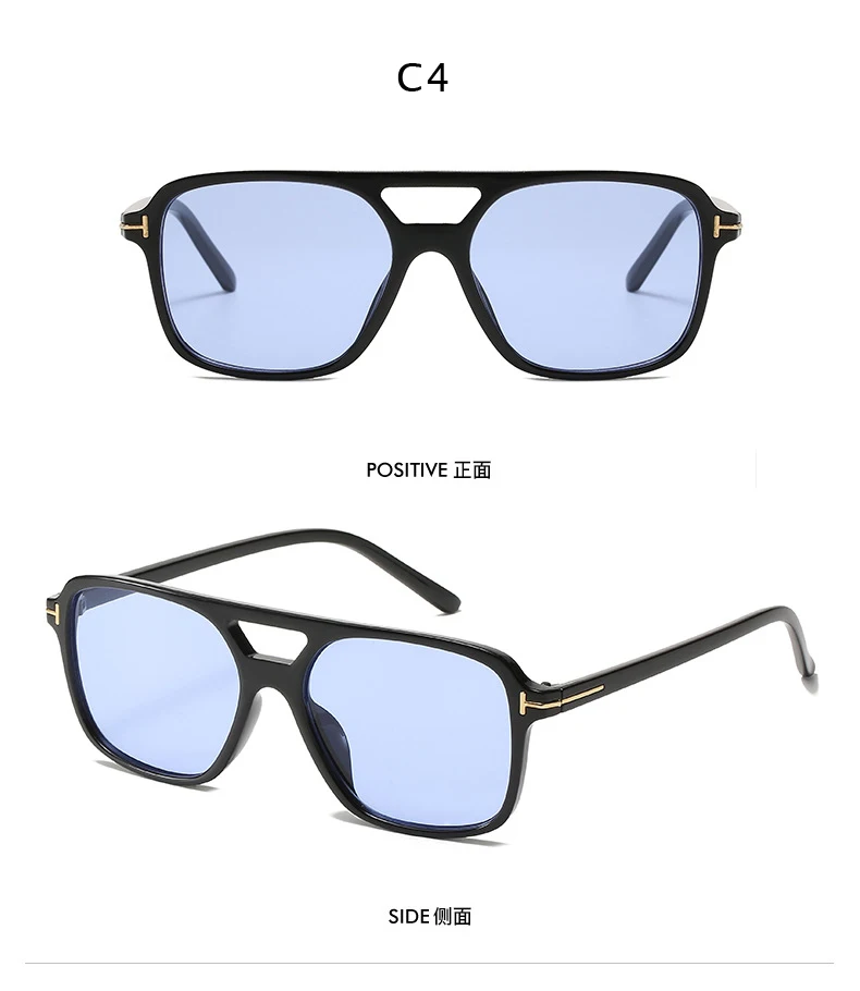 Oversized Rectangle Sunglasses Men 2023 Double Bridge Brand Design Blue Yellow Lens Tom Sun Glassses Shades for Women UV400 S466