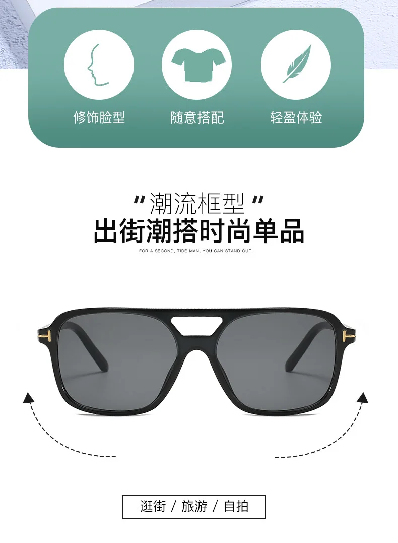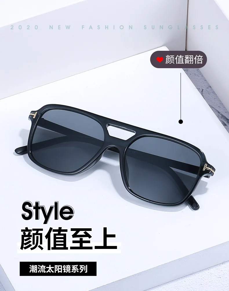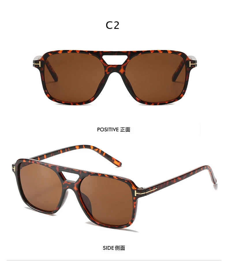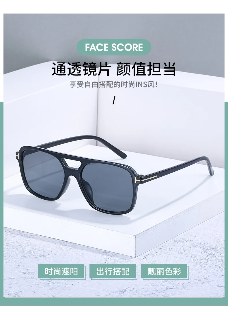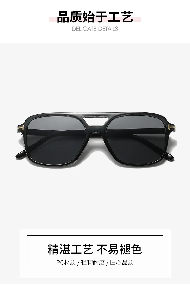 Oversized Rectangle Sunglasses Men 2023 Double Bridge Brand Design Blue Yellow Lens Tom Sun Glassses Shades for Women UV400 S466