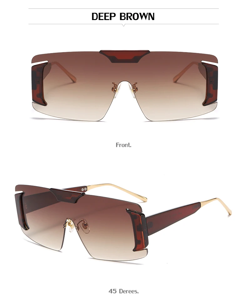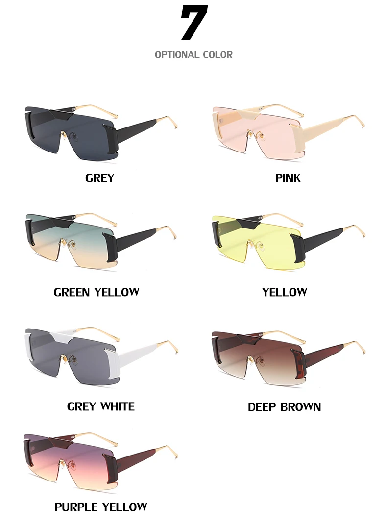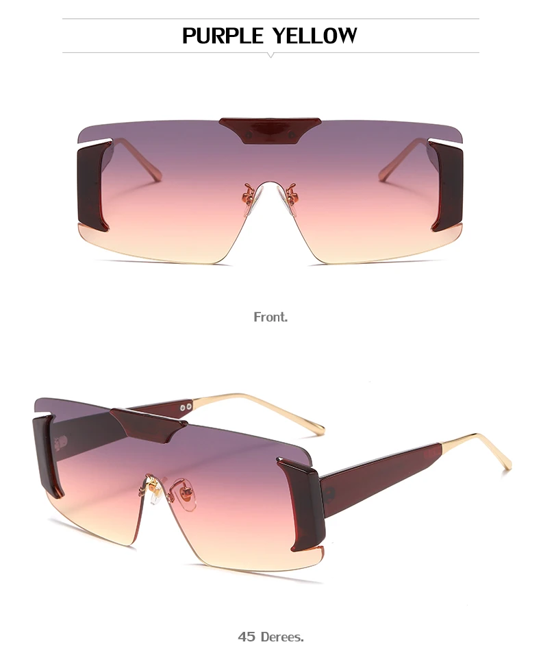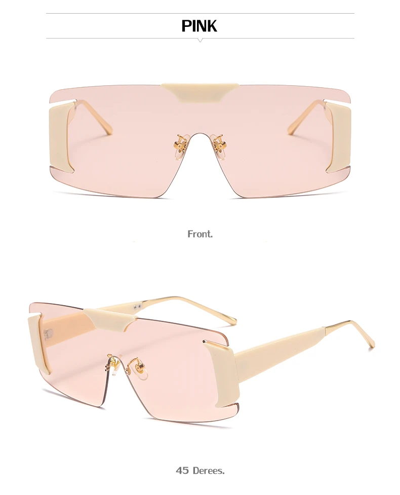 Oversized Rimless Square Sunglasses Women  Designer One-Piece Rectangle Sun Glasses Retro Ladies Eyeglasses UV400