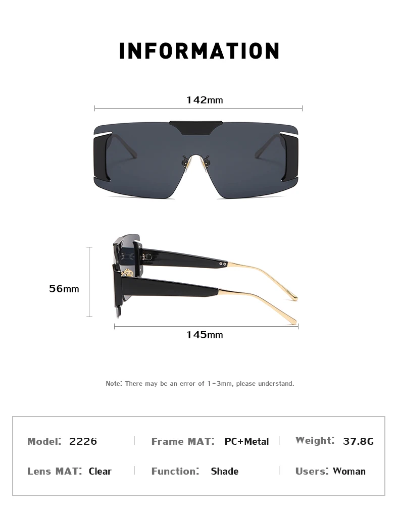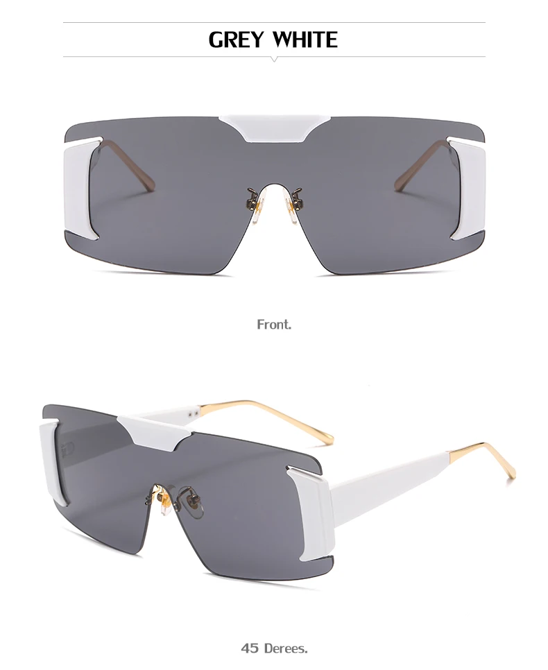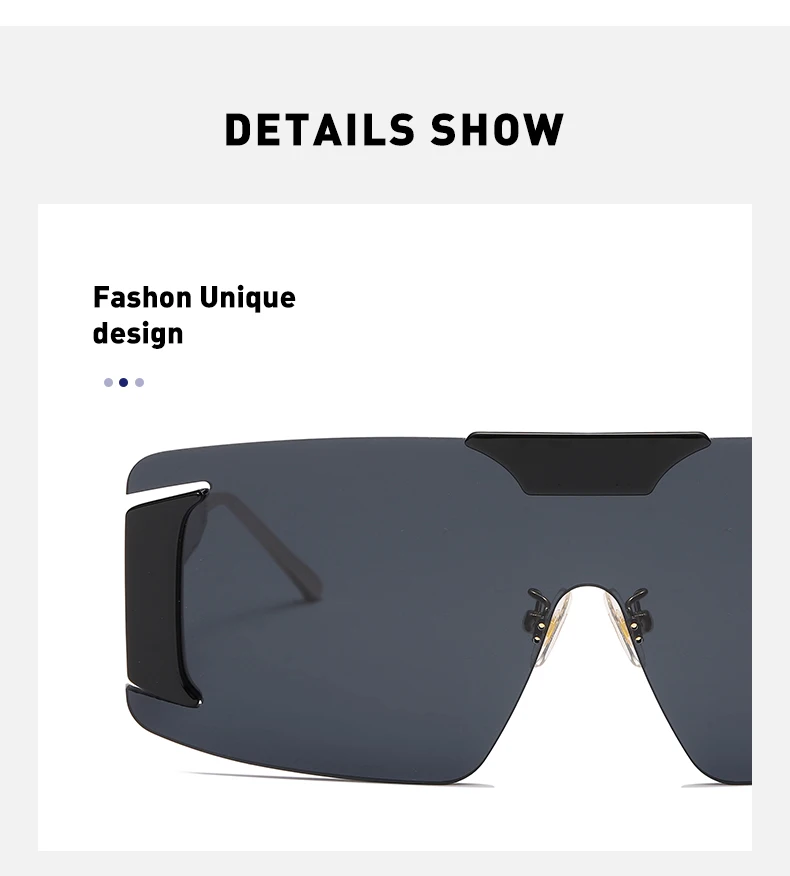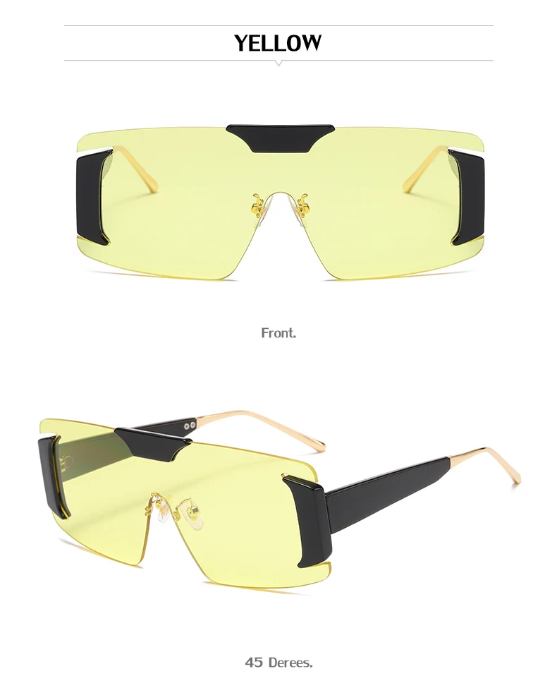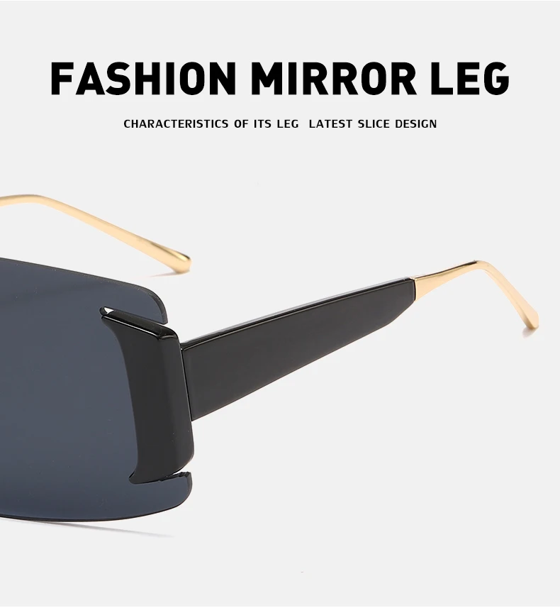 Oversized Rimless Square Sunglasses Women  Designer One-Piece Rectangle Sun Glasses Retro Ladies Eyeglasses UV400