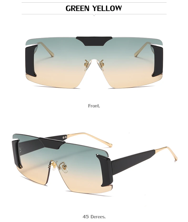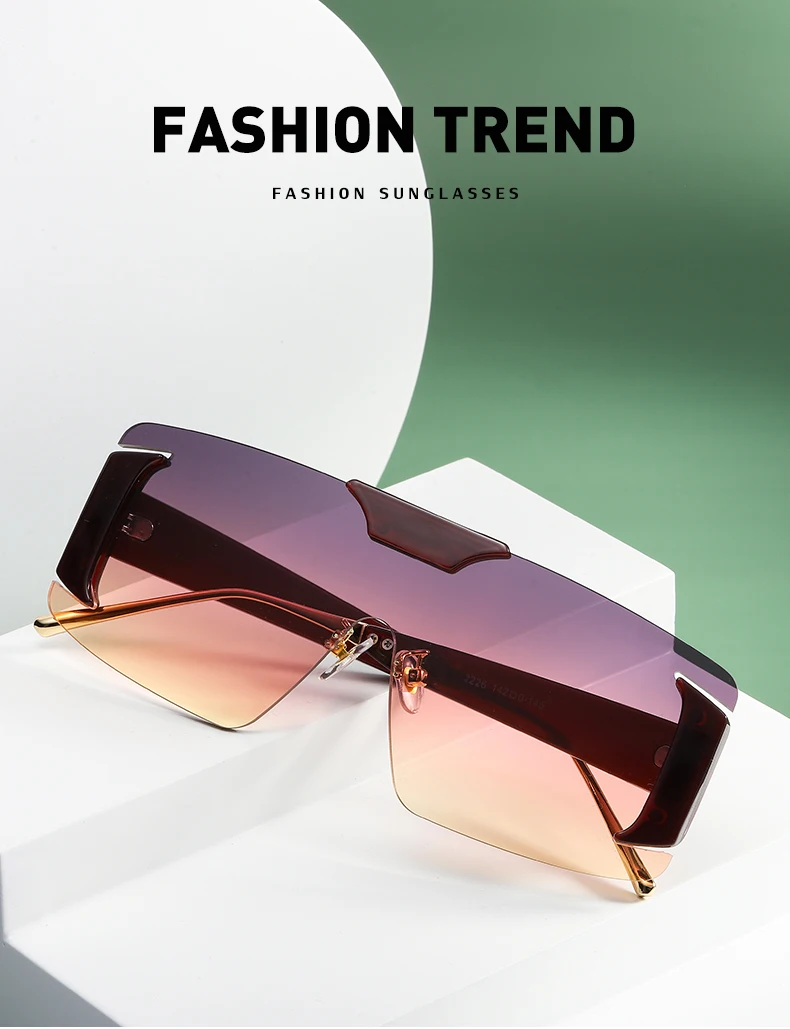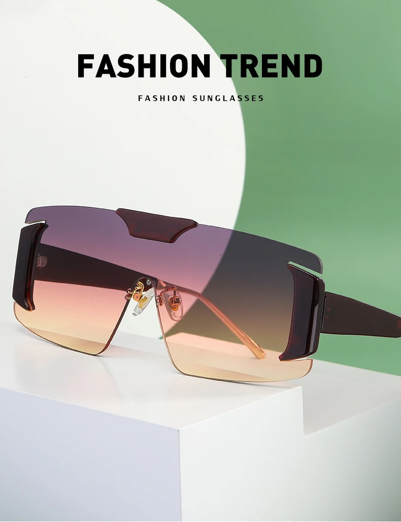 Oversized Rimless Square Sunglasses Women Designer One-Piece Rectangle Sun Glasses Retro Ladies Eyeglasses UV400