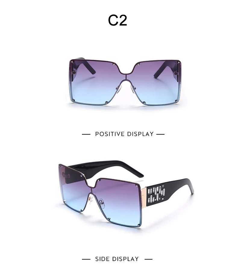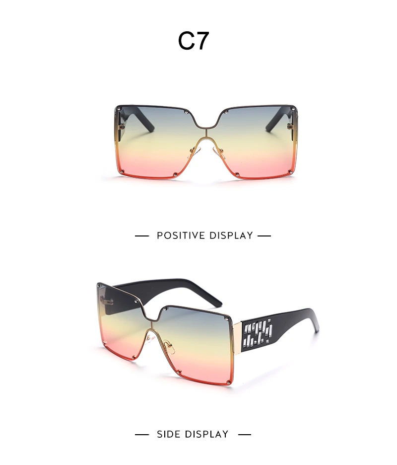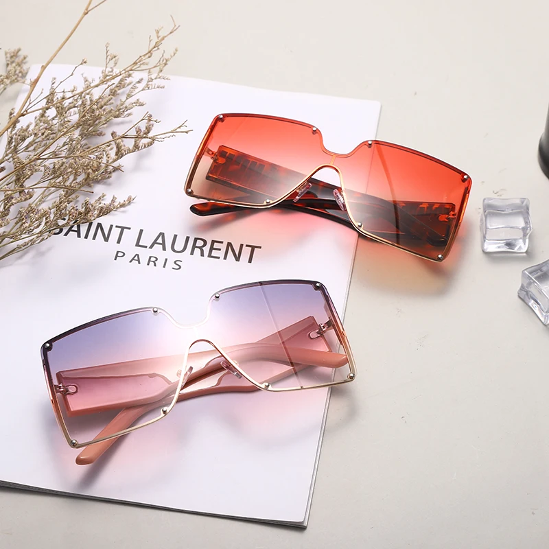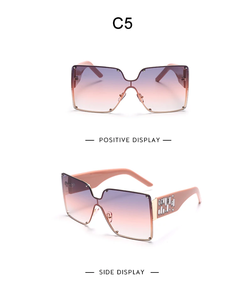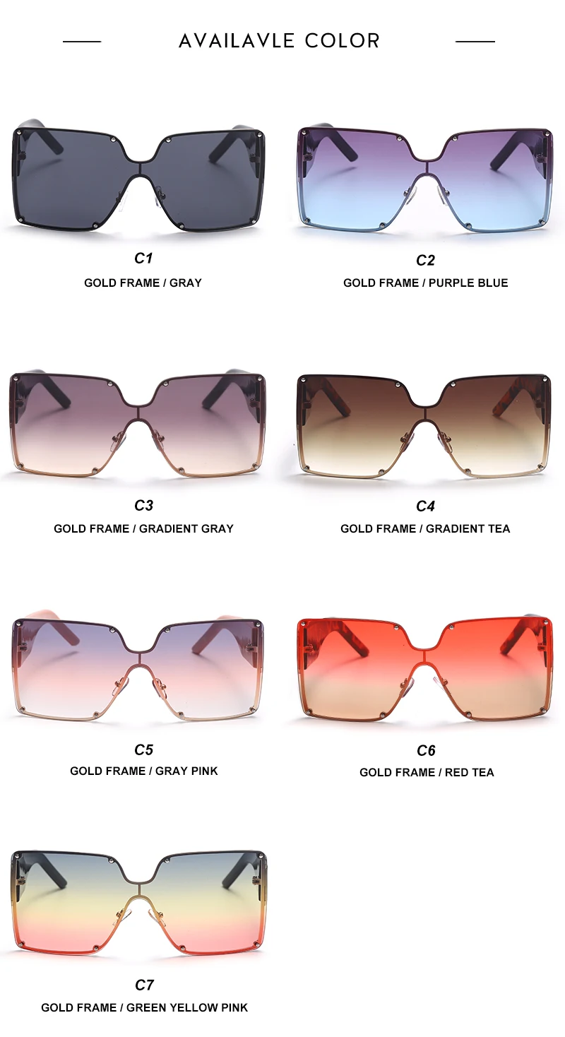 Oversized Rimless Sunglasses Women 1 Piece Sun Glasses Gradient Blue-pink Lens Eyewear Lady Square Eyeglasses UV400