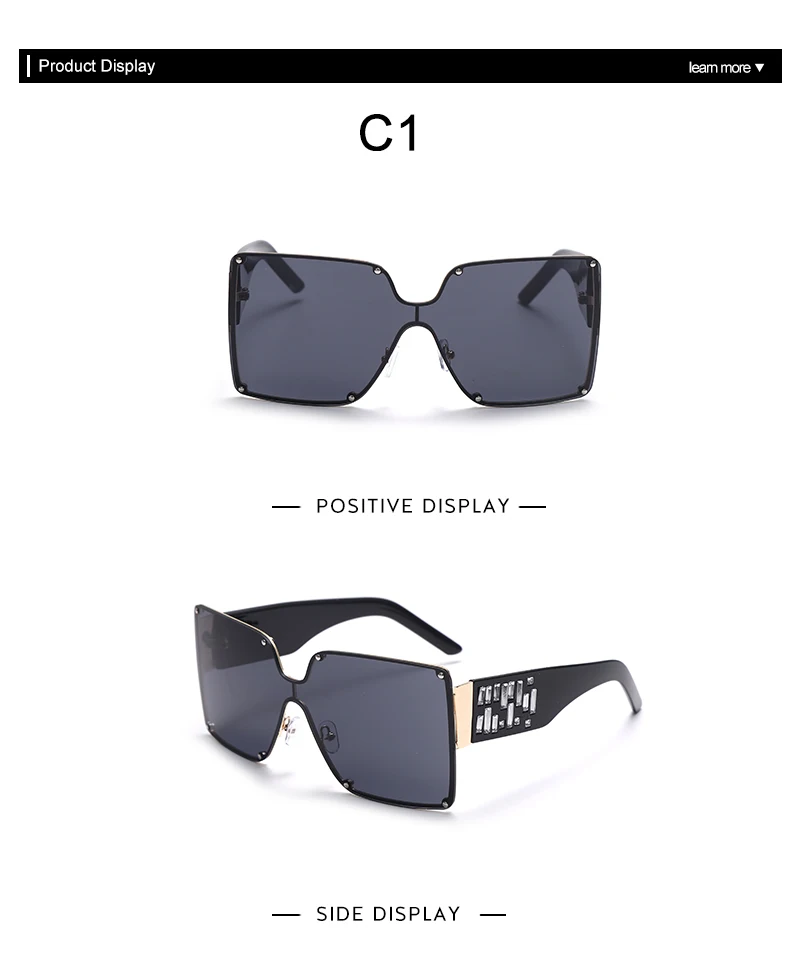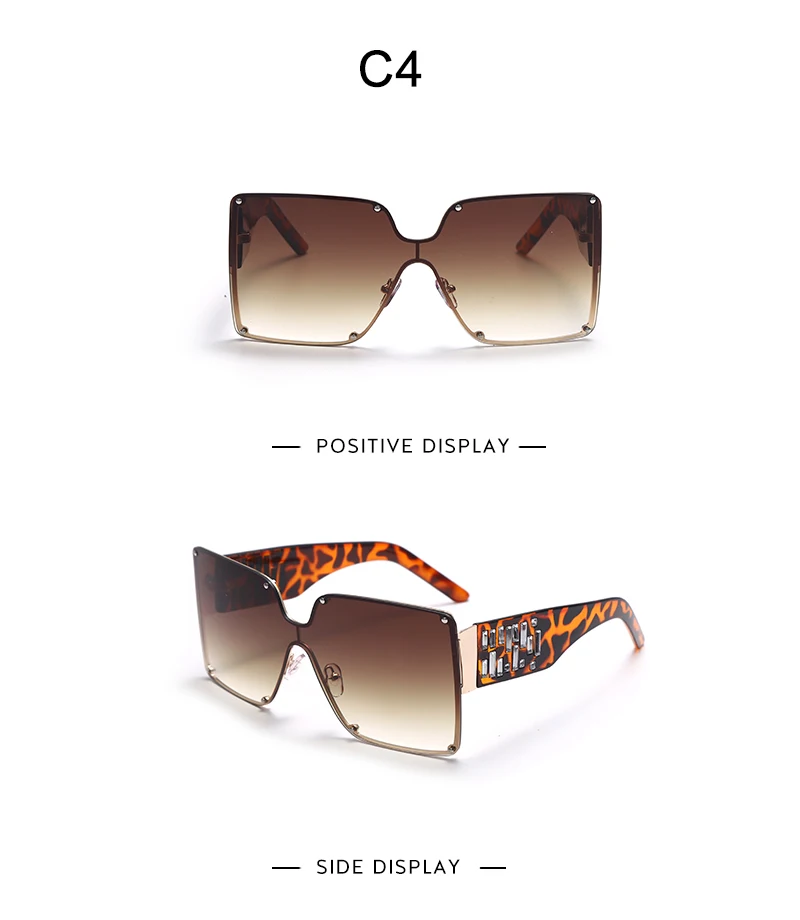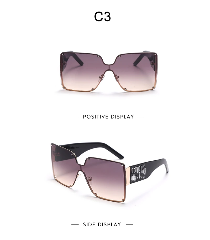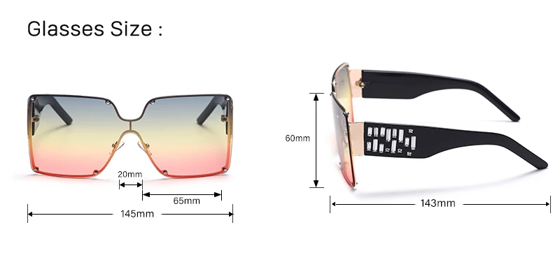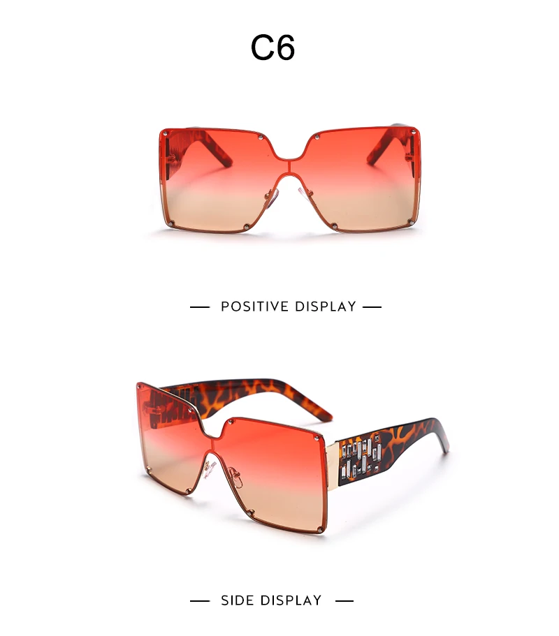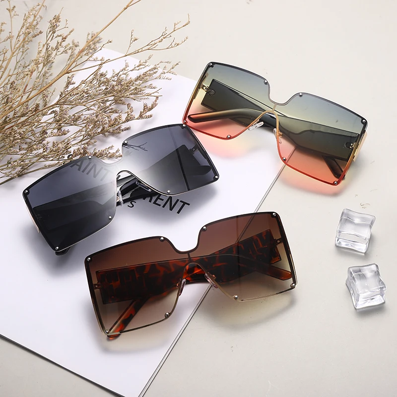 Oversized Rimless Sunglasses Women 1 Piece Sun Glasses Gradient Blue-pink Lens Eyewear Lady Square Eyeglasses UV400
