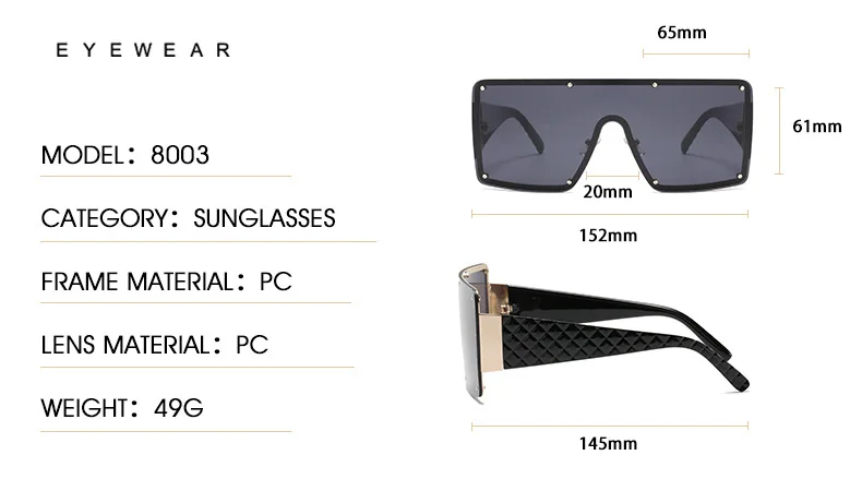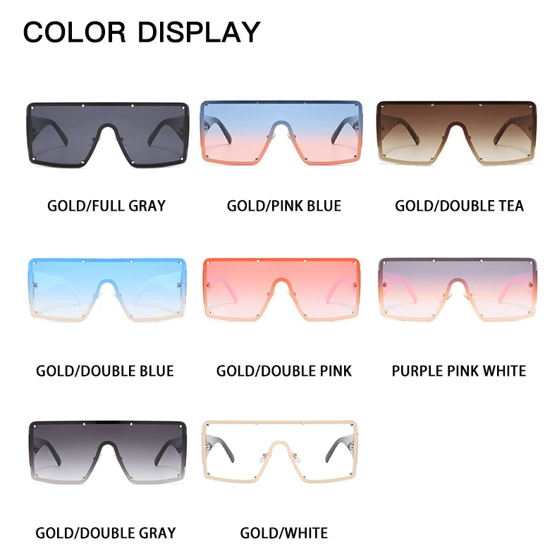 Oversized Square One Piece Gradient Sunglasses Women 2023 Desinger Blue Pink Big Y2k Windproof Sunglasses  Brand