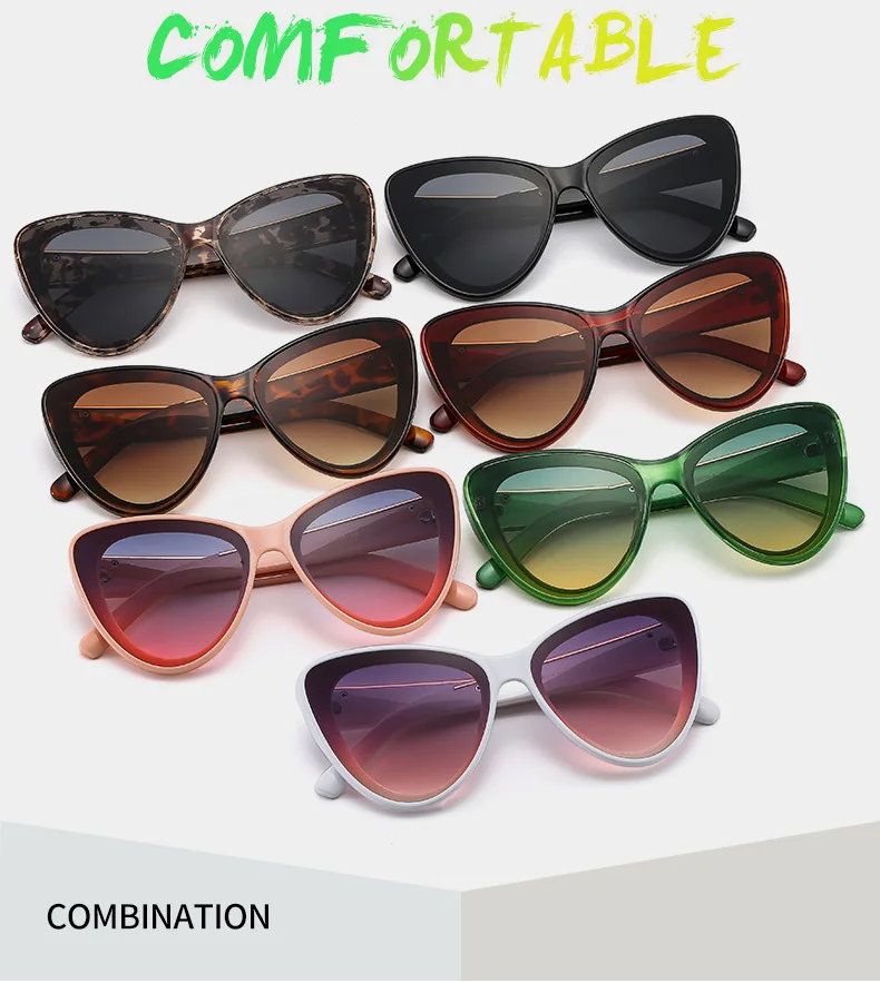 Plus Cat Eye Women Sunglasses Modern Ladies  Sun Glasses Retro Trending Shades UV400 Green Leopard Pink Eyewear