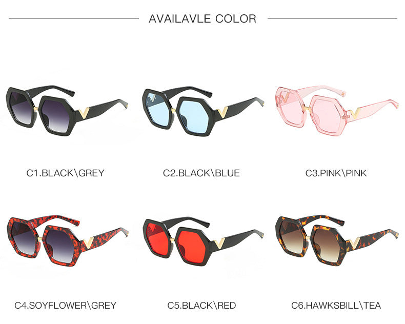 Polygonal Sunglasses Women  Brand Sun Glasses Personality Ladies Eyewears UV400 Goggles V-leg Glasses