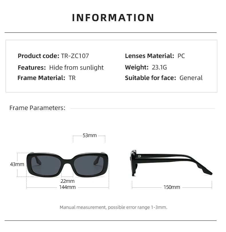 Rectangle Sunglasses Women Vintage Travel TR90 Ladies Square Retro Gradient Lens Sun Glasses Polarized UV400 Female 107