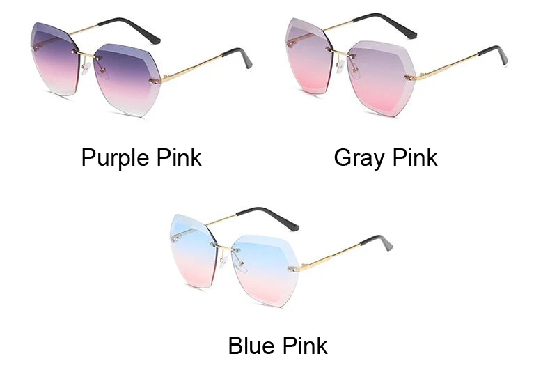 Retro Oversized Sunglasses Women Brand Designer Rimless Gradient Sun Glasses Female Cutting Lens Ladies Eyeglasses