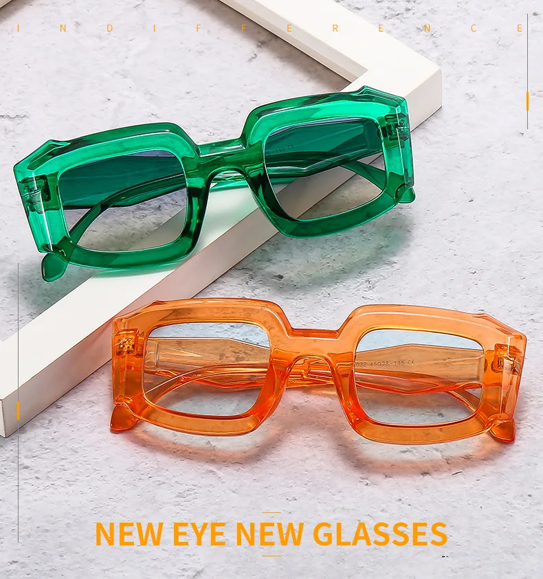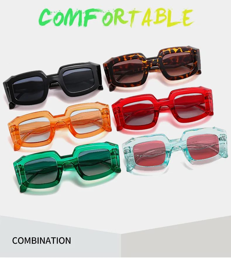 Retro Square Jelly Sunglasses For Women Men Brand Designer  Sun Glasses Thick Border Ins Trending Ladies Shades U